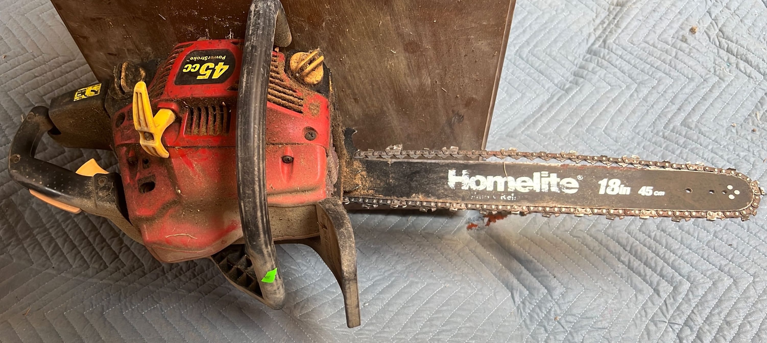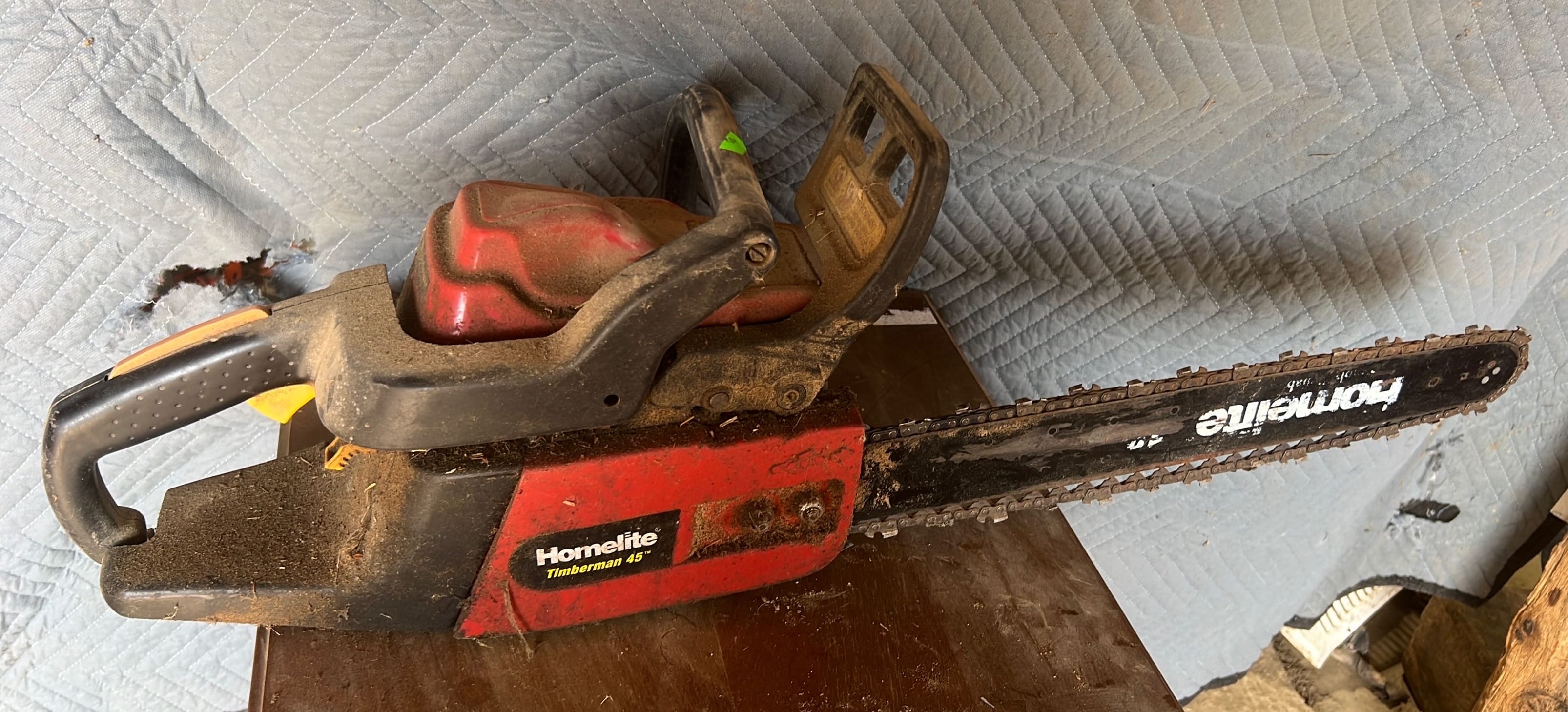 98 Homelite Timberman 45cc chainsaw, 18” bar