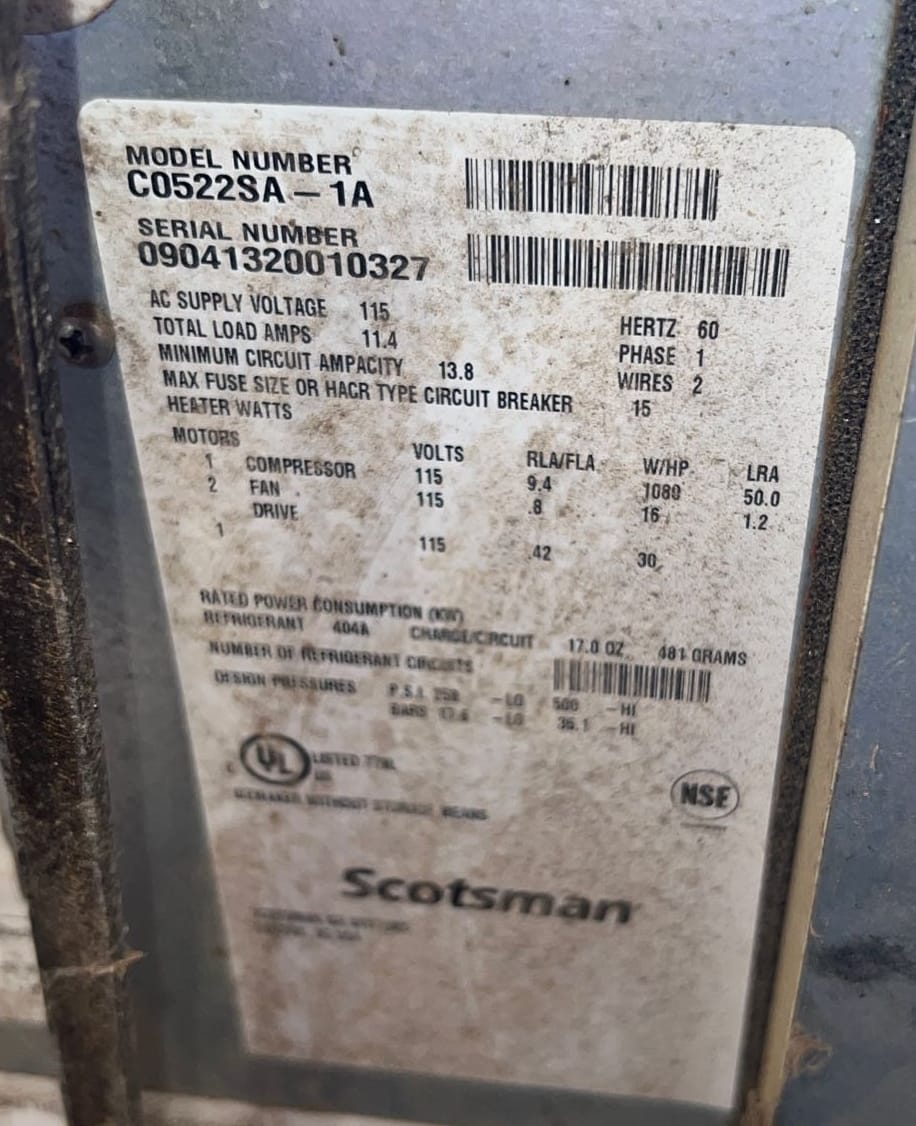115 Scotsman ice maker model, CO522S-1A, Working when taken out, 22.5”x24”x 23”