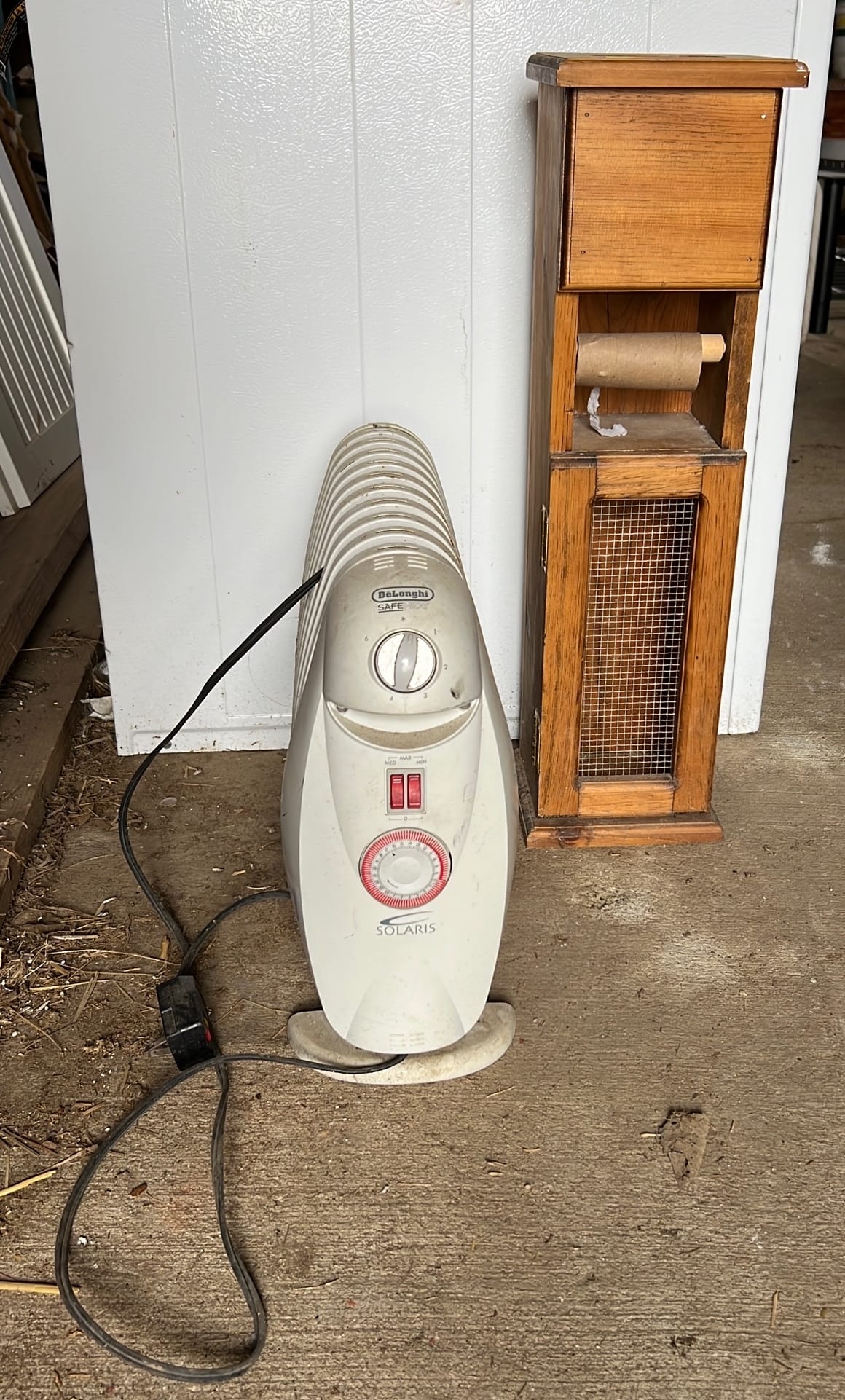 122 DeLonghi Safeheat Solaris Heater & Wooden Paper Towel Holder 7.5”x26.5”x6.75”