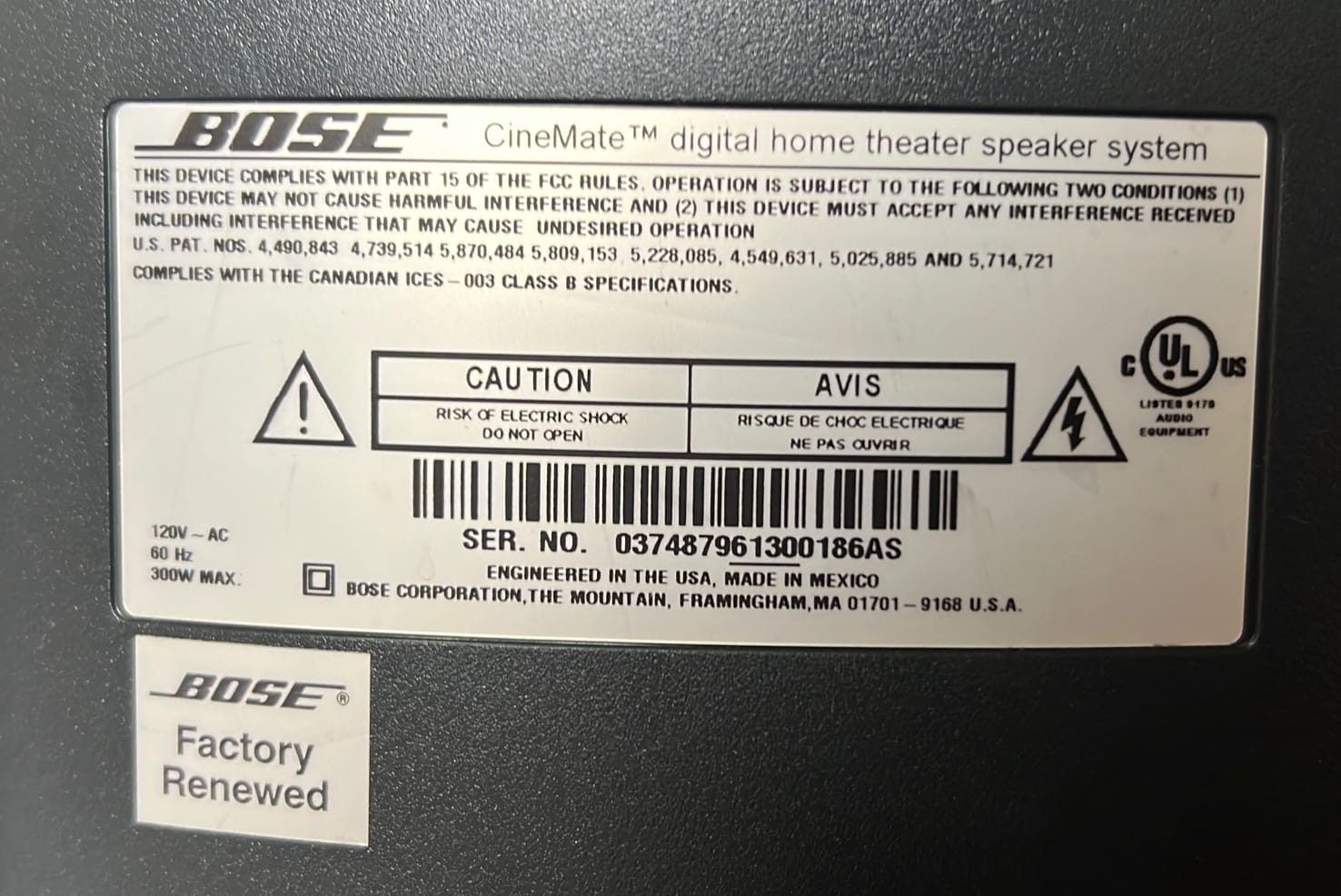 124 Bose CineMate Digital Home Theater Speaker System Serial #037487961300186AS • (2) Bose Remotes • (2) Bose Speakers