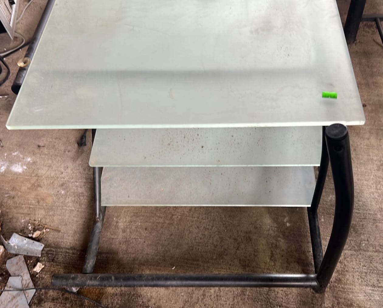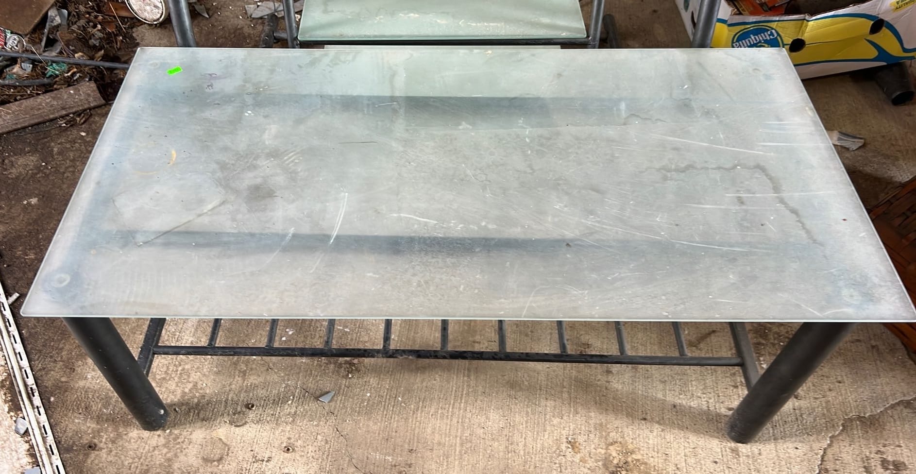 130 Coffee Table 44”x16”x22” & Glass Shelf Stand - 34.25”x22.75”x20.75”