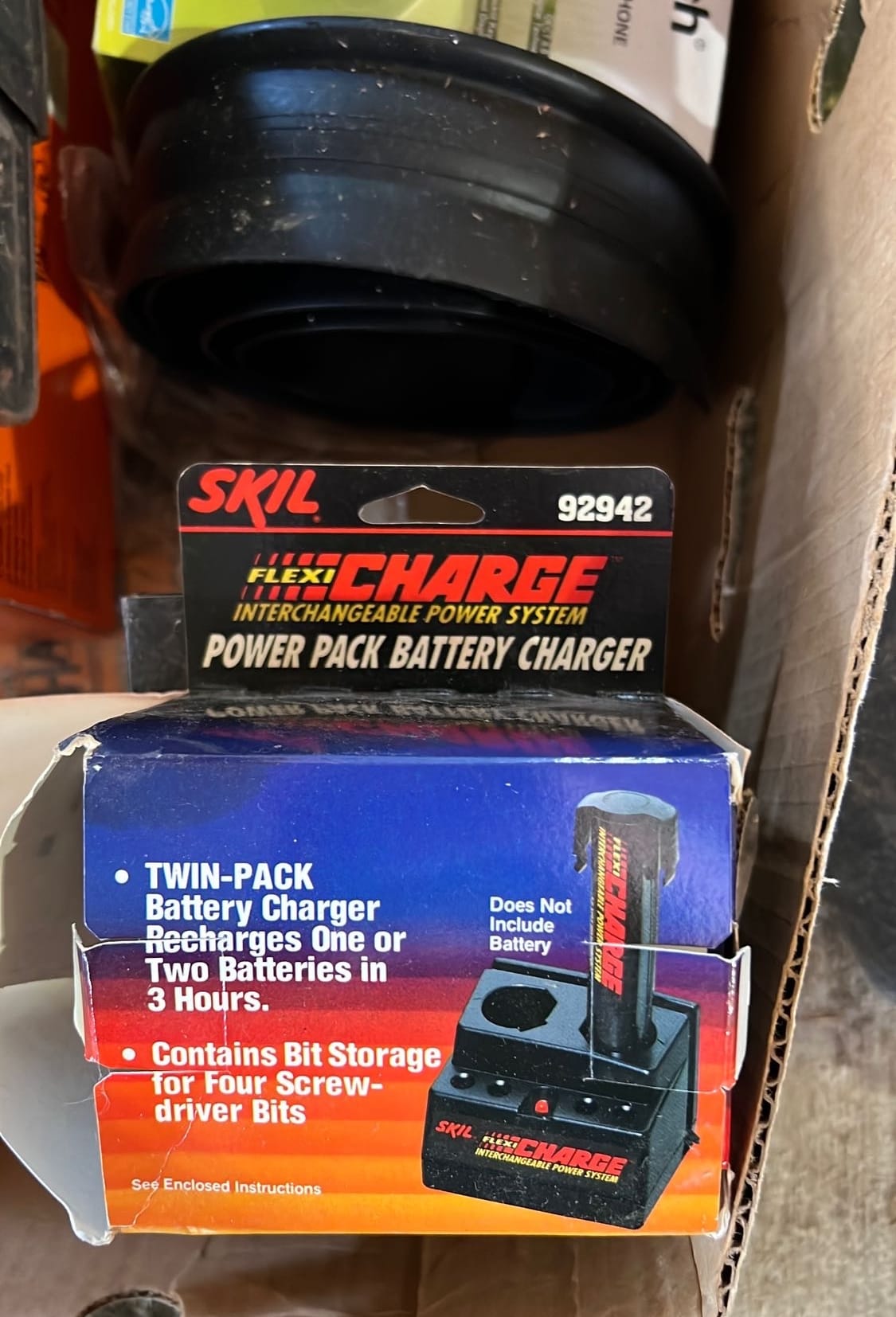 132 Skil 2236 • 3/8” Cordless Drill & Driver • VTech Cordless Telephone in box, Black & Decker Crosshair 90 degree Auto Laser Level • Battery-Operated AM-FM Windsor Radio/Light Combo, Zilotek Red Led Light Bulb #353-1459