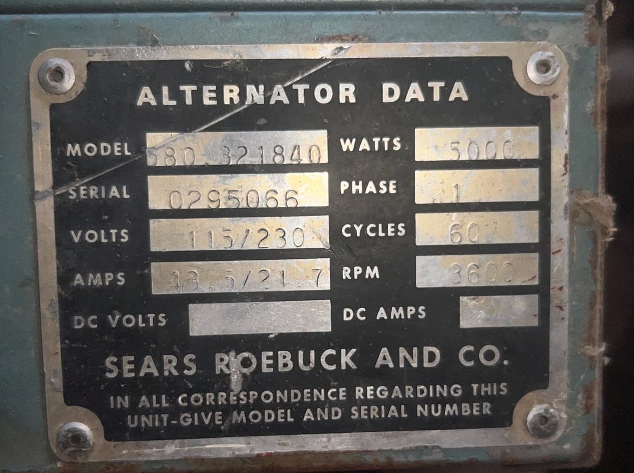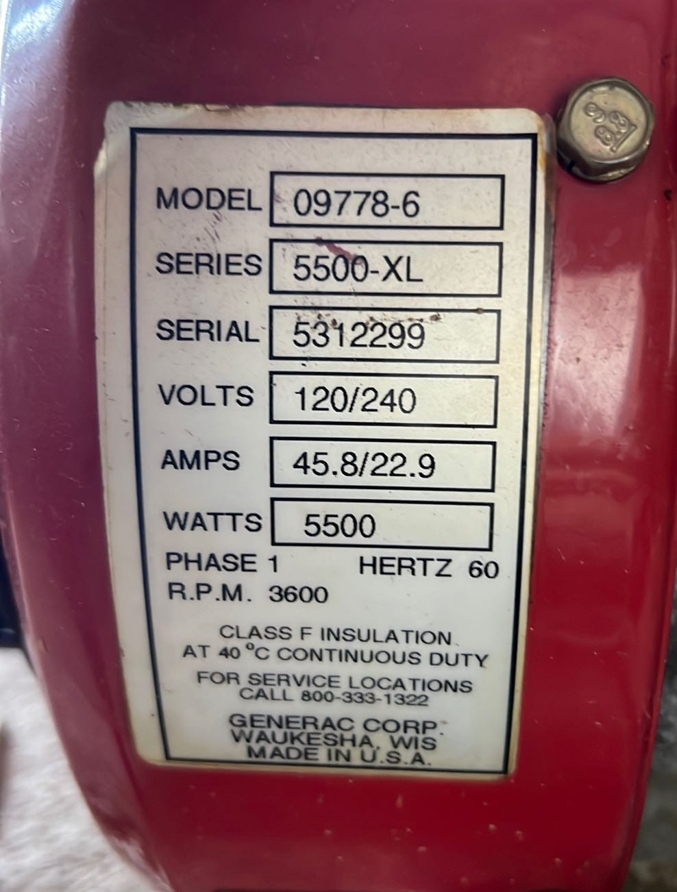 134 Generac 5500 XL Generator (runs) • Model #09778–6 • Serial #5312299