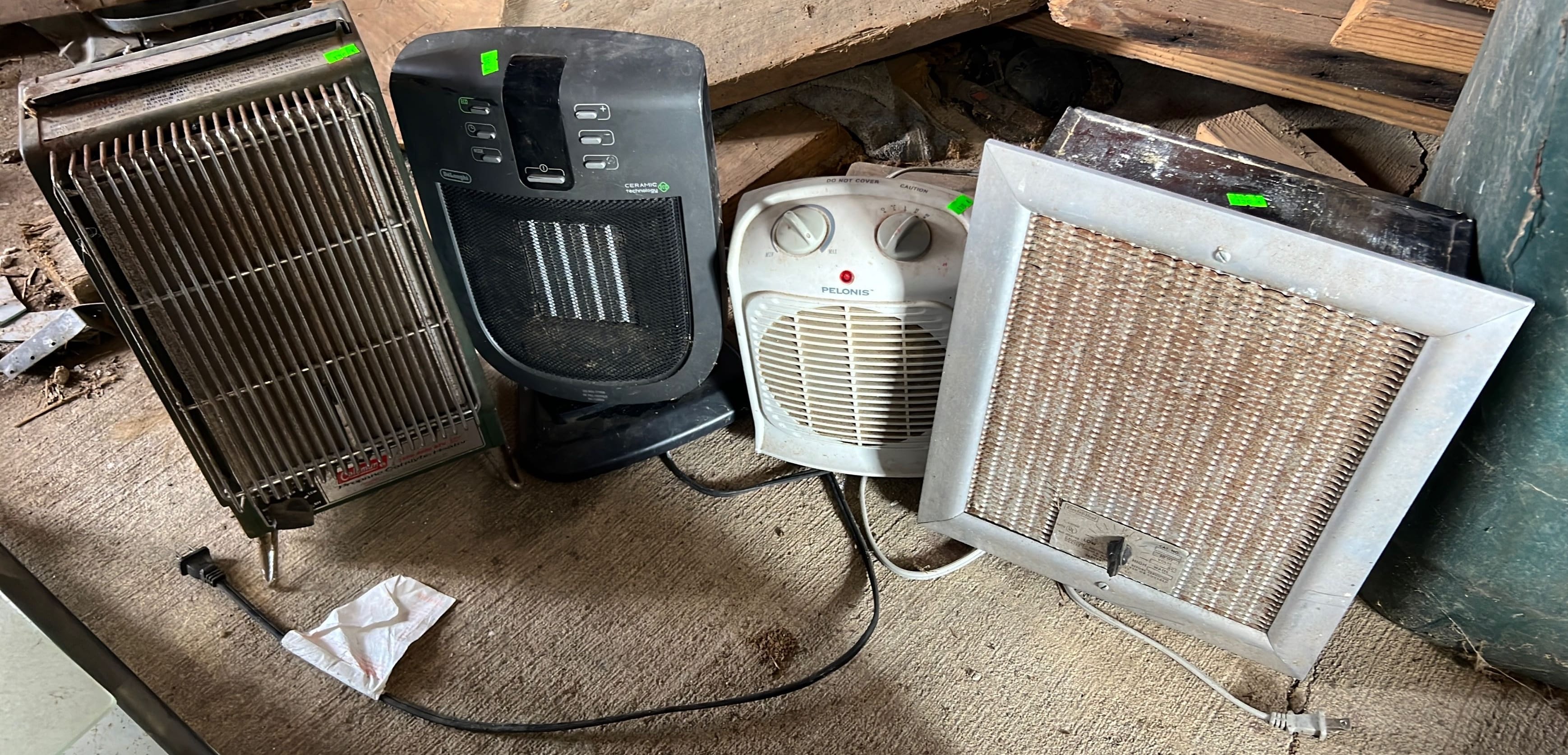 136 Coleman Propane Catalytic Heater 2000 to 4000 BTUs • DeLonghi Ceramic Technology Heater - Serial # 52623 • Pelonis Fan Forced Heater • Model # HF-0020T • Electric- Heat - 60 Hz• 2500 watts