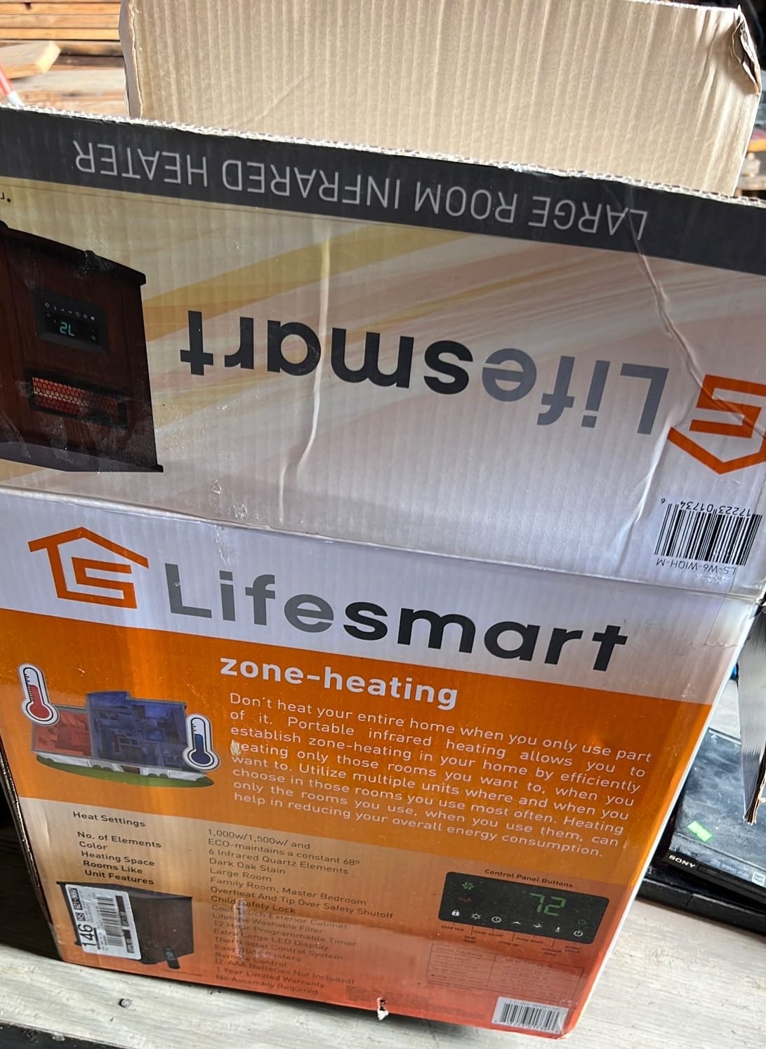 149 Lifesmart Large Room Infrared Heater with Dark Oak Wooden Cabinet in box