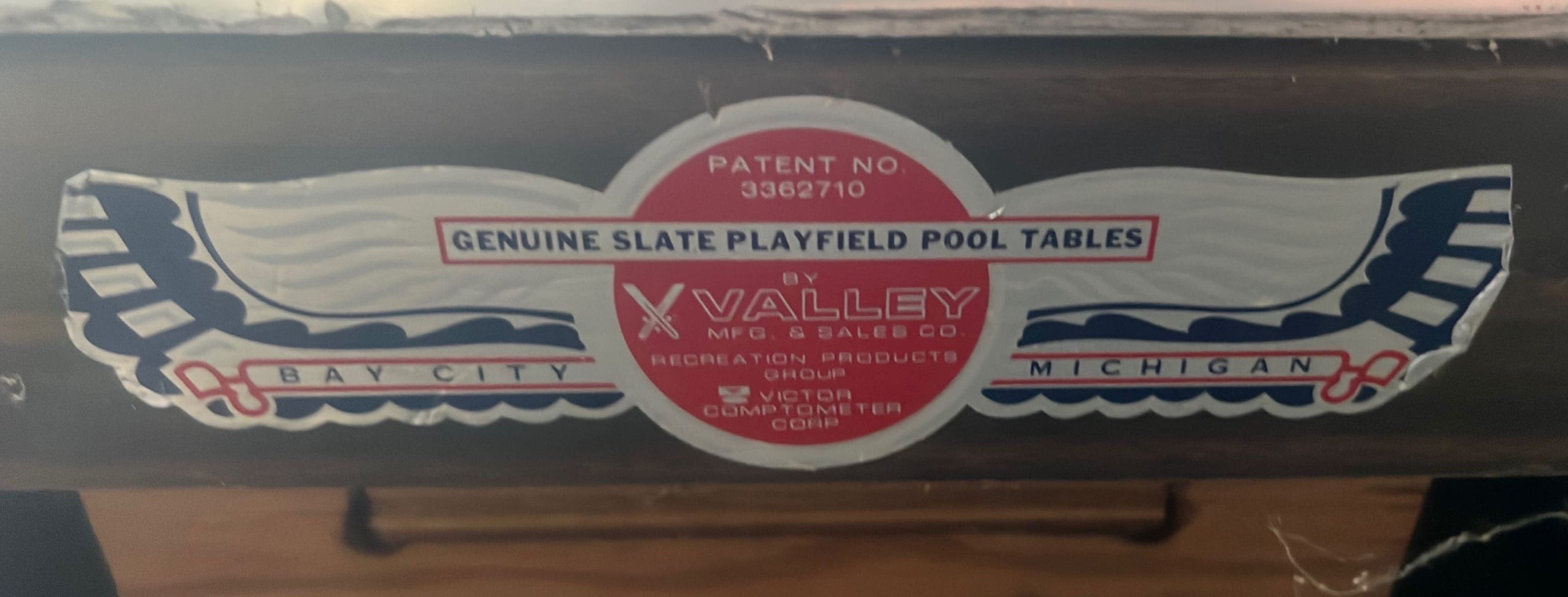 175 Valley genuine slate playfield pool table, 52”x92”x31”