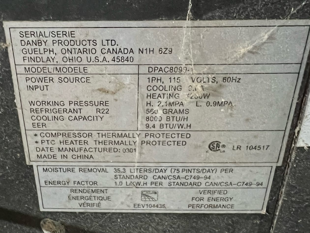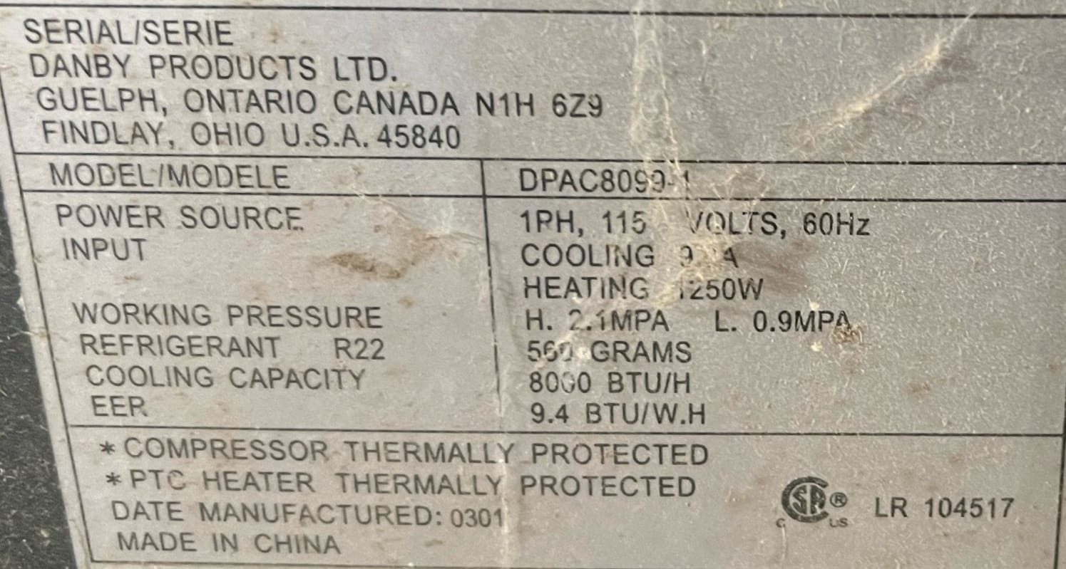 188 Danby Heating/Cooling unit - Model DPAC8099-1