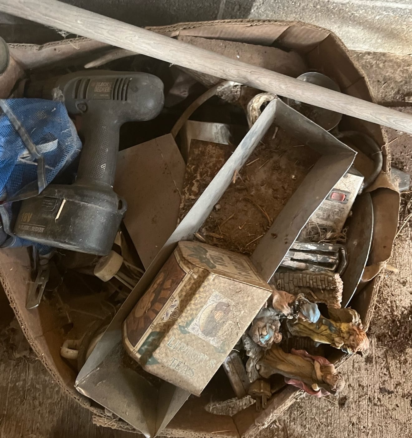 189 Santa’s Best Christmas decor, Cordless drill and hardware assortment