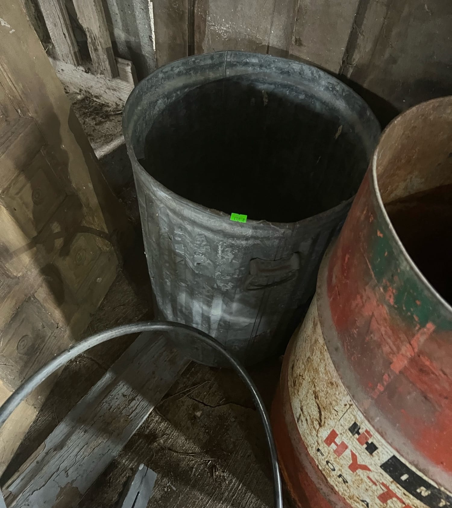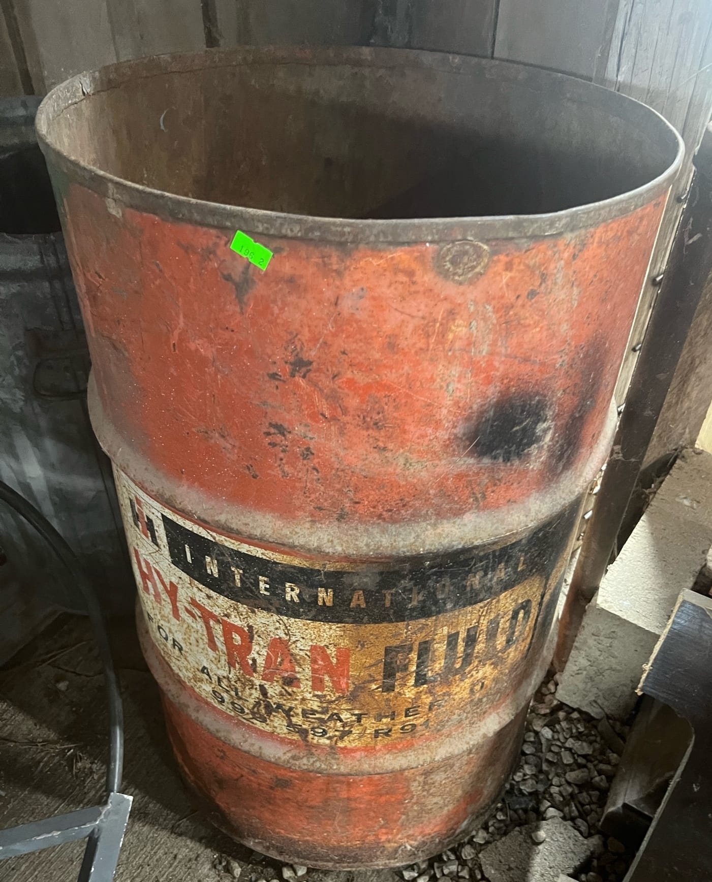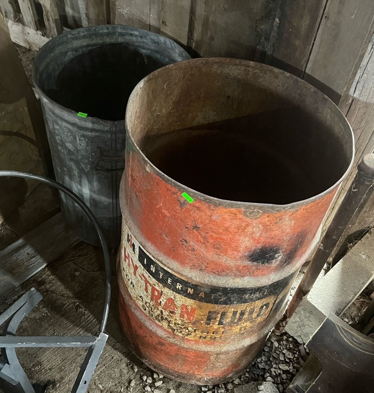 196 IH Hy tran fluid barrel - empty, Galvanized trash can