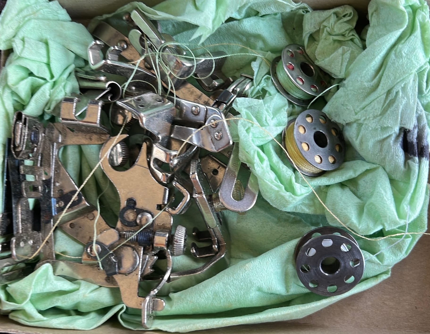 90 Singer Featherweight Sewing Machine with Case and Attachments