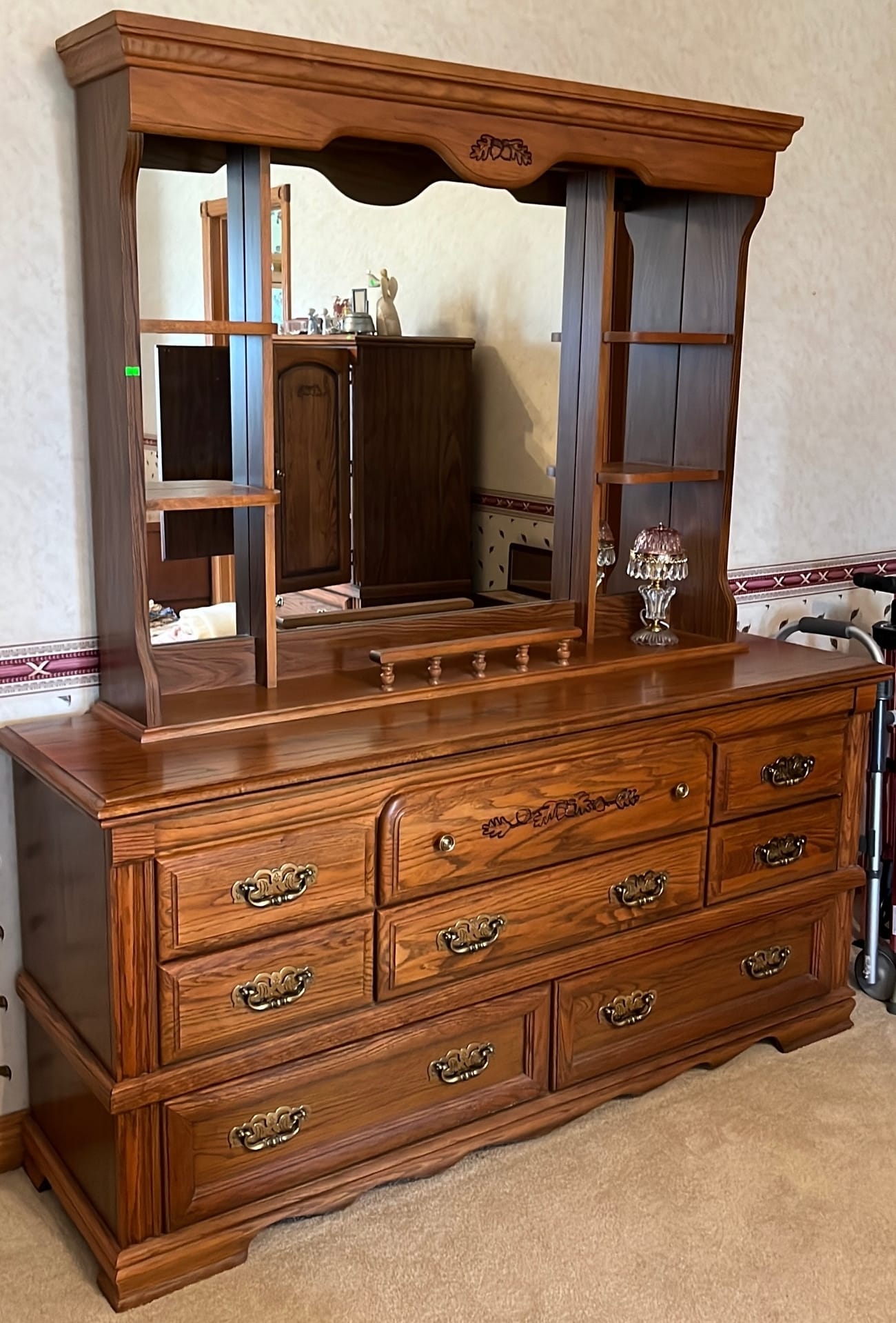 102 Broyhill Dresser with Mirror 66x18x73 and Dresser Lamp