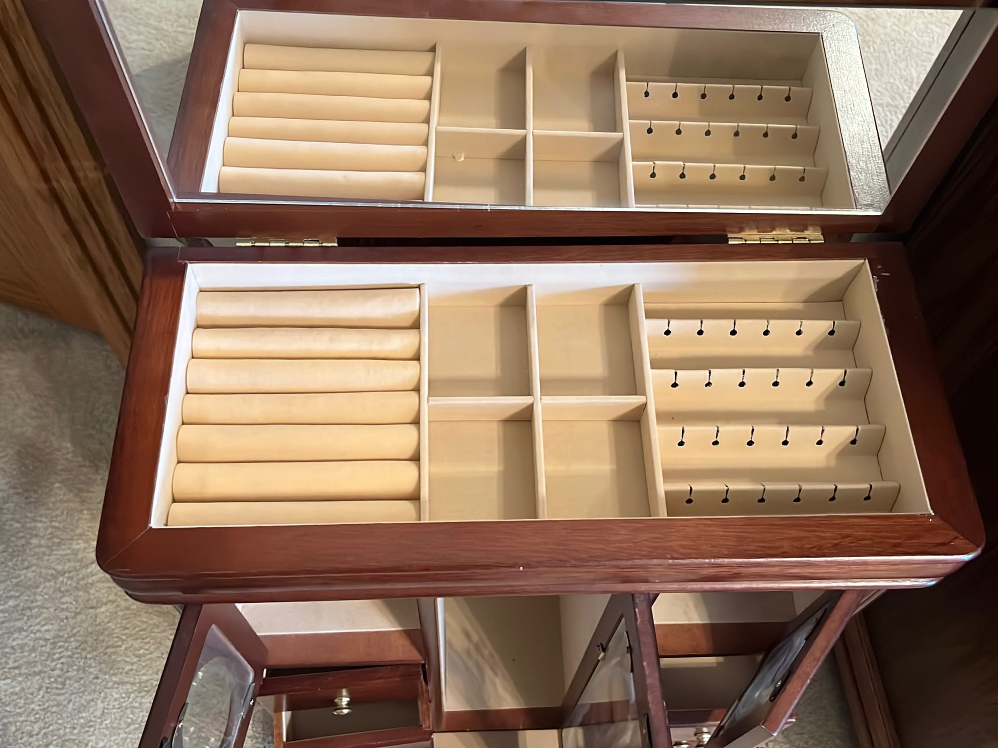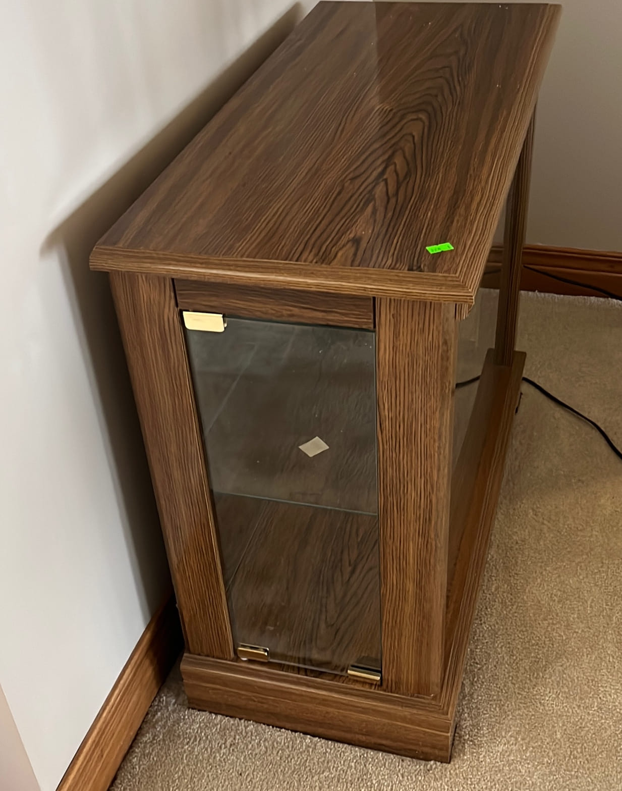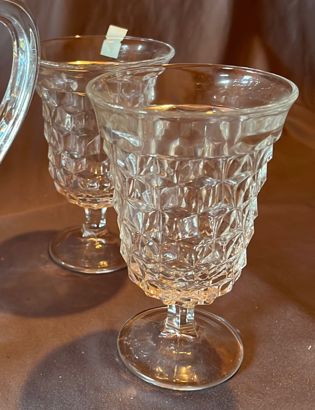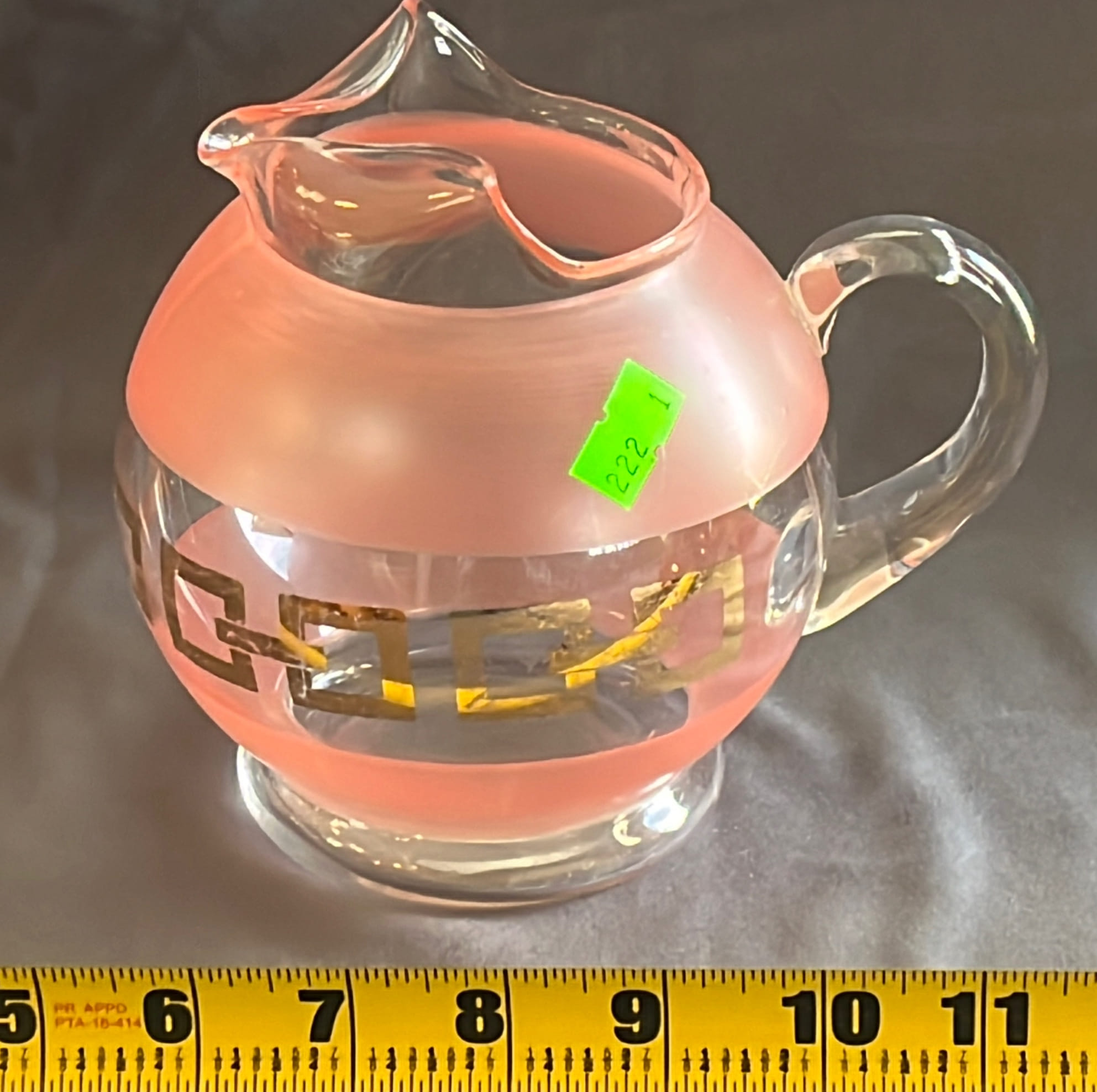 225 Silverplate pitcher, tiered server, plastic pitchers contents of cabinet as shown in pictures