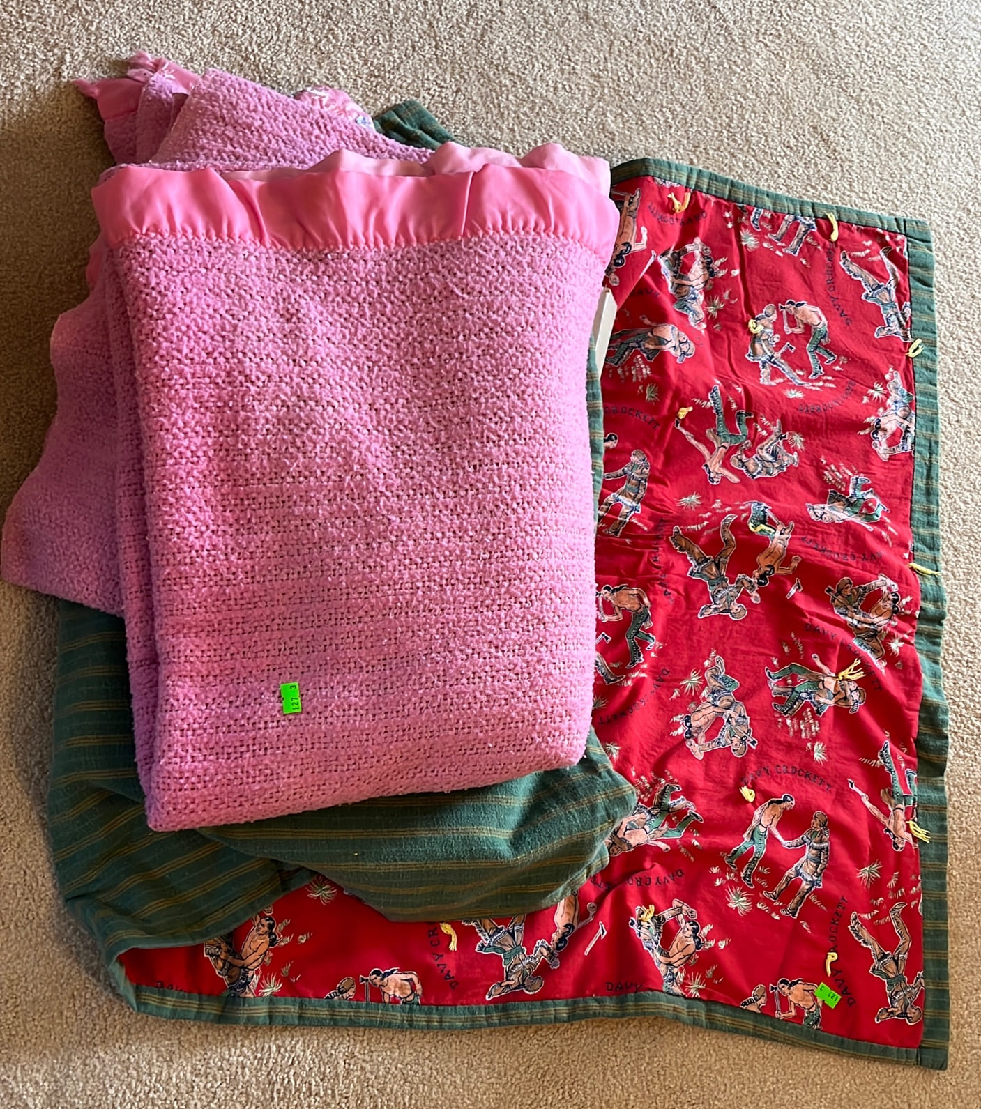 127 3 - Blankets inc. Knotted Davy Crockett Comforter 30x46 & Quiltex Baby Blanket Yellow, Appears to be New