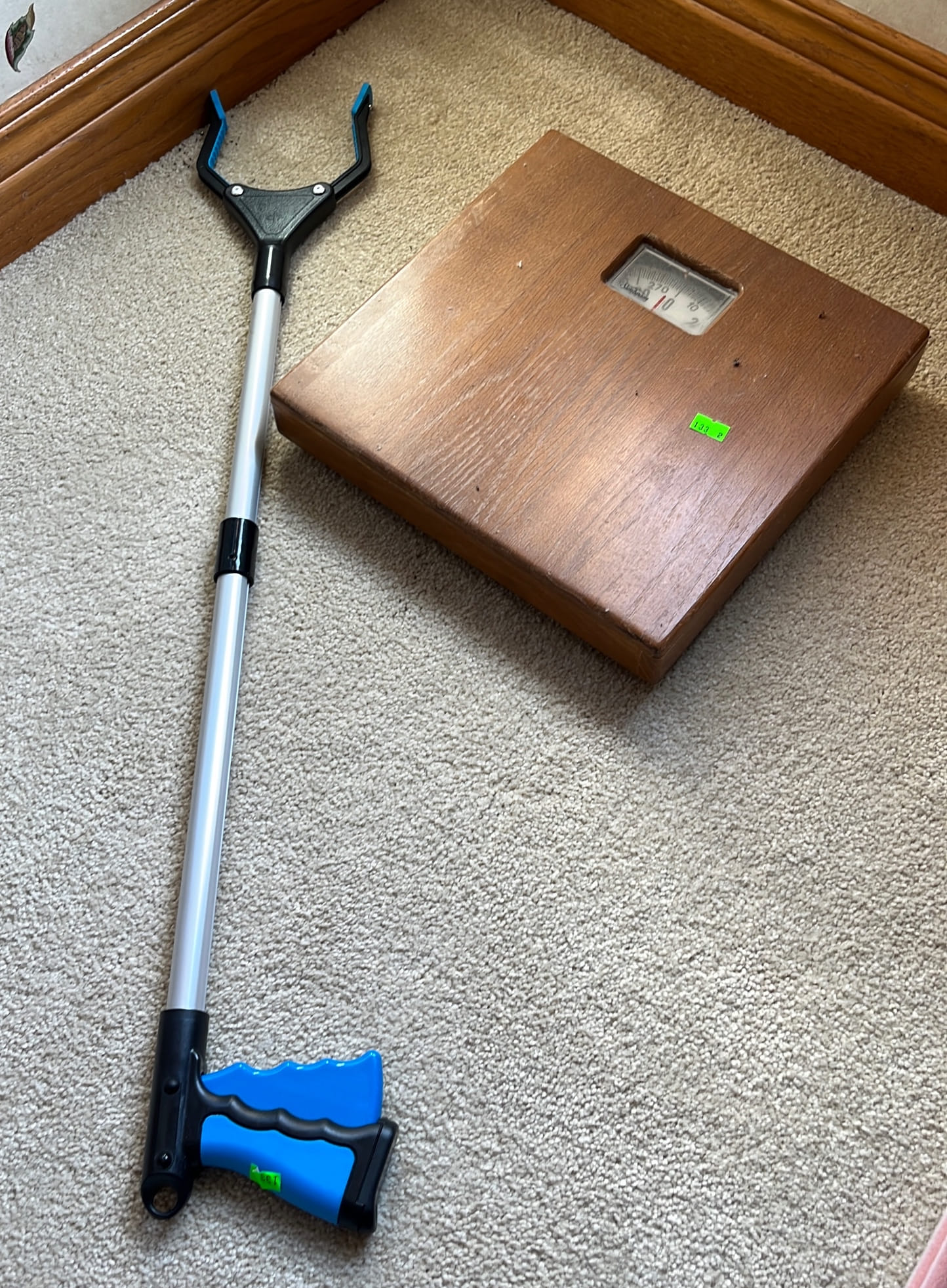 133 Sunbeam Bathroom Scale with Wood Exterior & Extendable Grabber