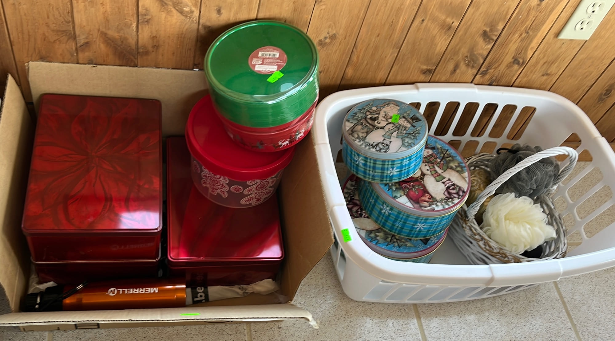 134 Tin Assortment, Decor Basket, Laundry Basket & Merrell Water Bottle