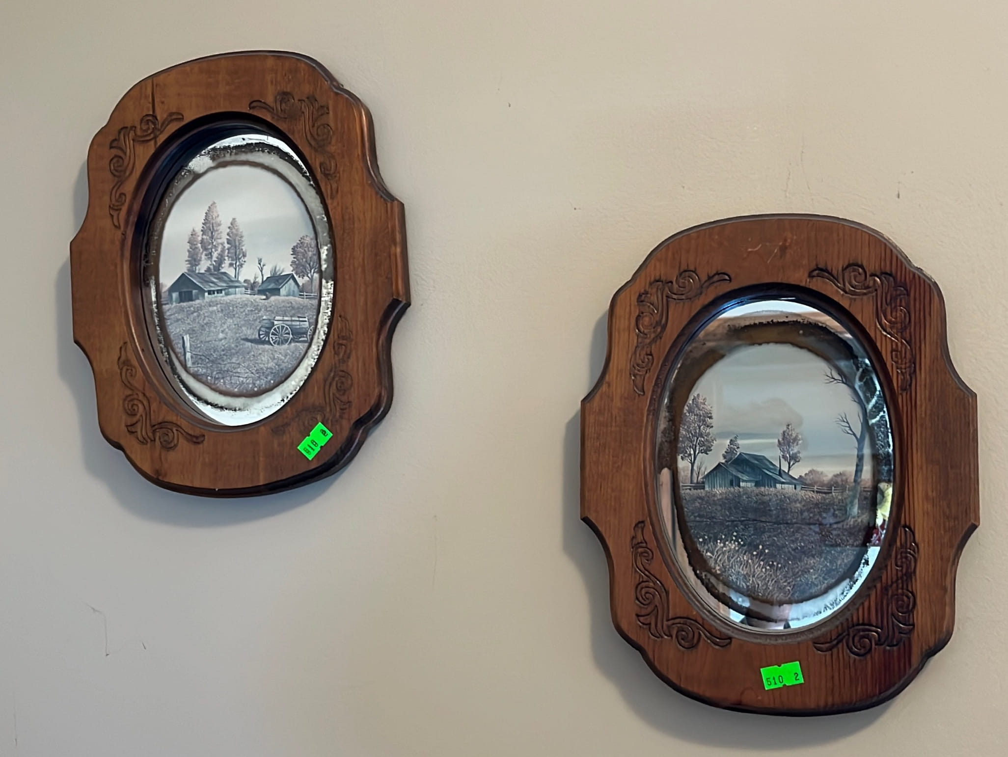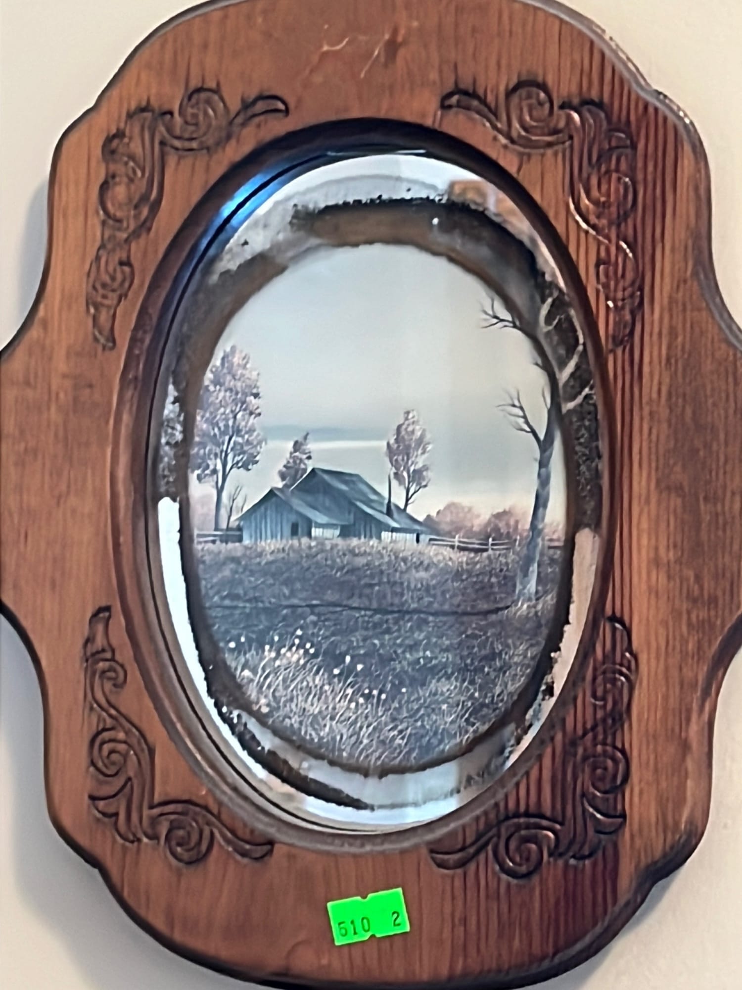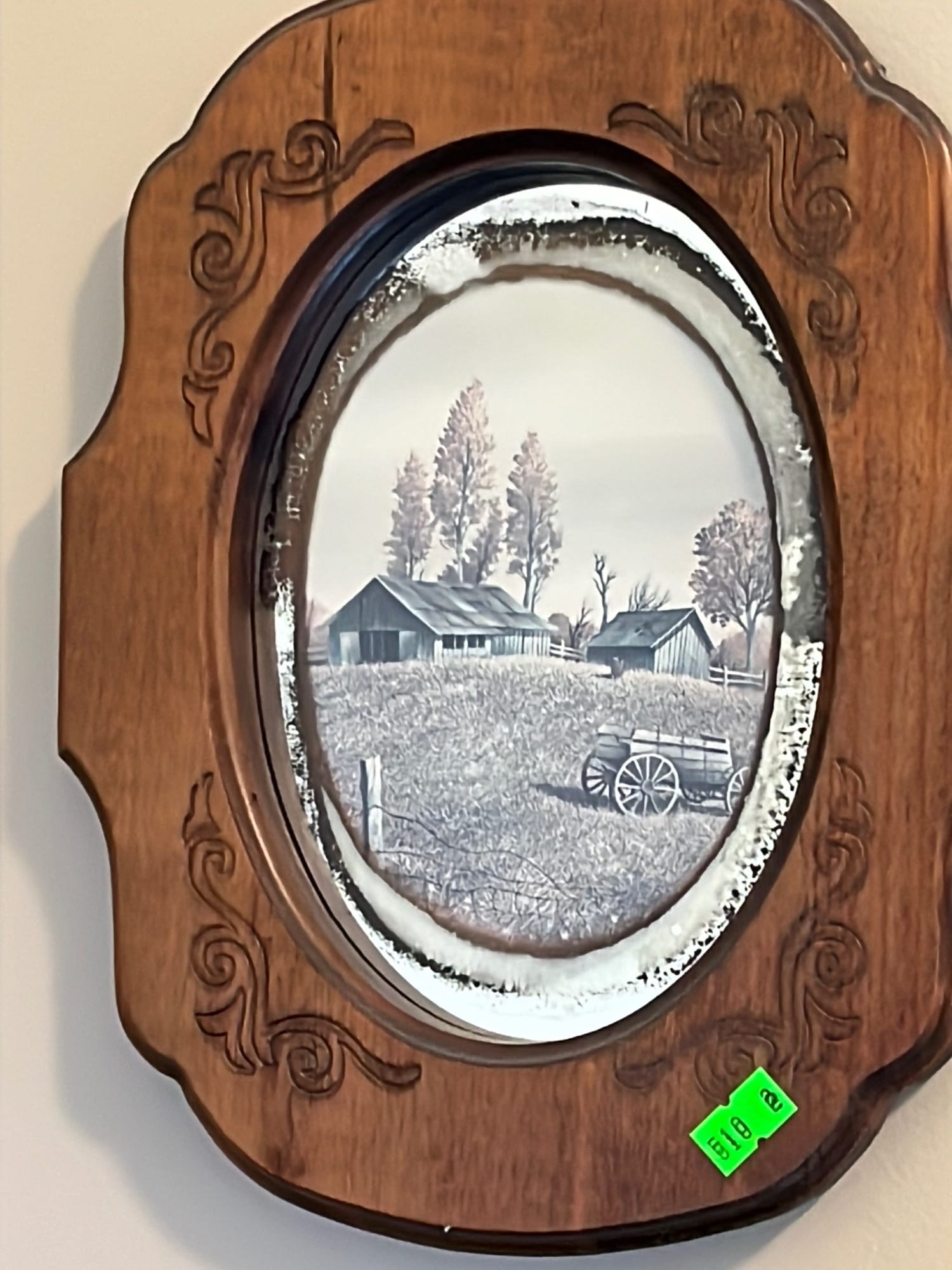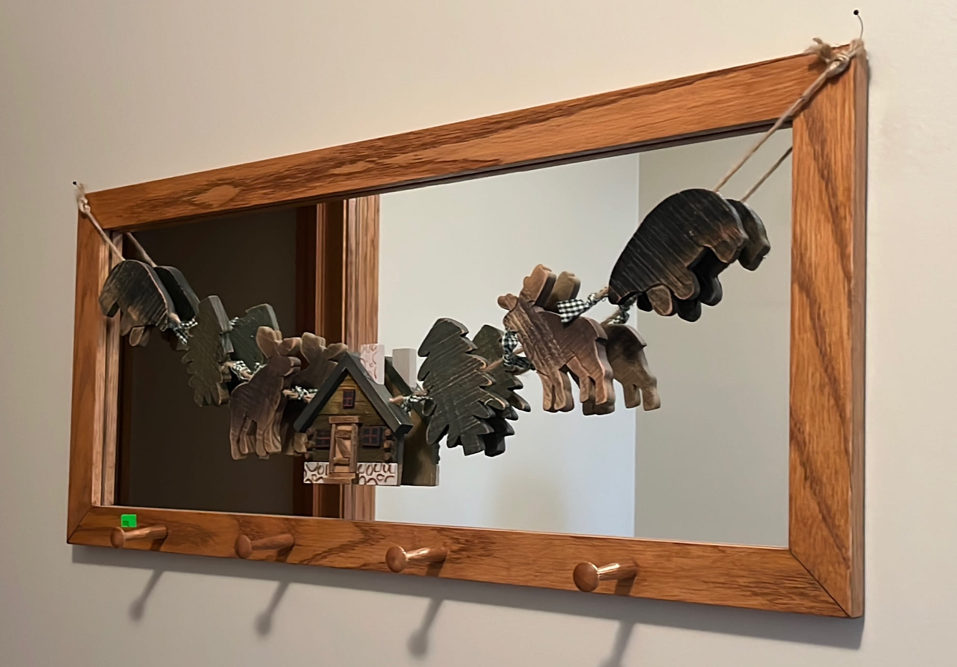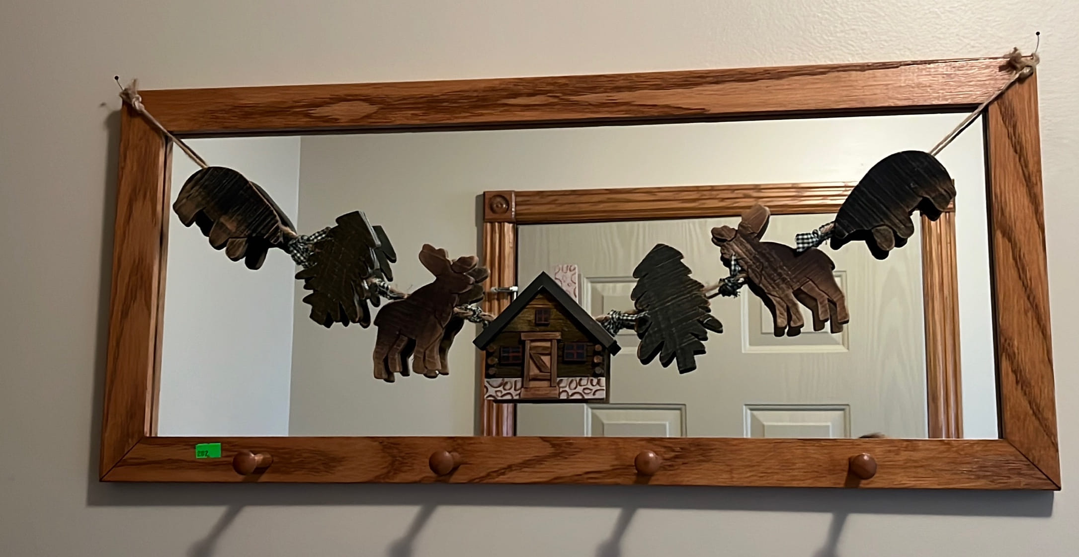 202 Oak mirrored coat rack 30x13.5 with woodland cutouts