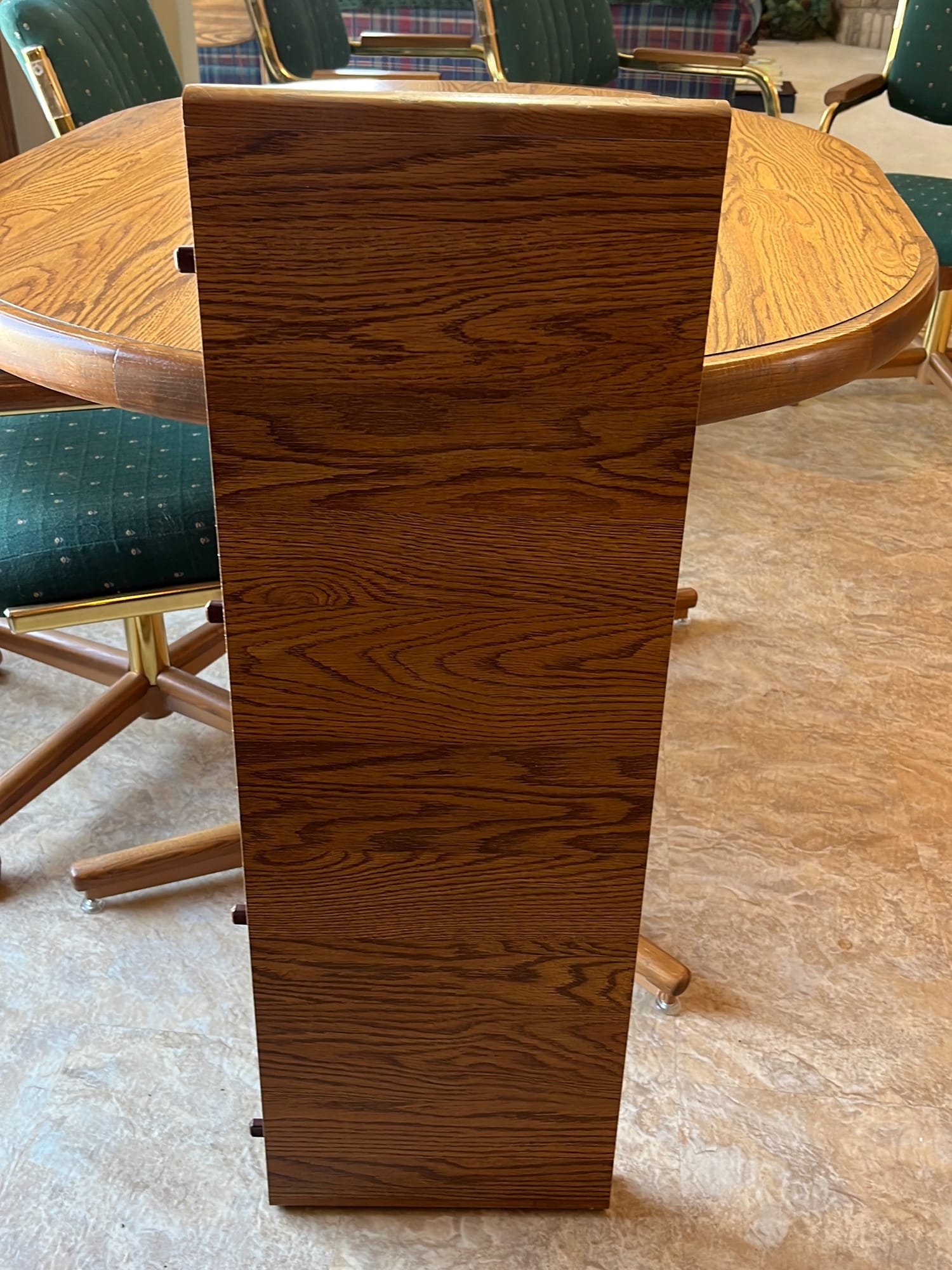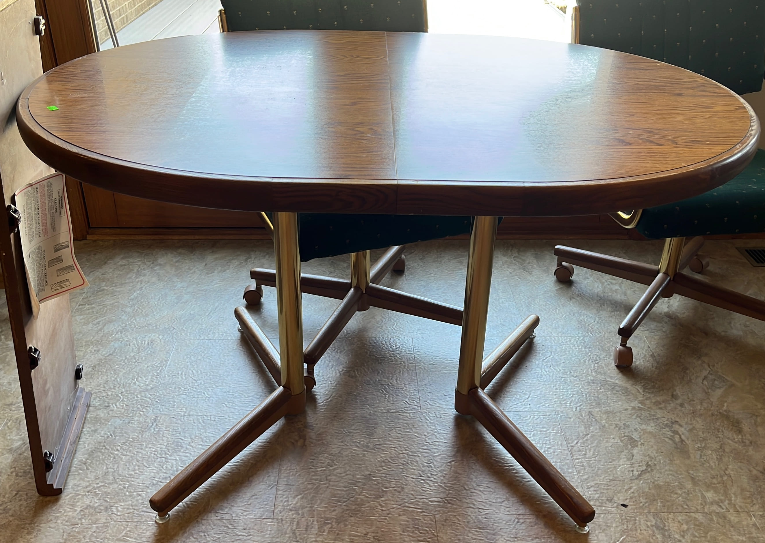 203 Chromcraft woodgrain style Dining table 36x47, one leaf 36x12