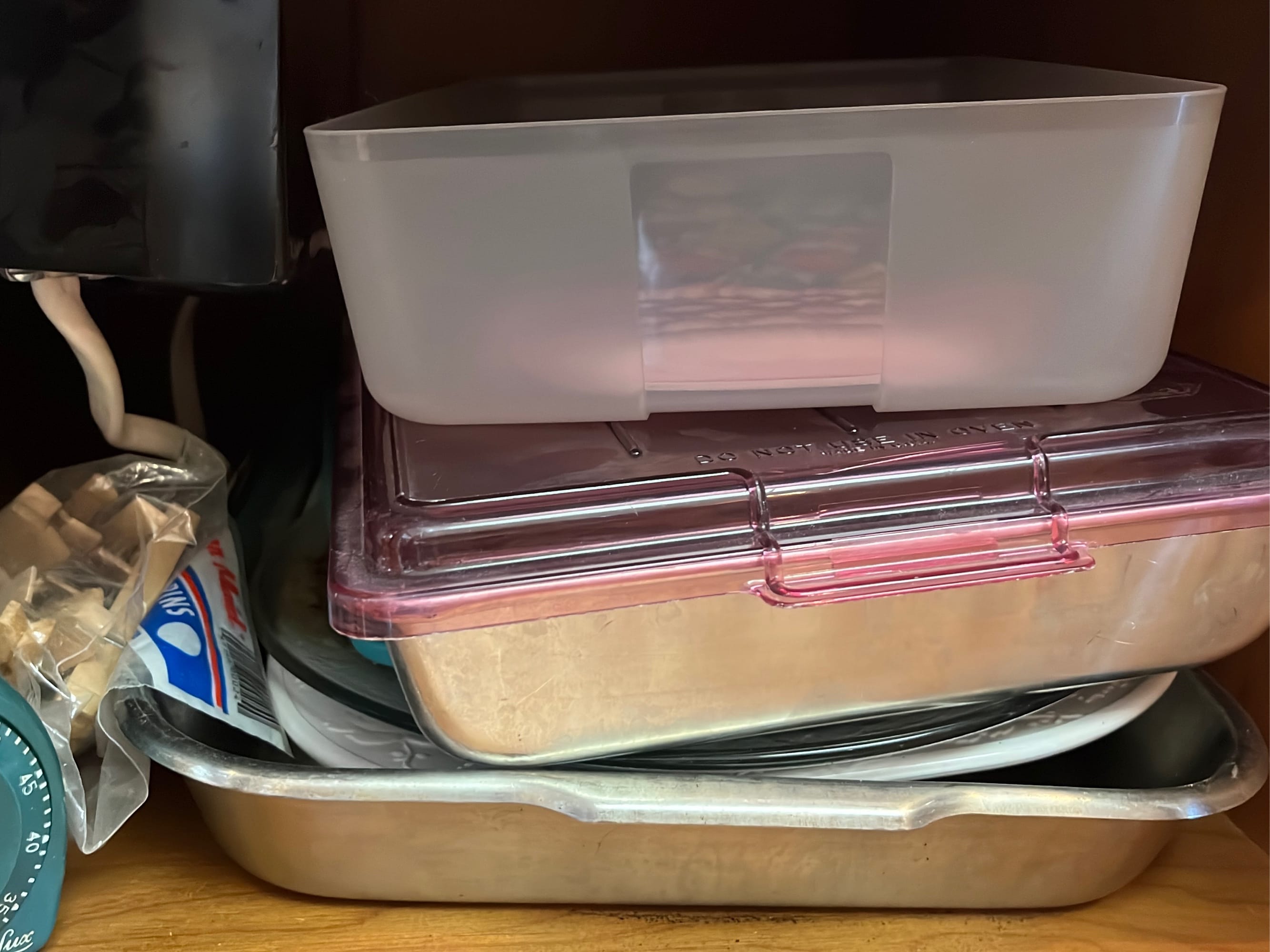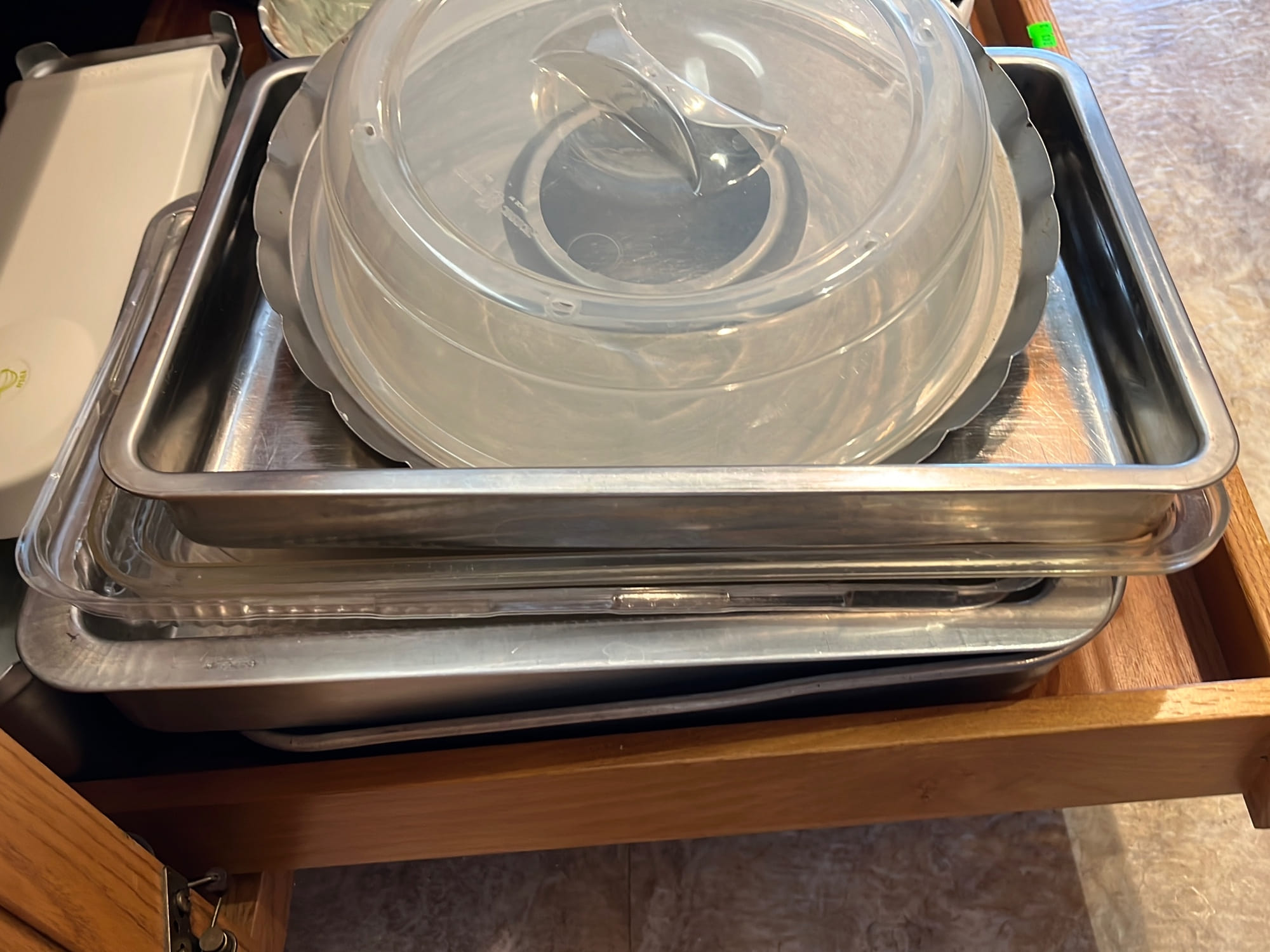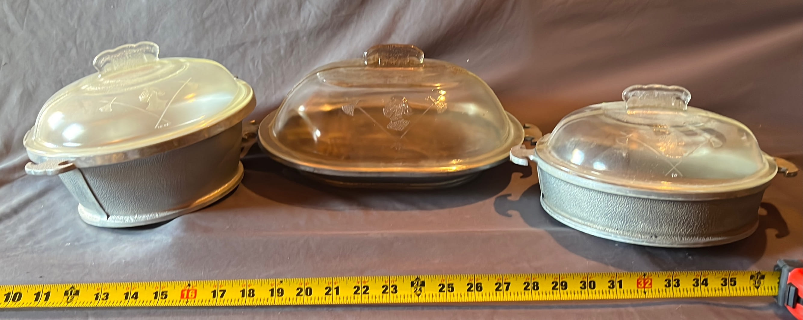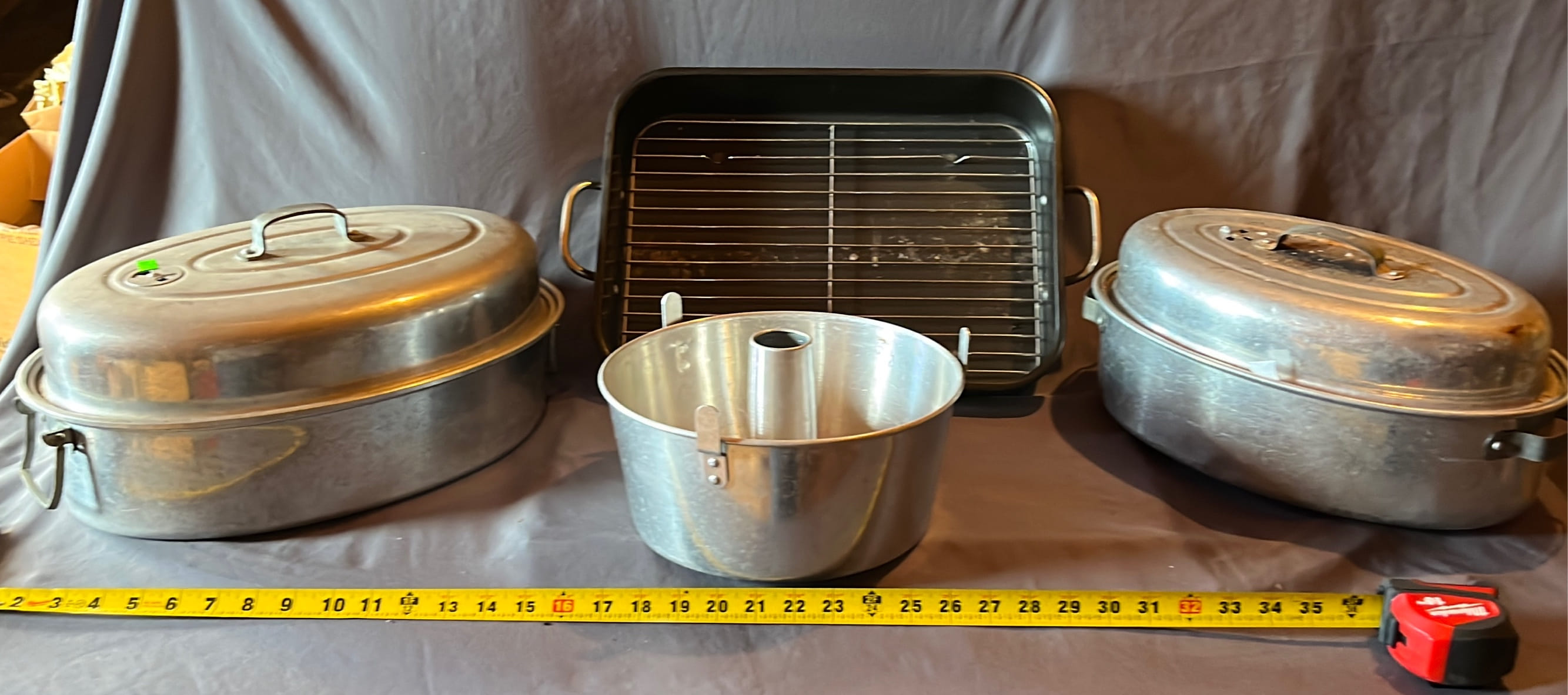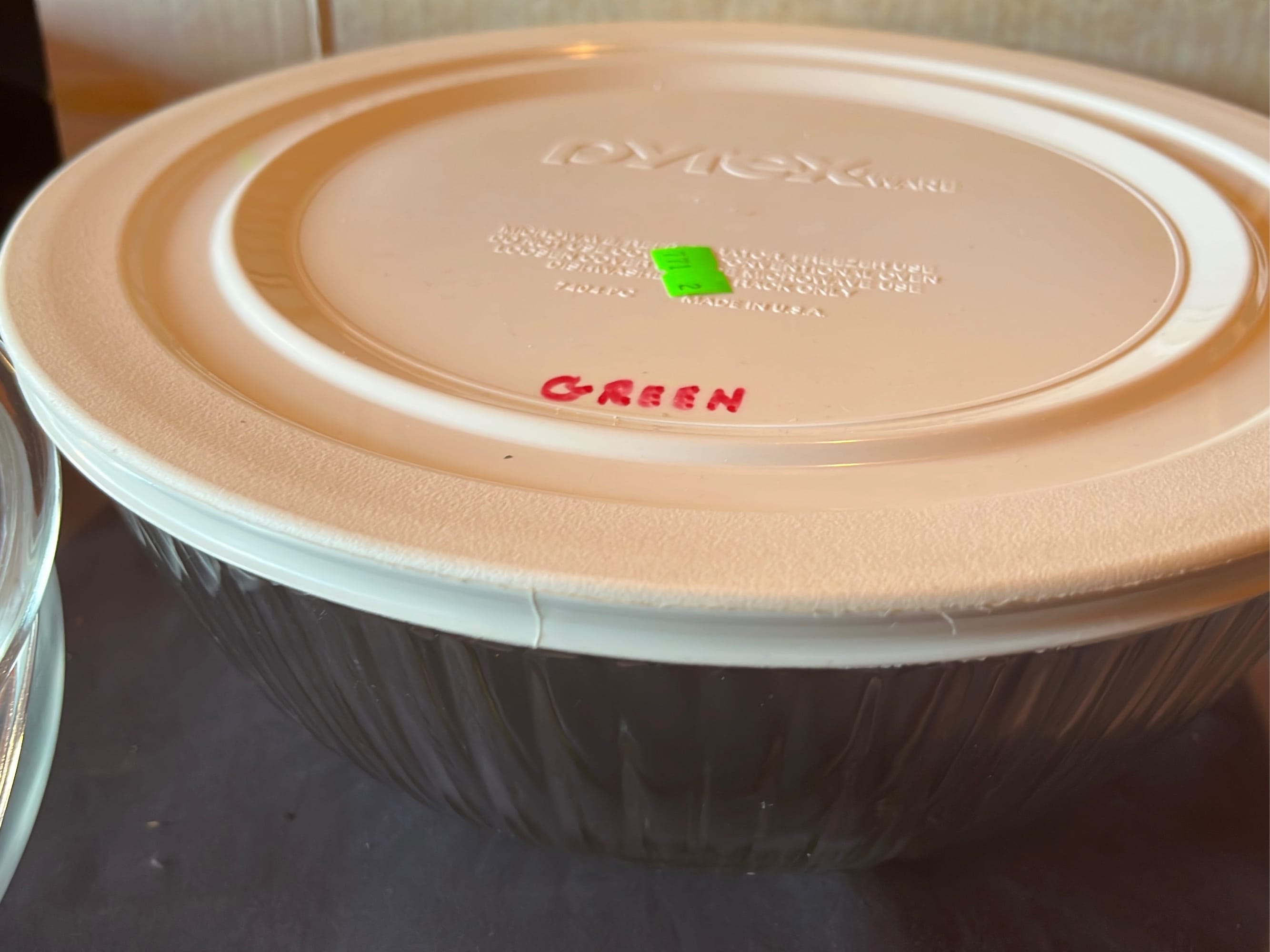 240 Glass and aluminum baking dishes, Corelle casserole dishes