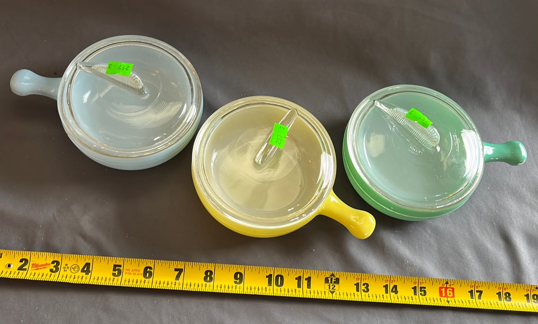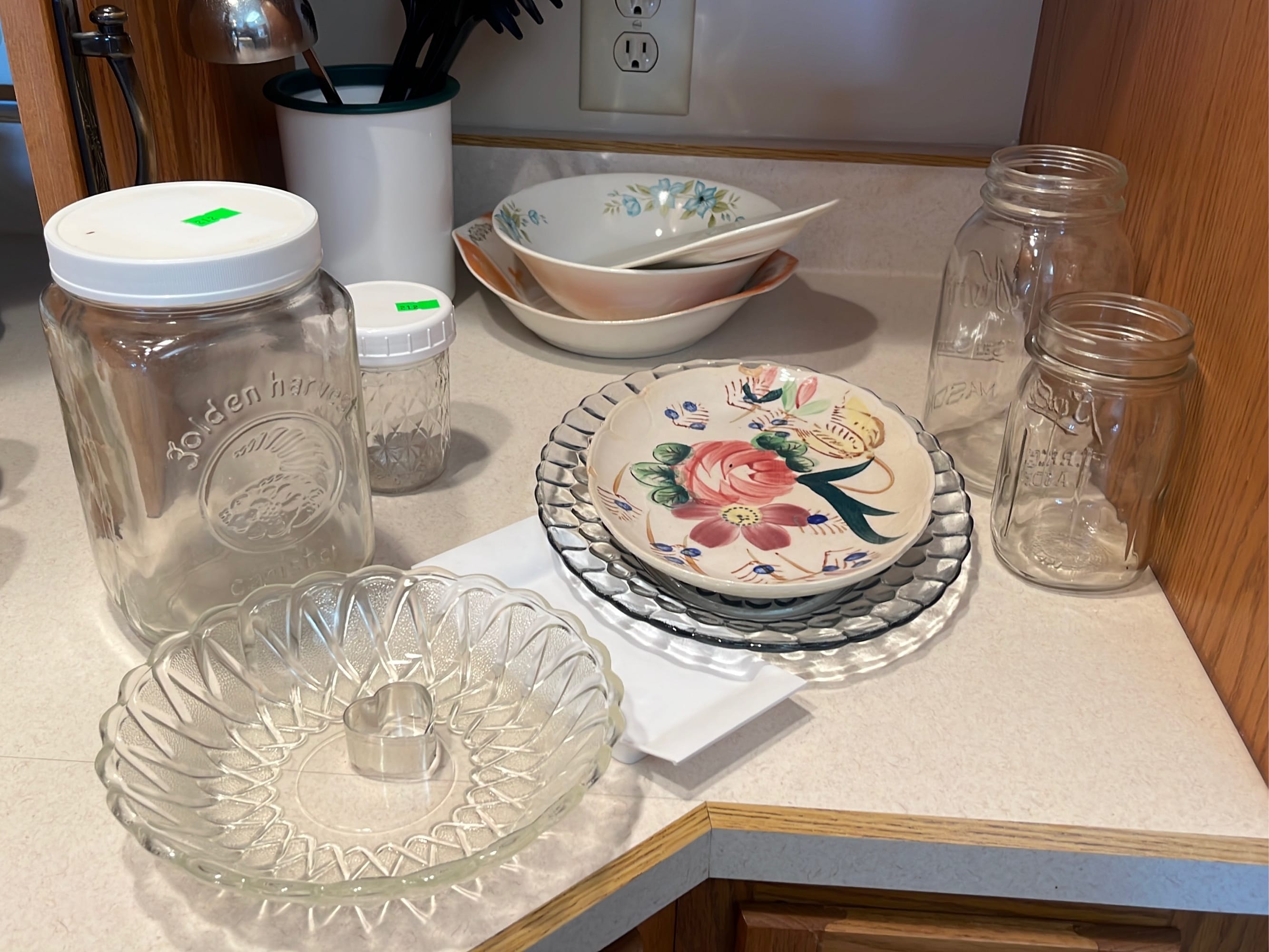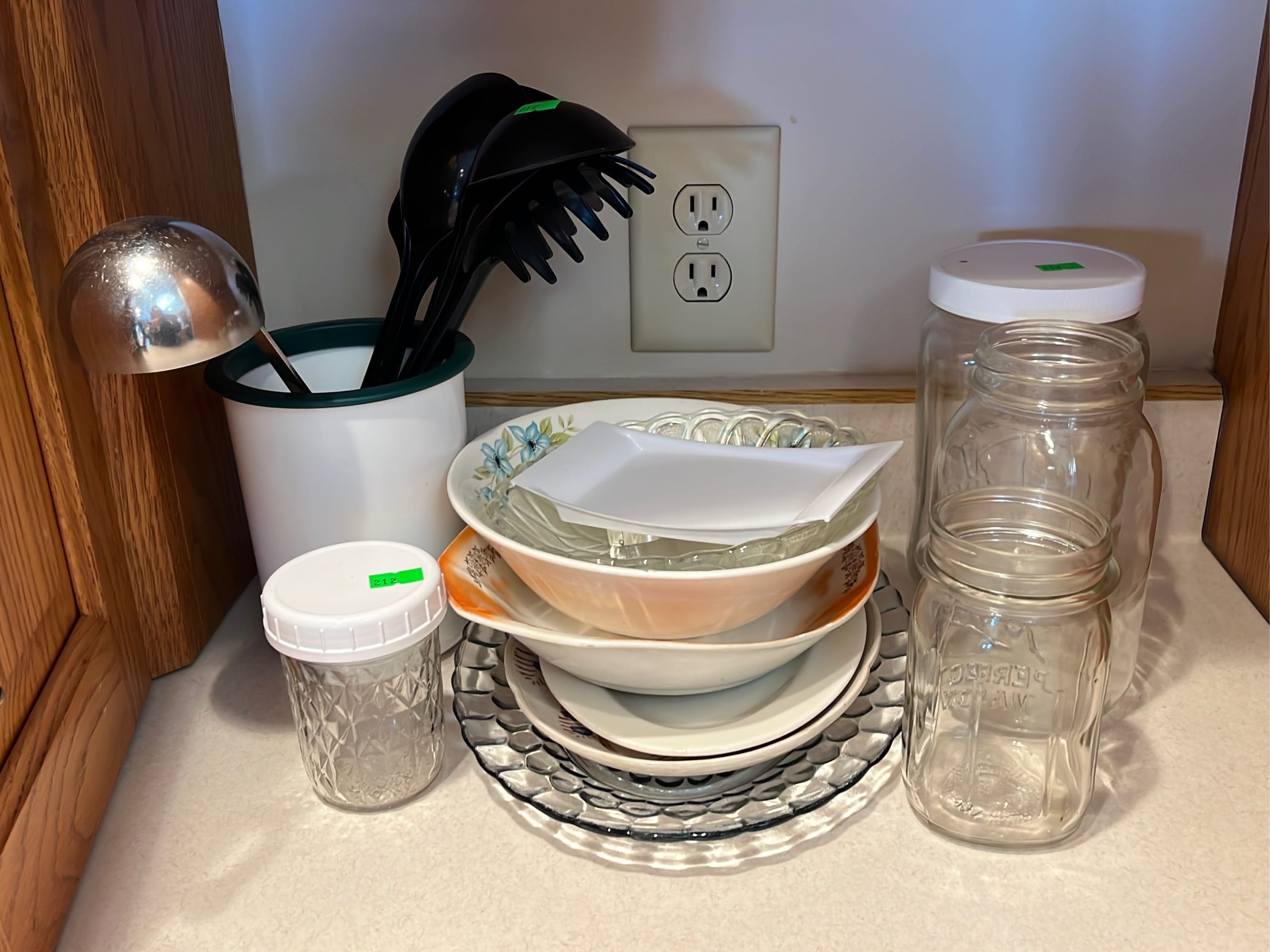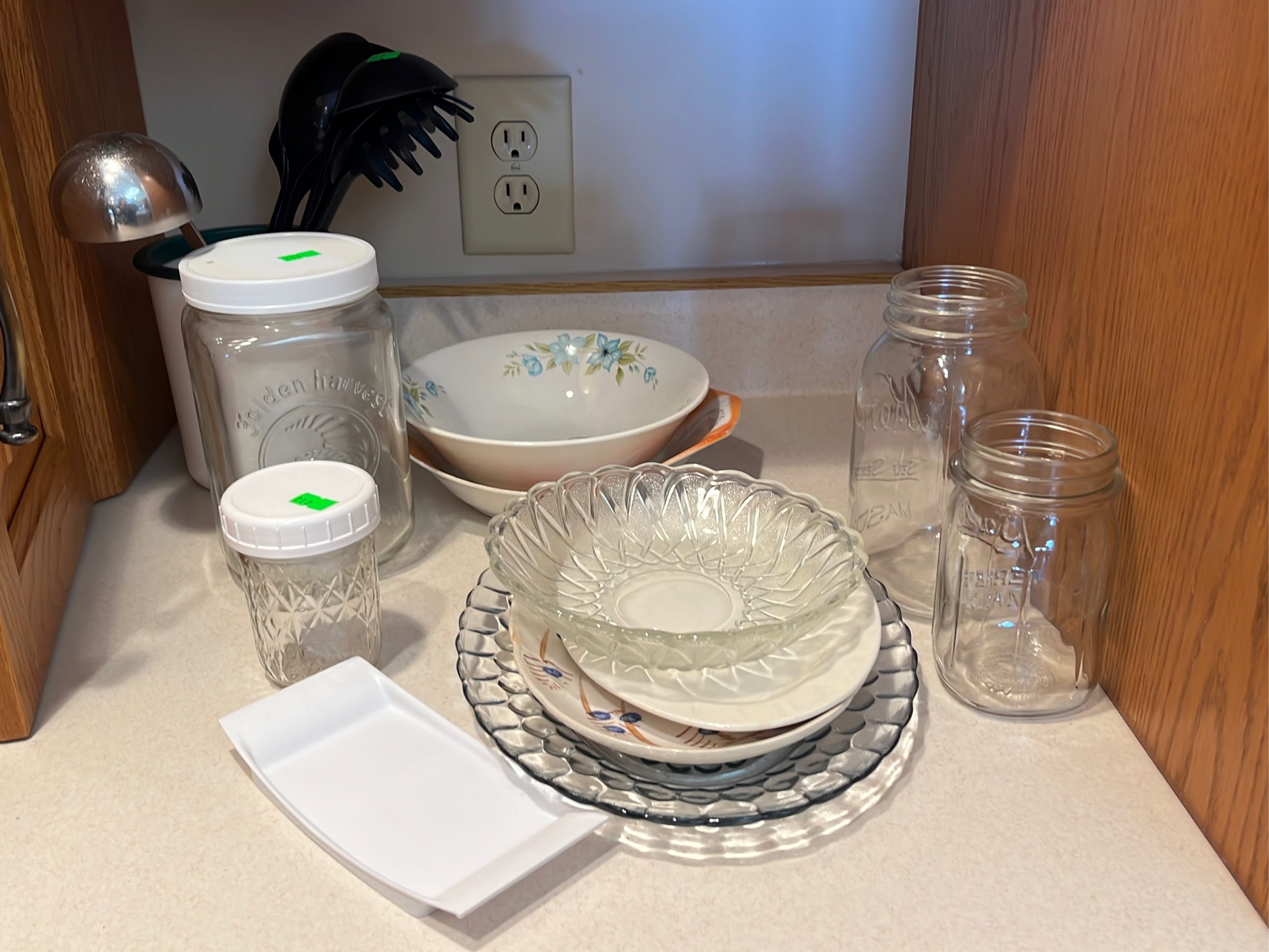 240 Glass and aluminum baking dishes, Corelle casserole dishes