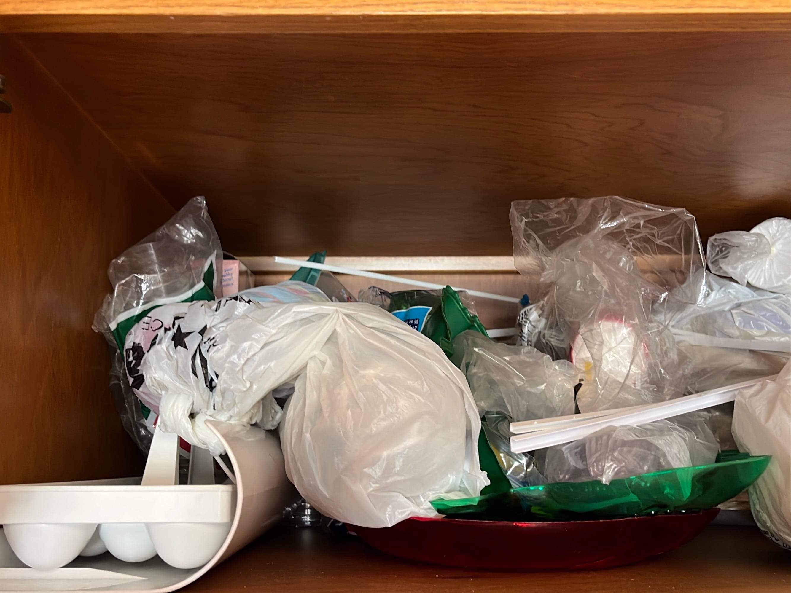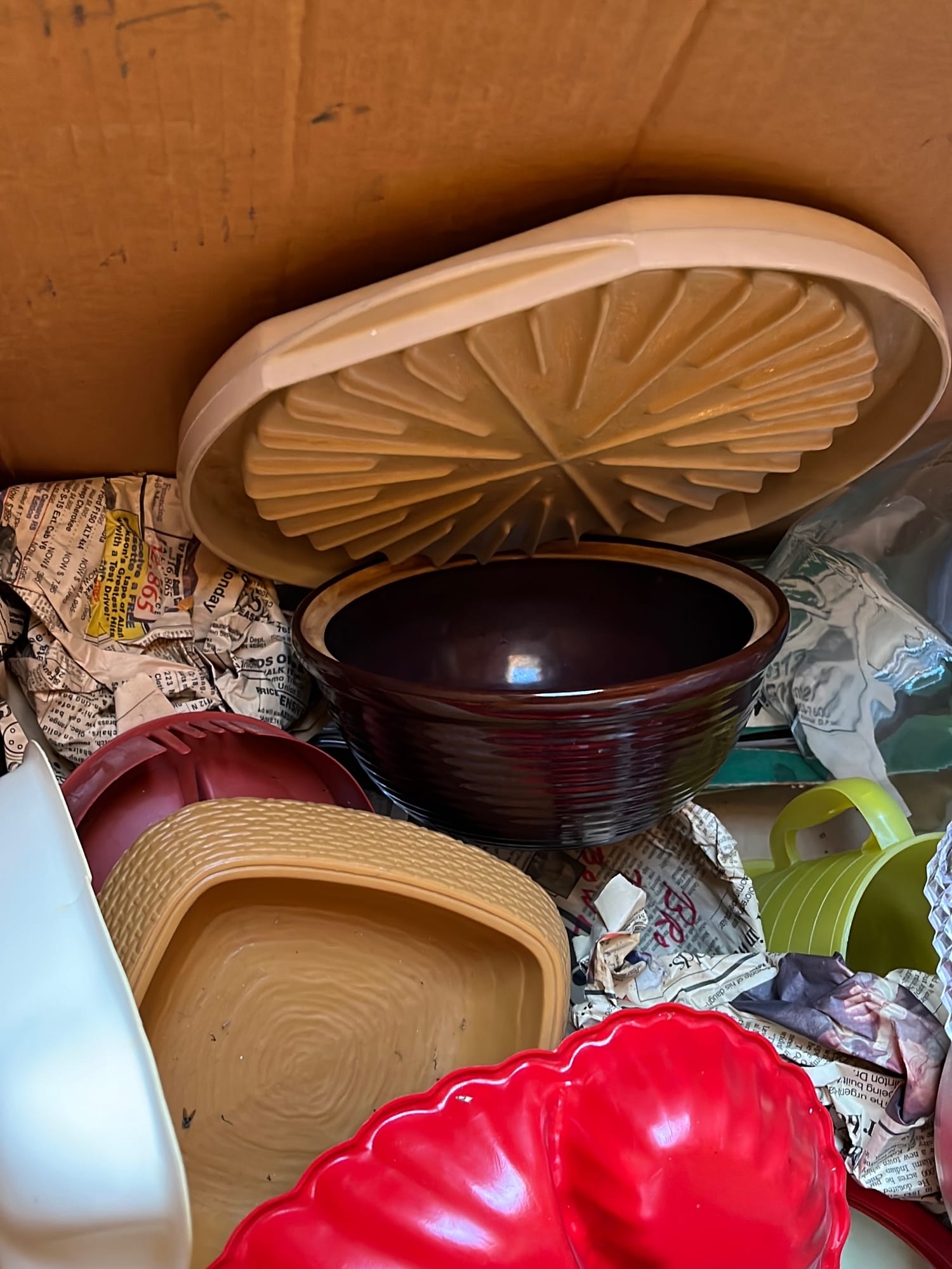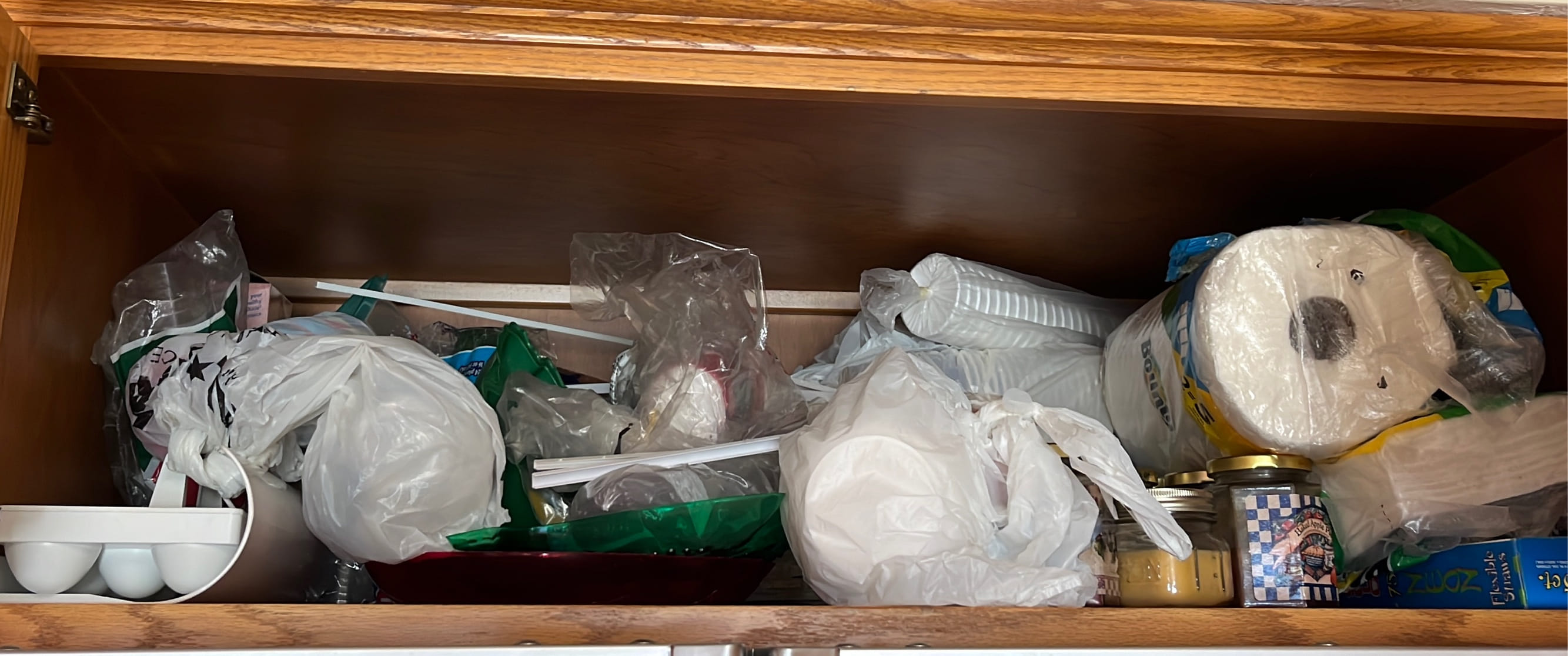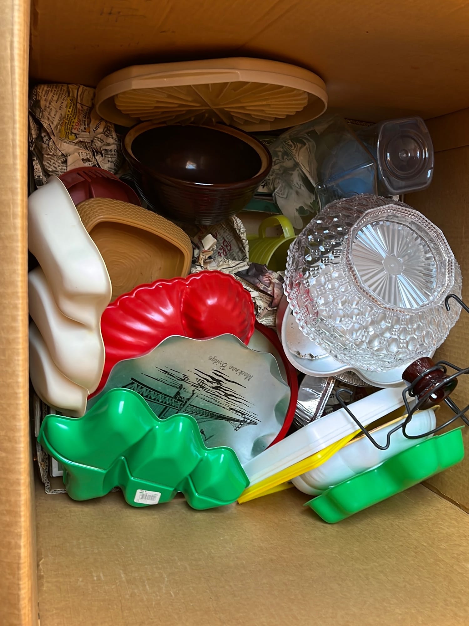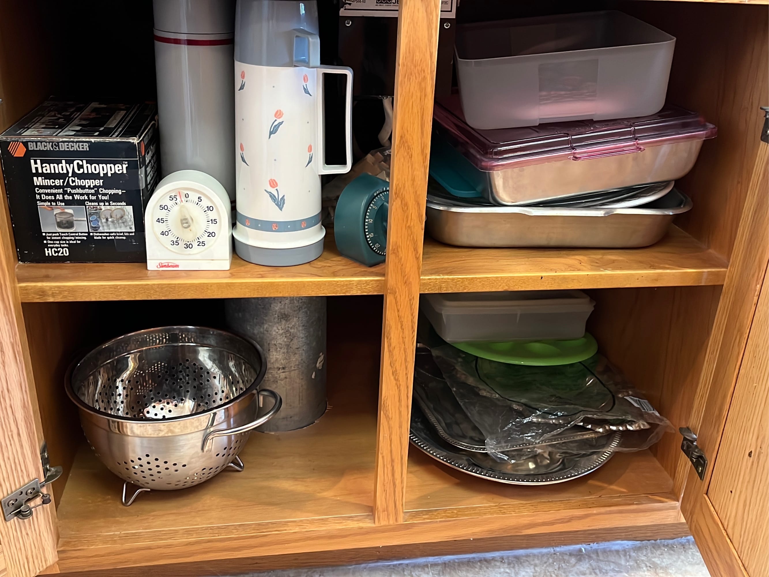 217 Plastic containers, Cuisinart collapsible popcorn bowl contents of cabinet as shown in pictures