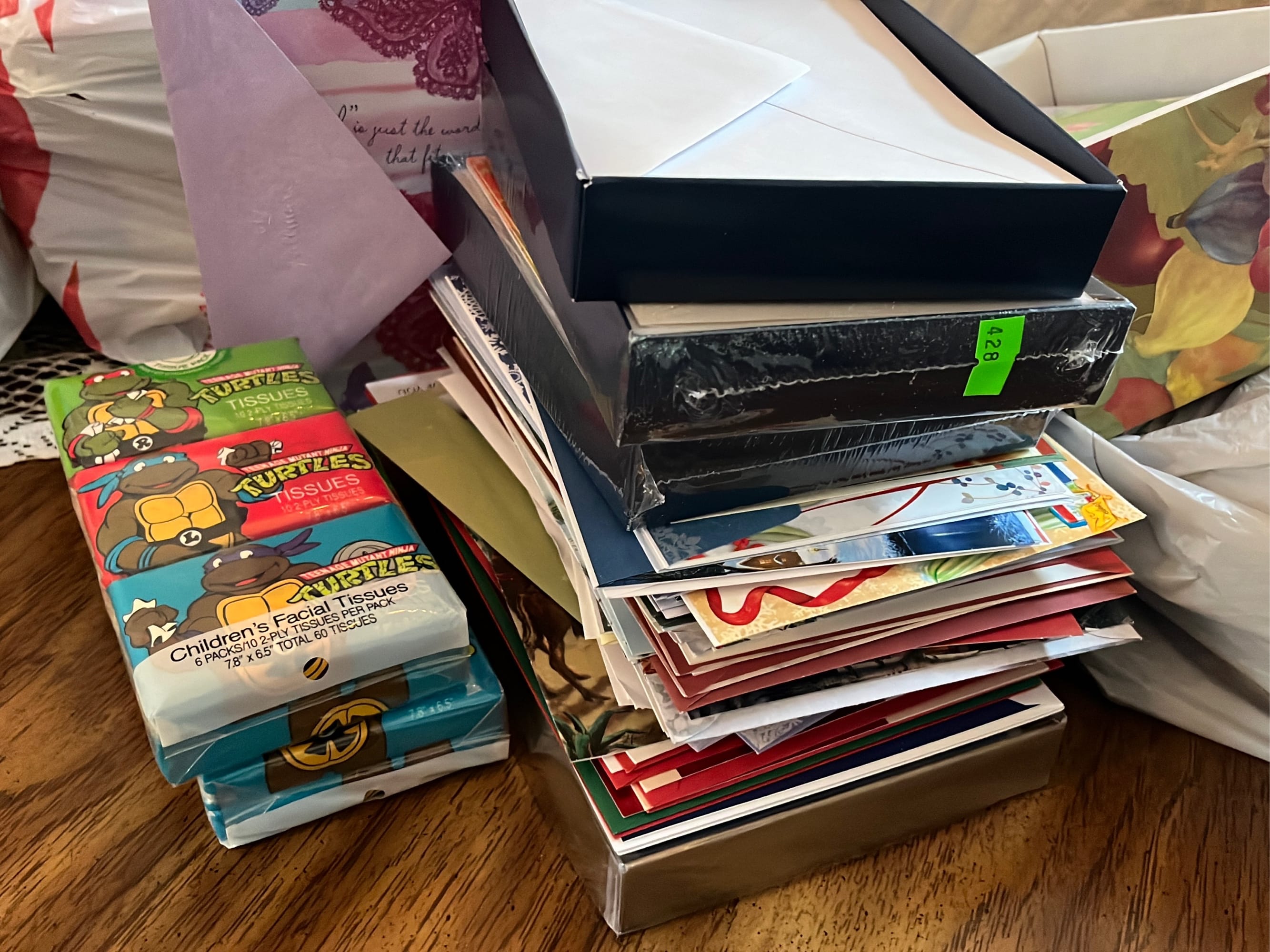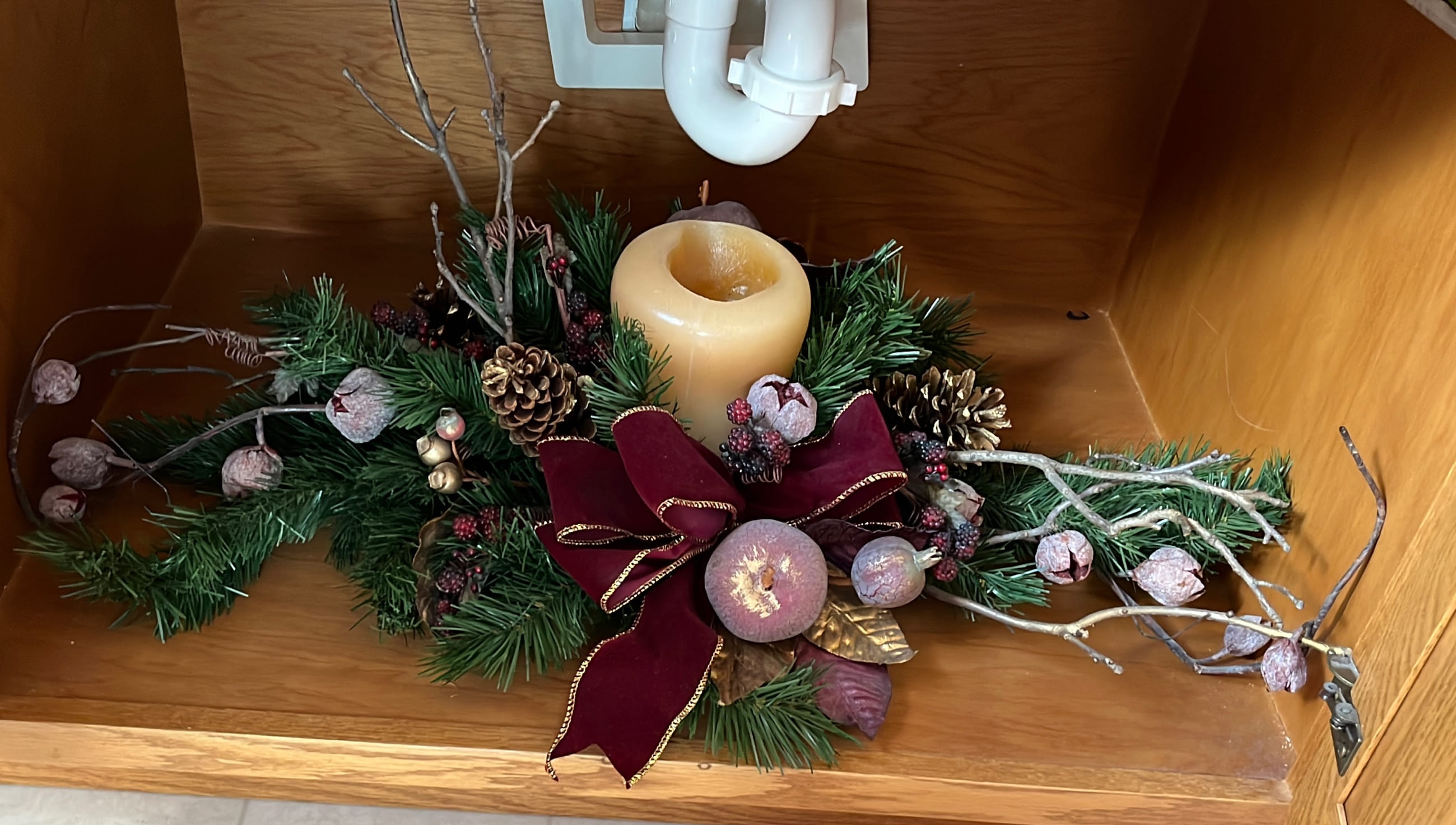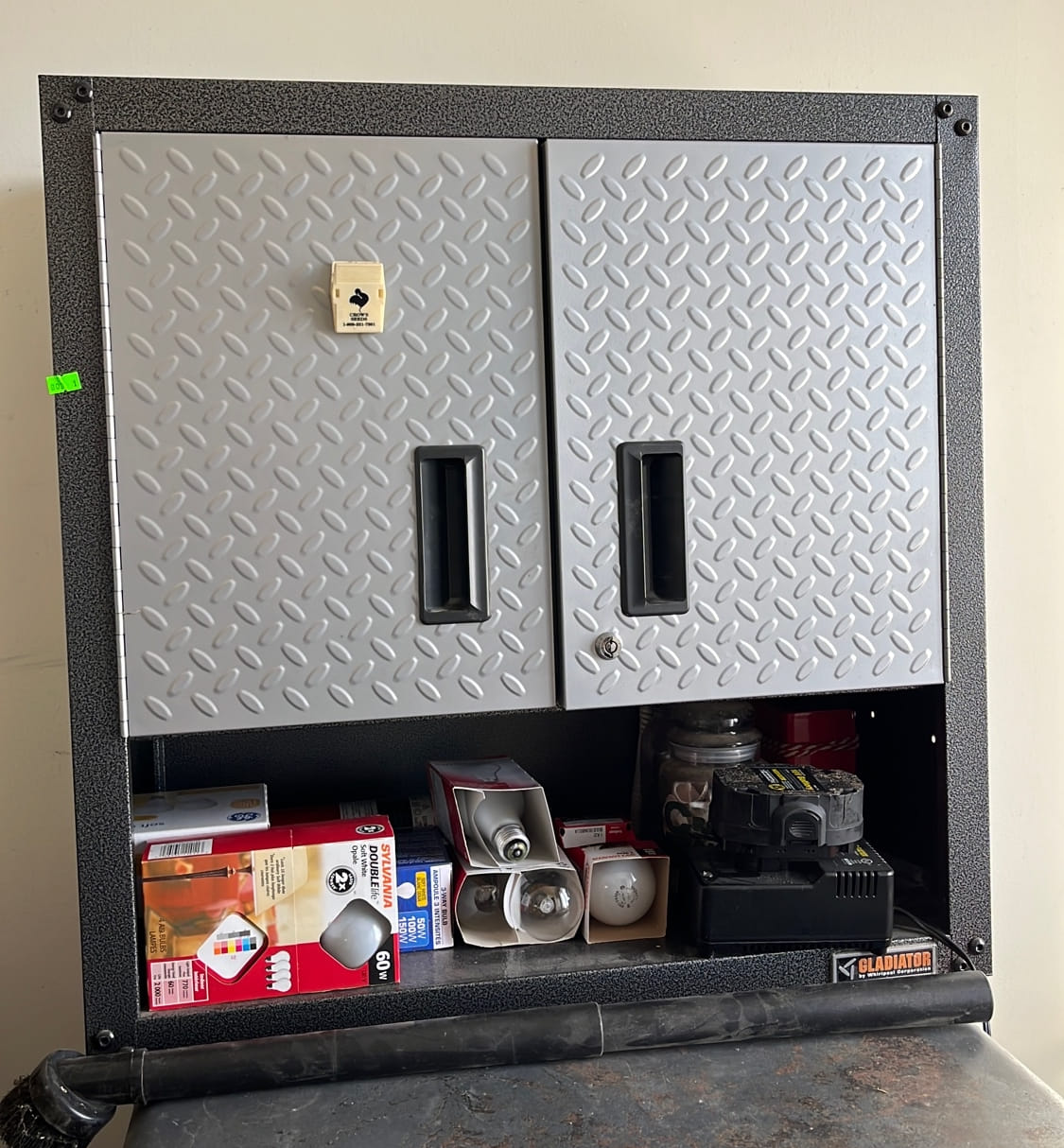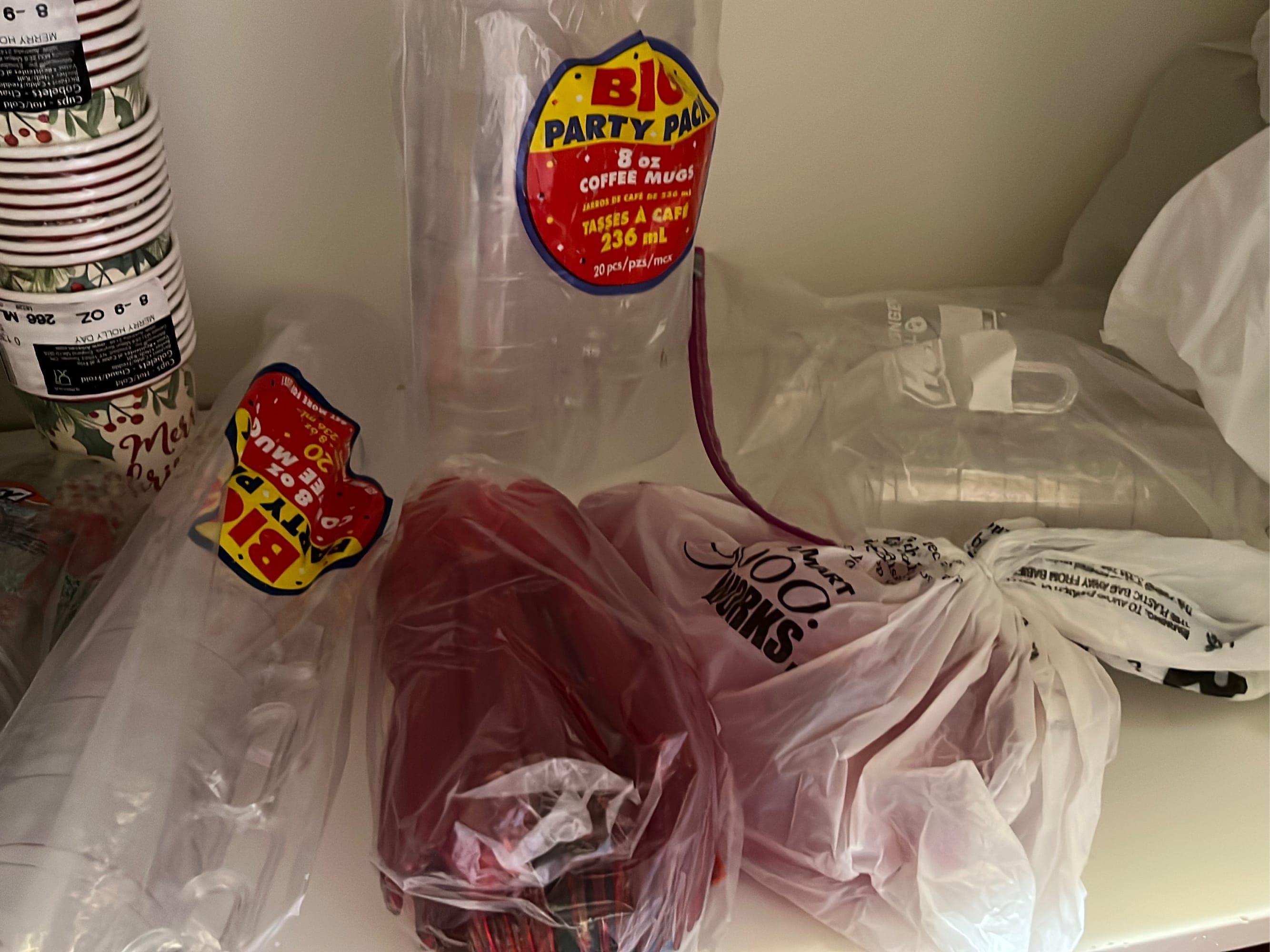 215 Paper and plastic ware, candles contents of cabinet as shown in pictures