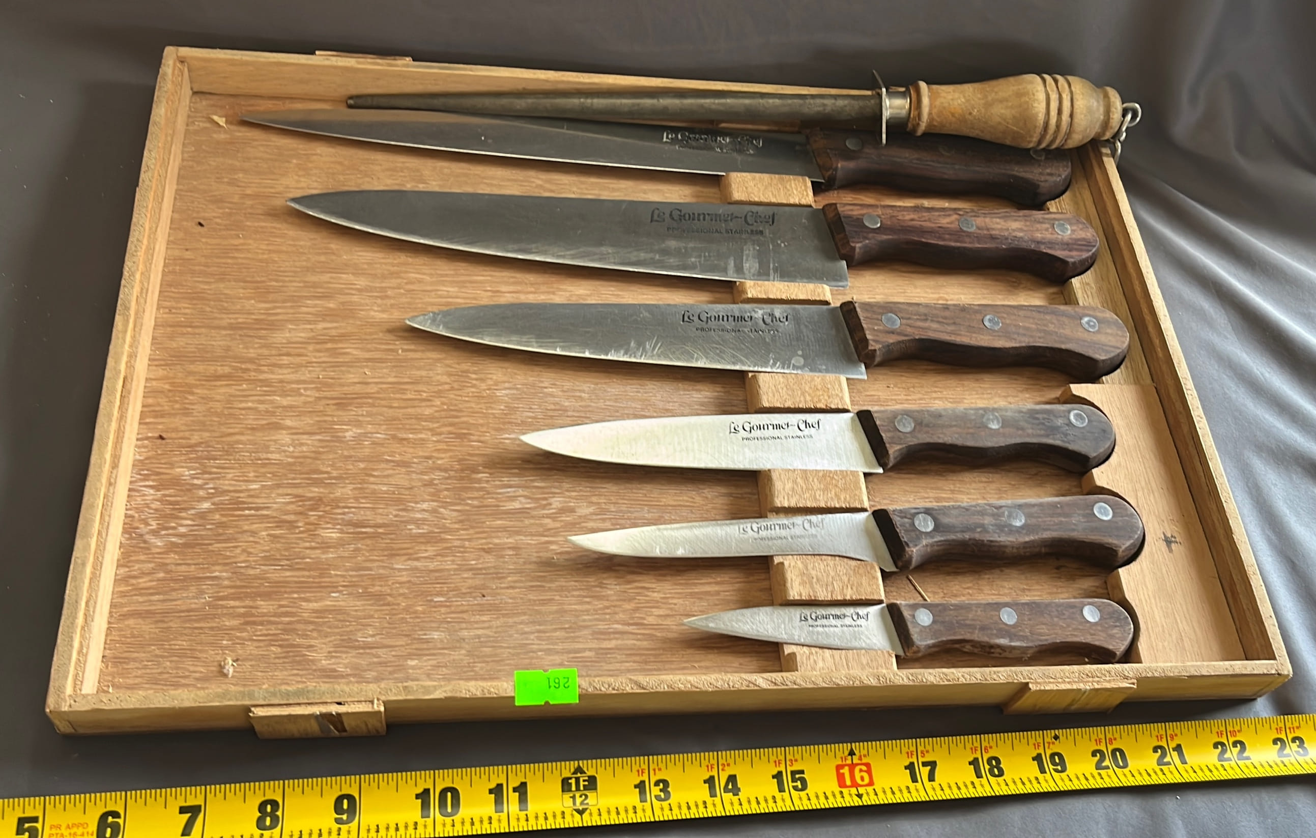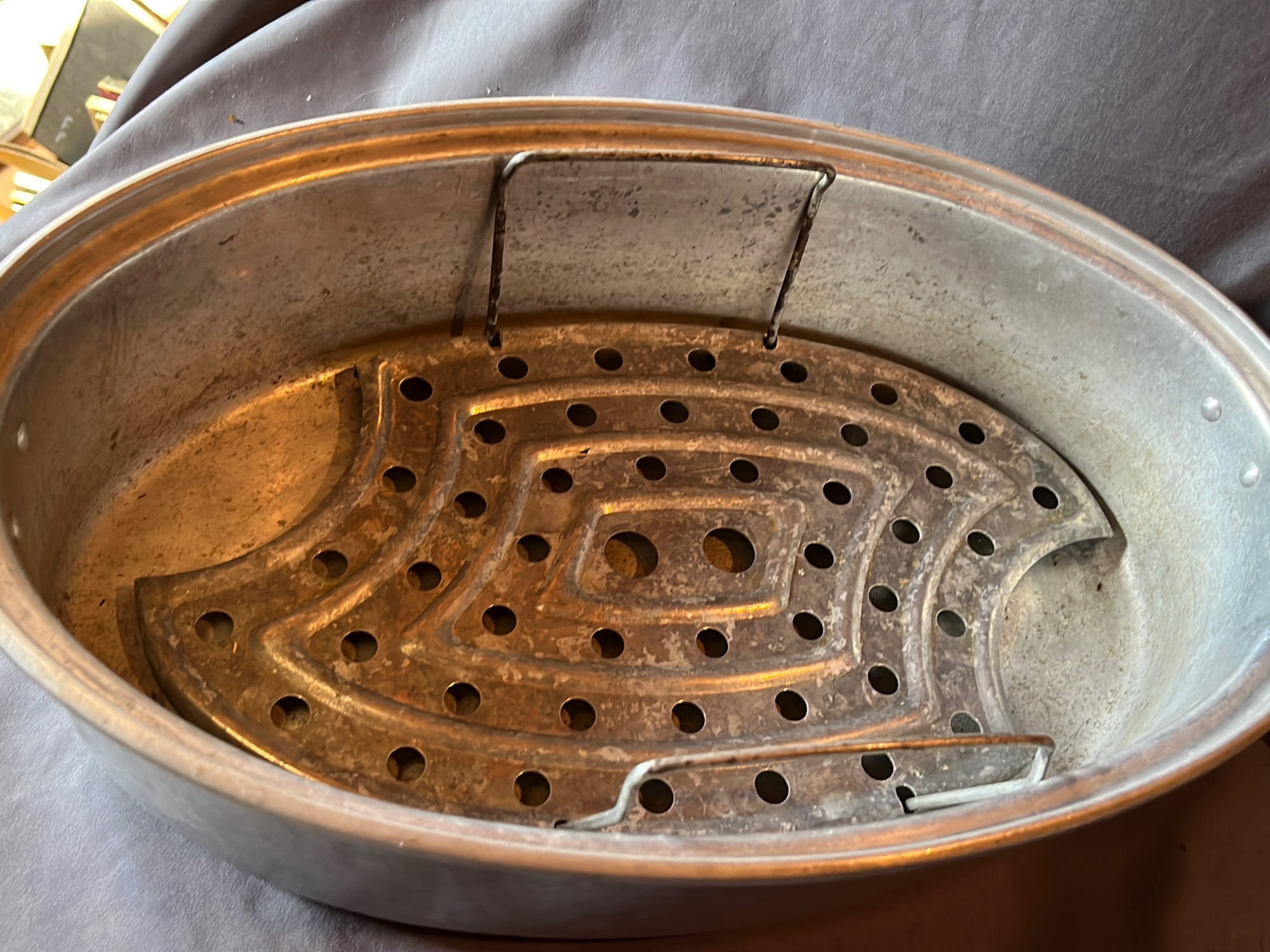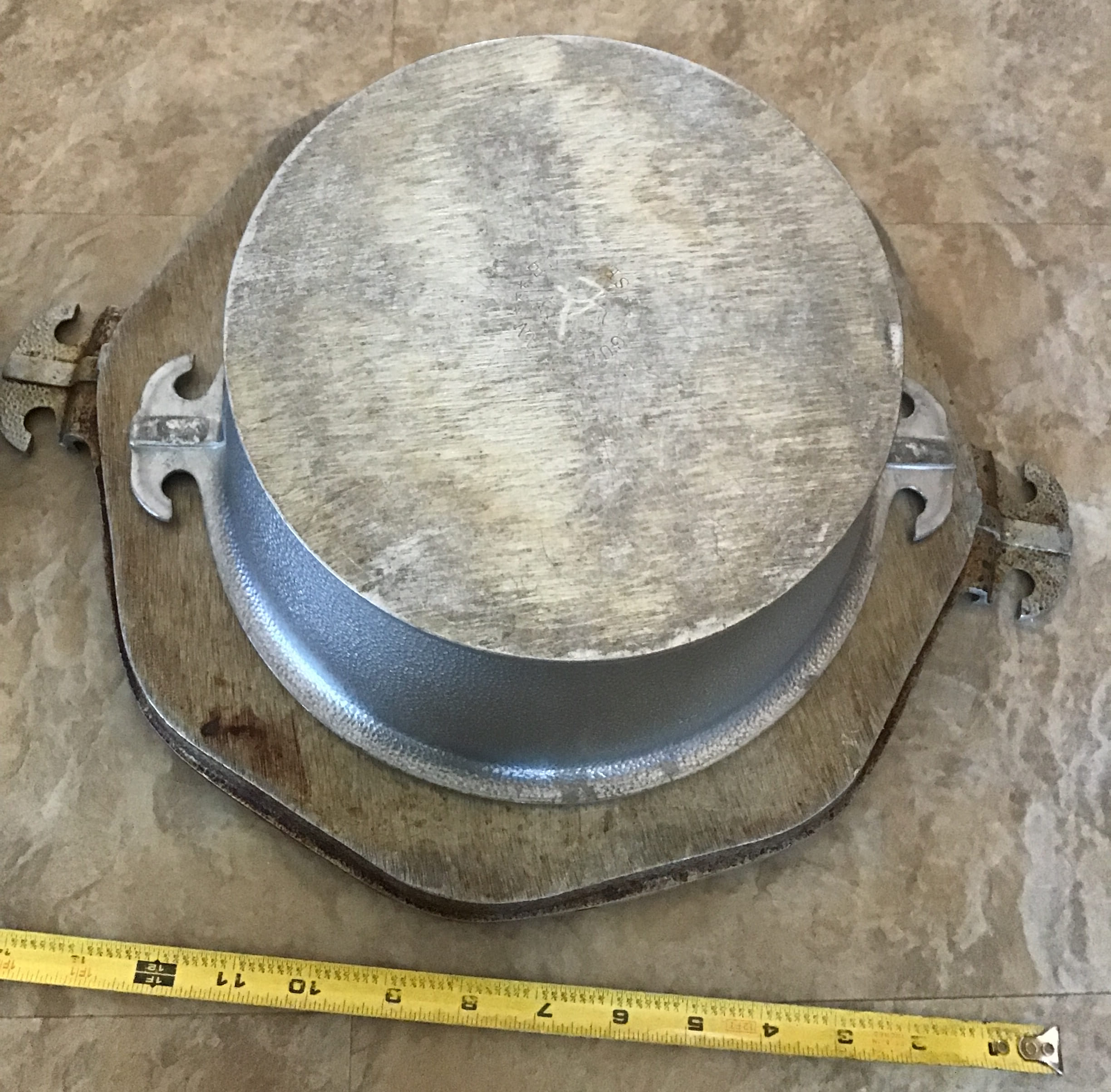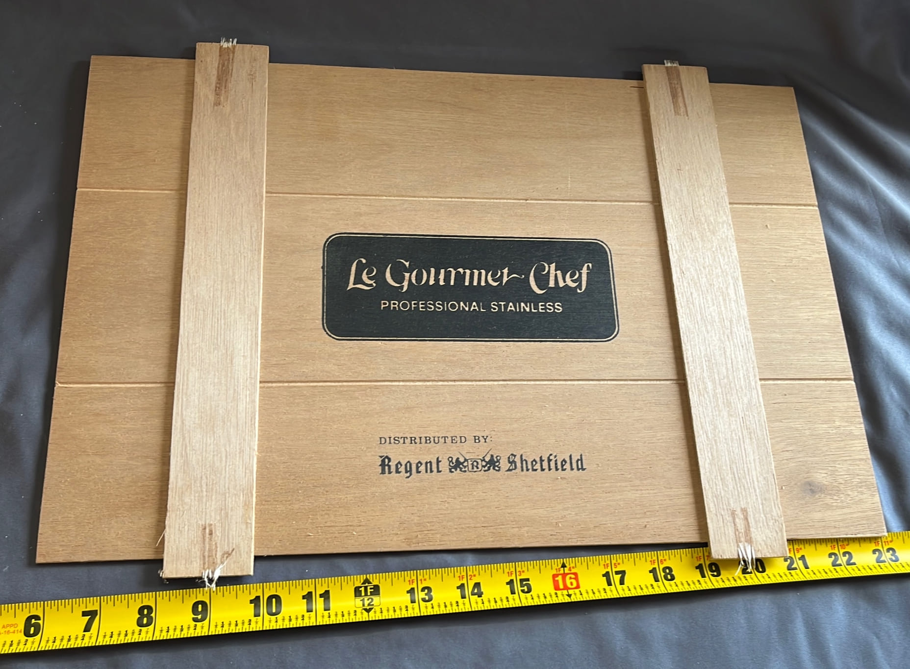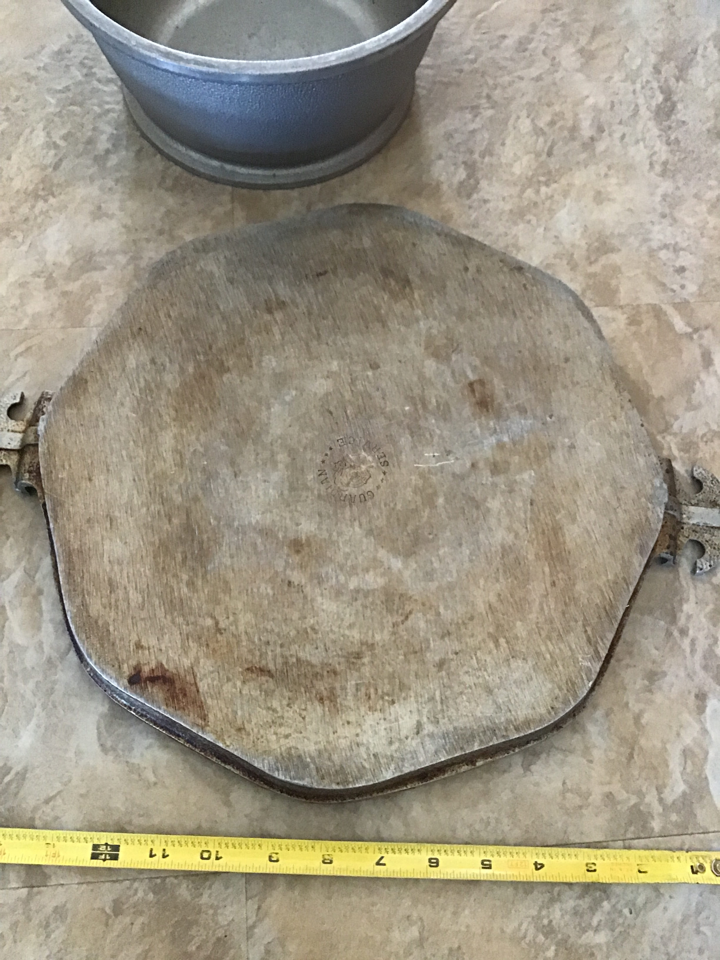 216 Cookie sheets and muffin pans, wood pig cutting board