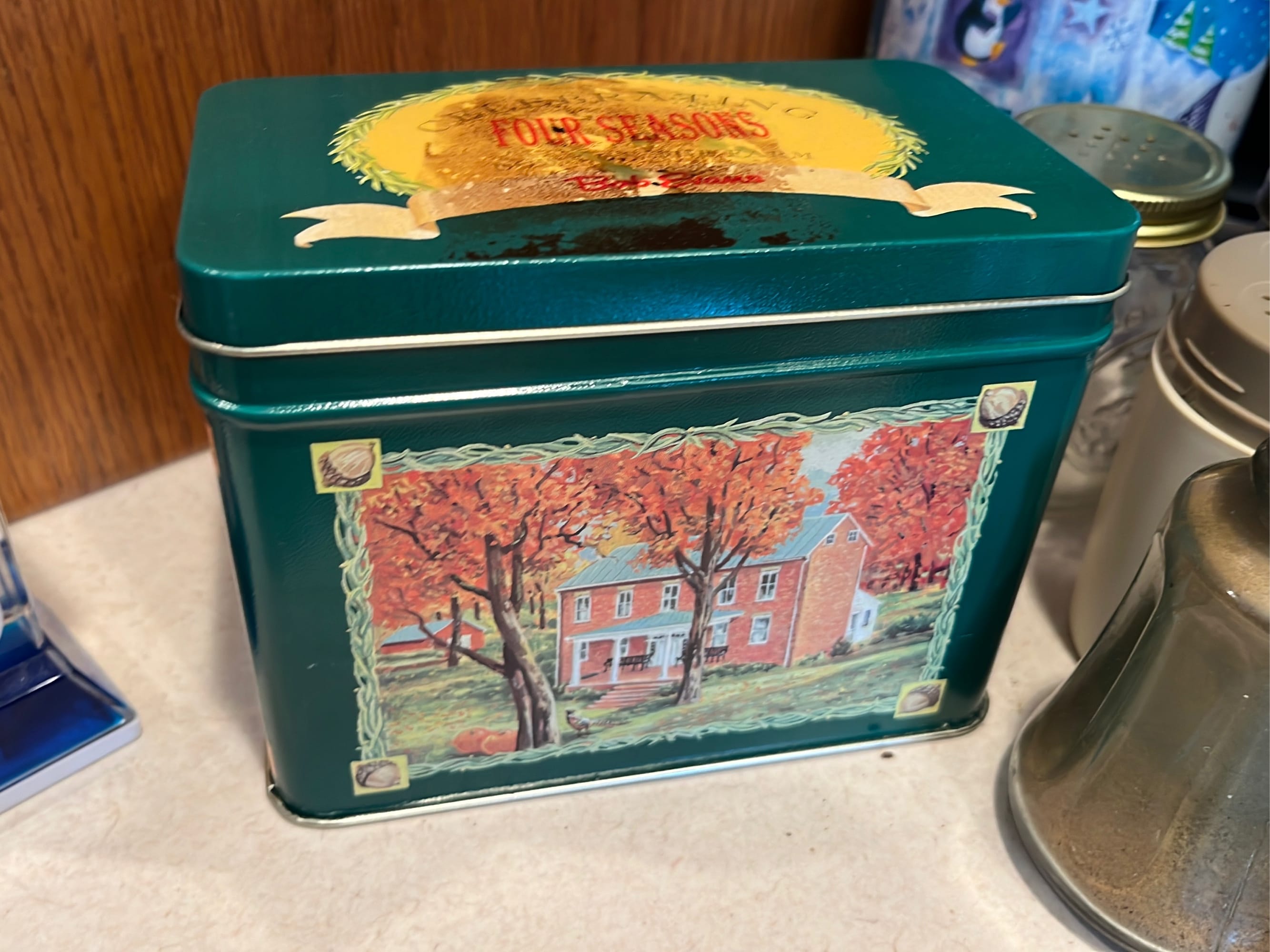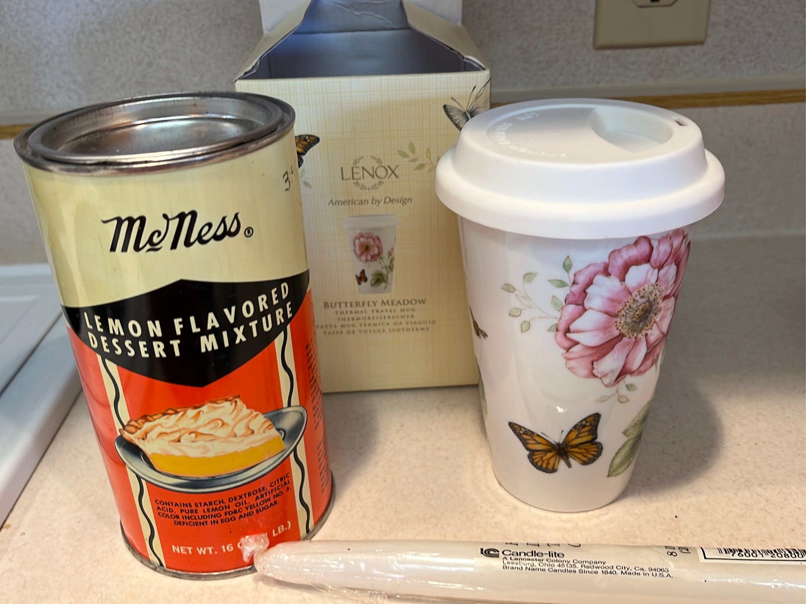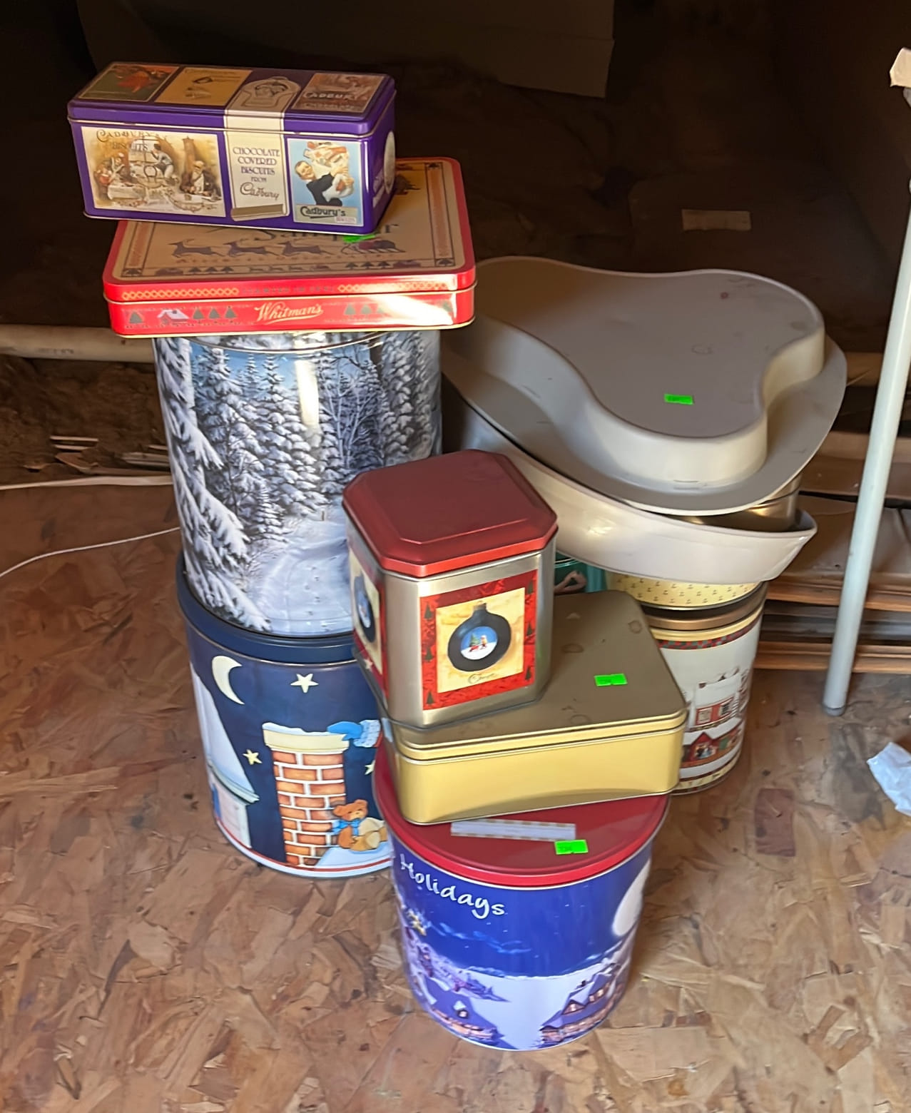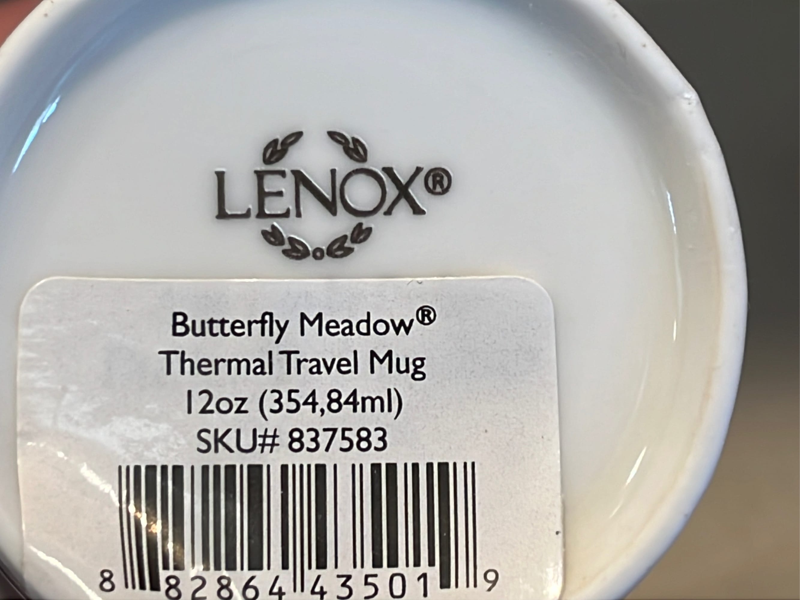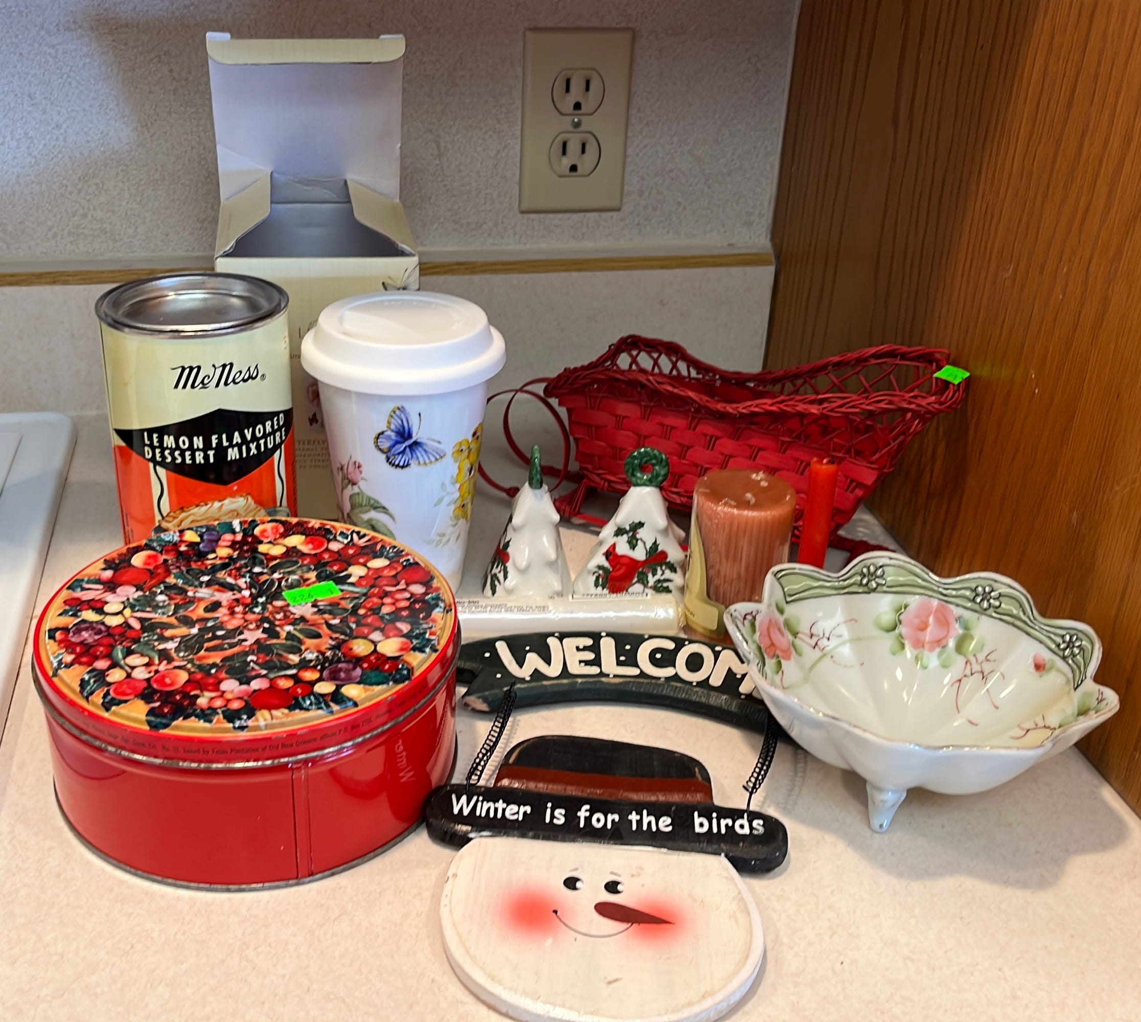 224 Lenox butterfly meadow mug and handpainted footed bowl, tins, holiday decor