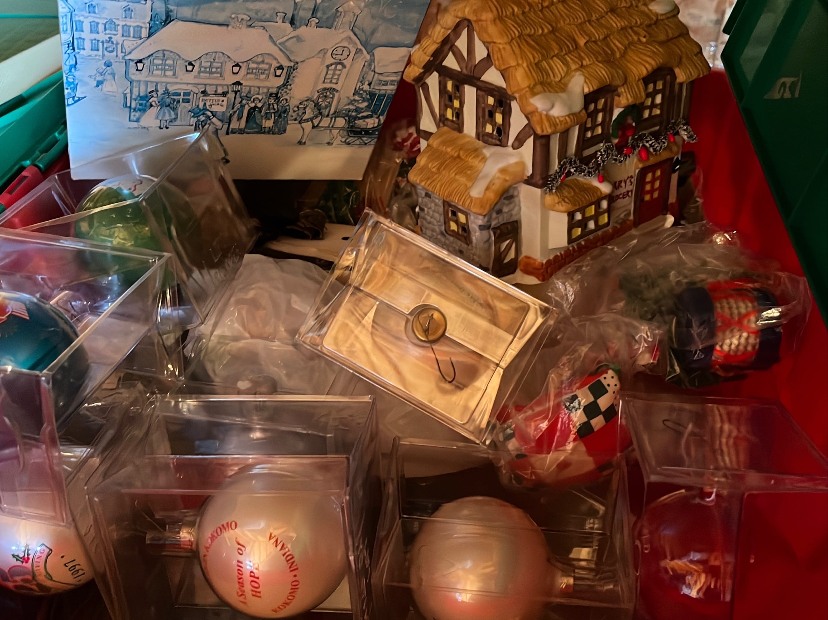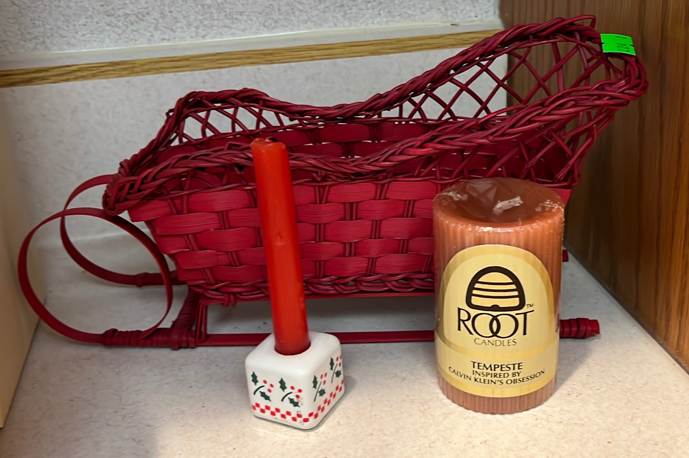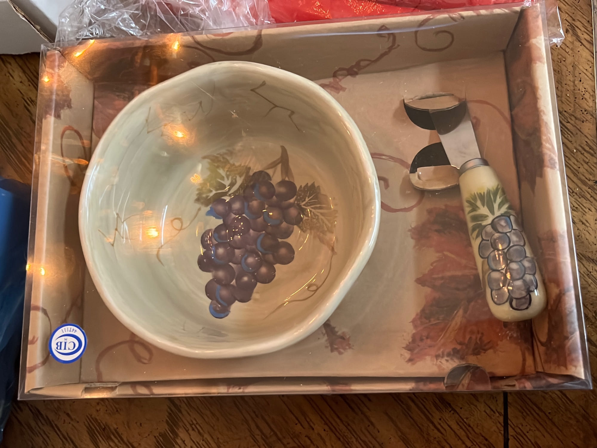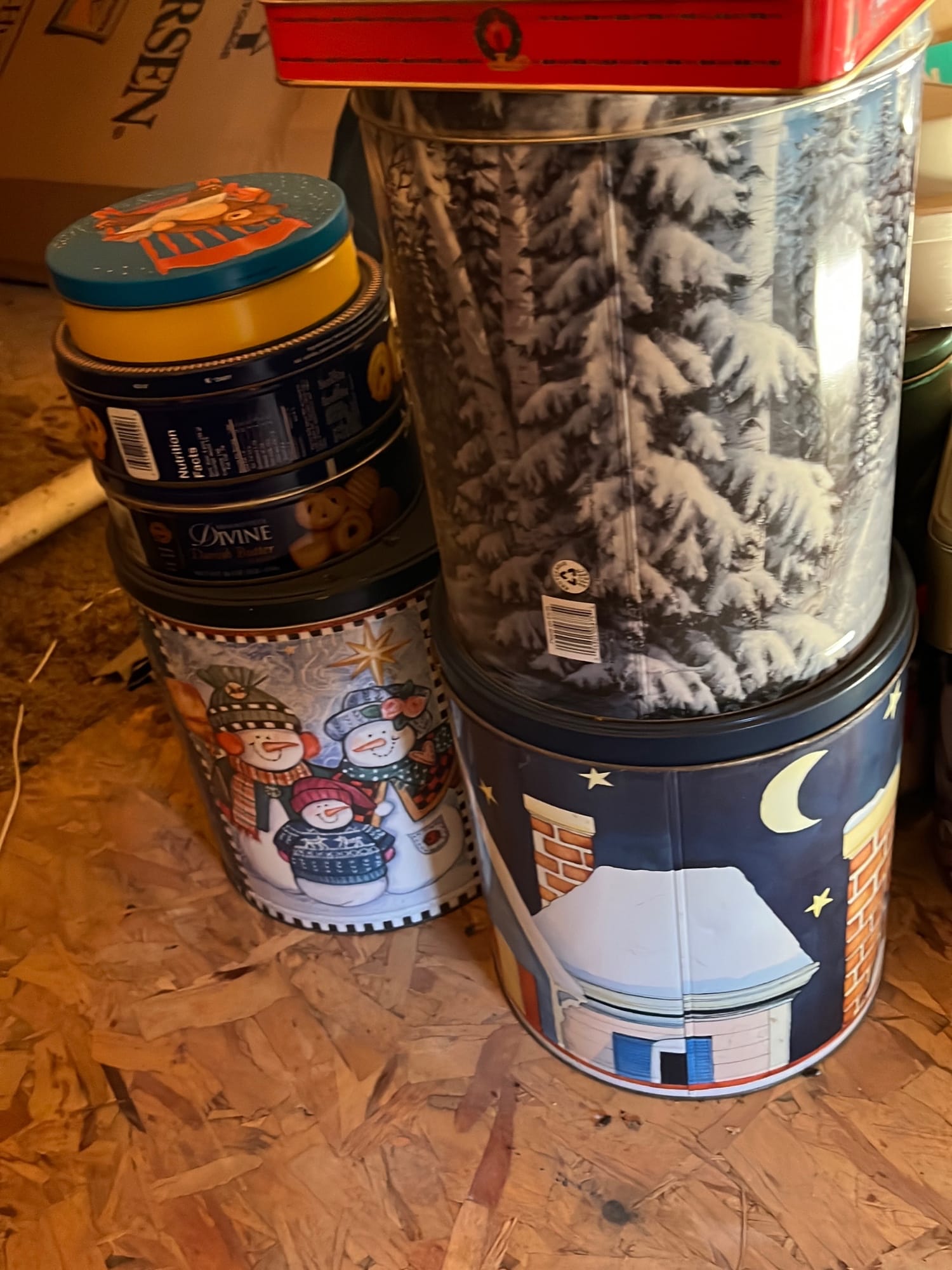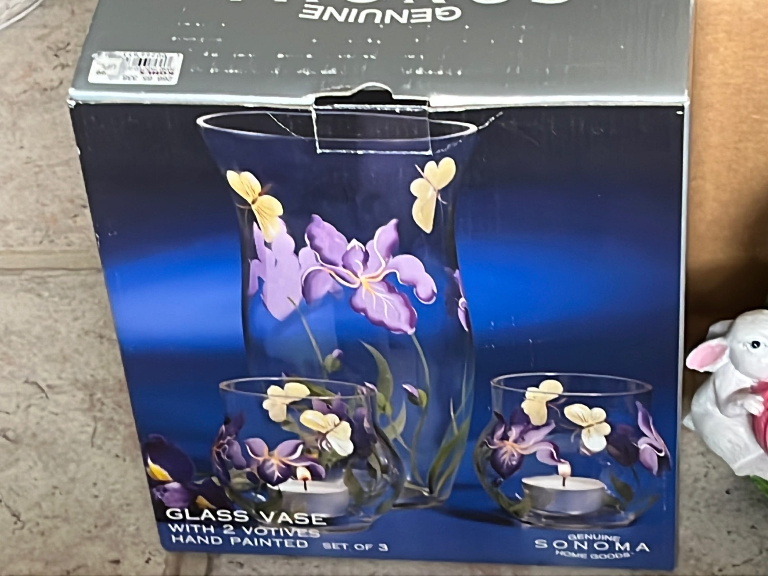 224 Lenox butterfly meadow mug and handpainted footed bowl, tins, holiday decor