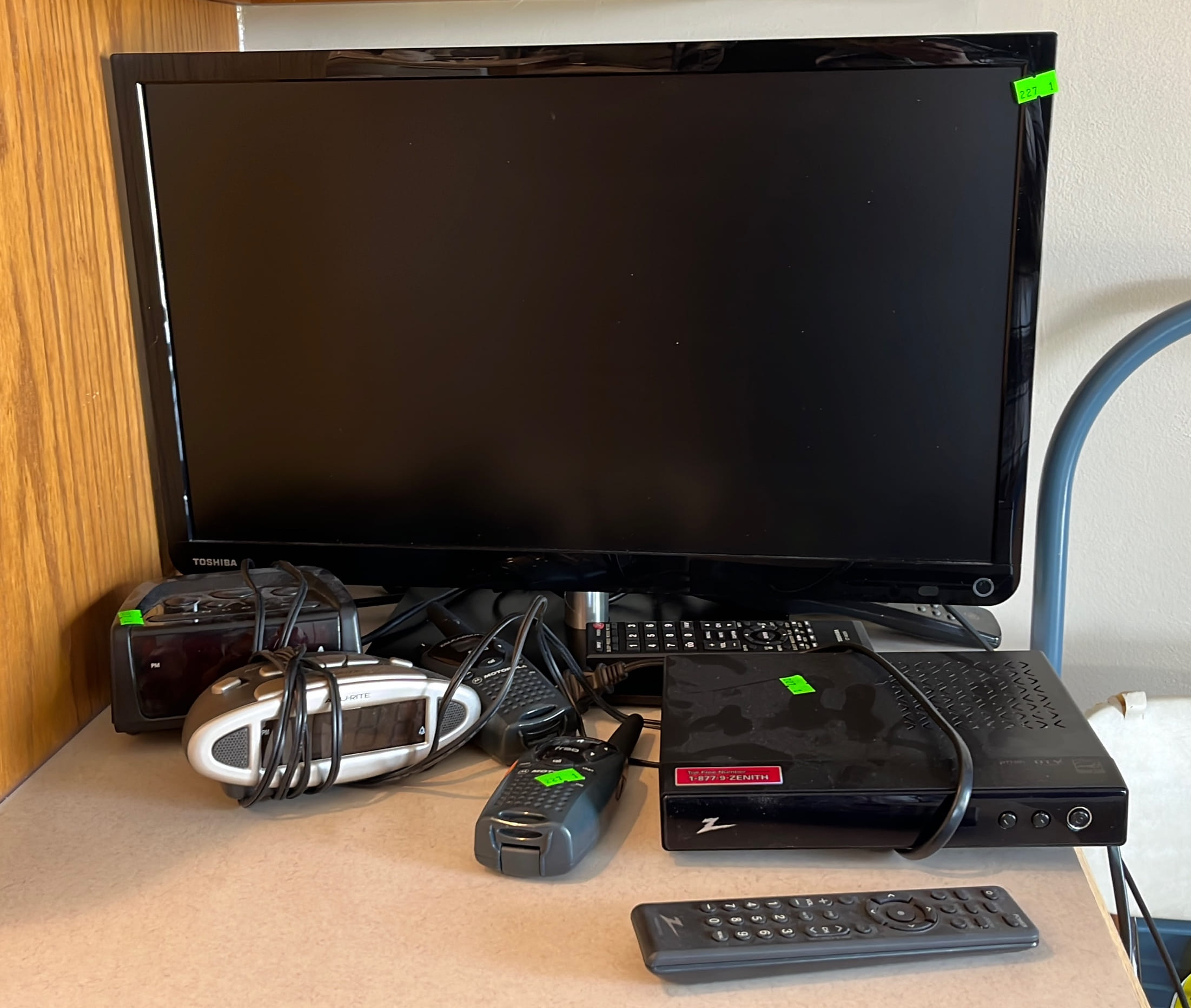 227 Toshiba 23in tv, alarm clocks, zenith digital converter box