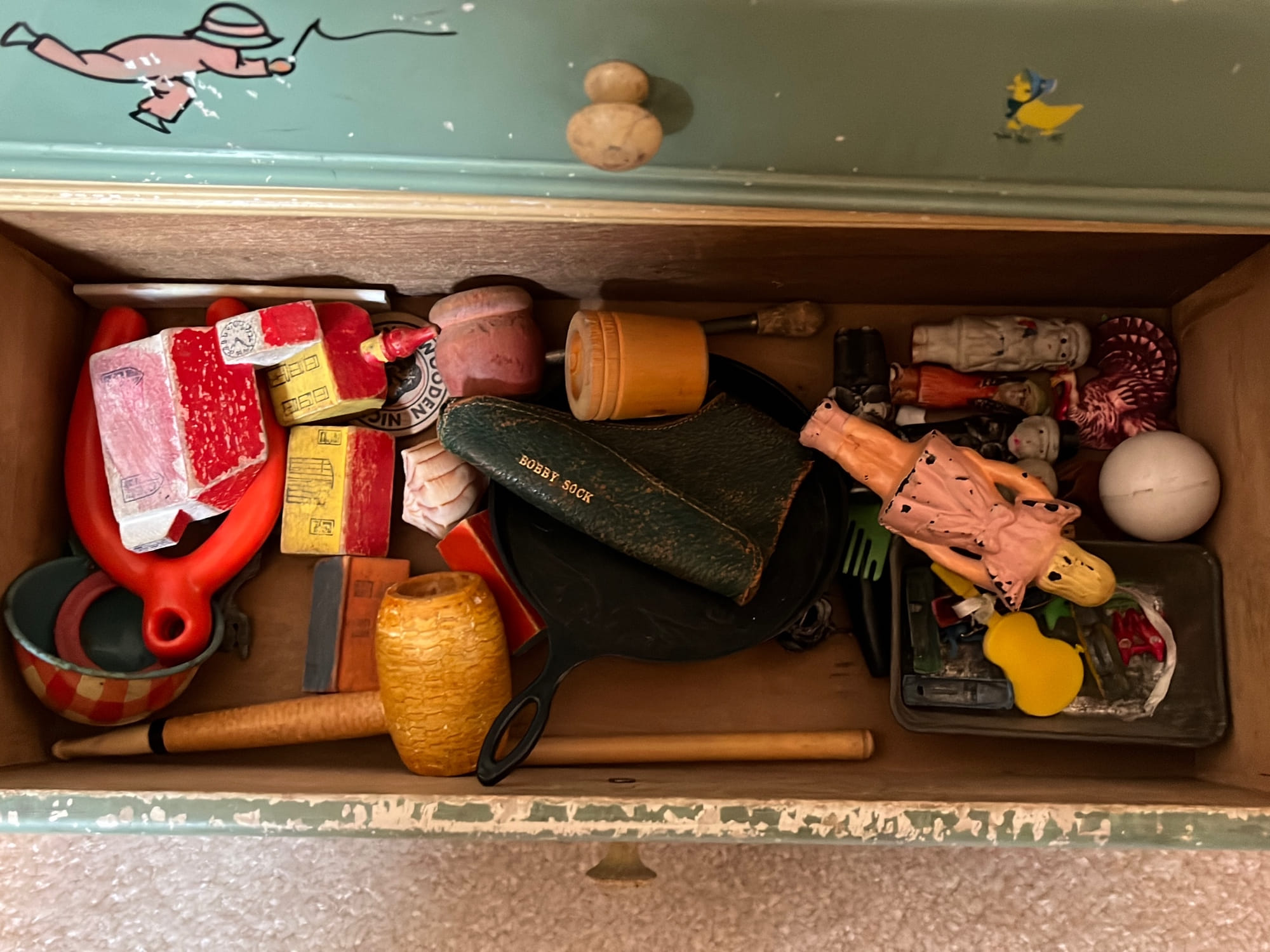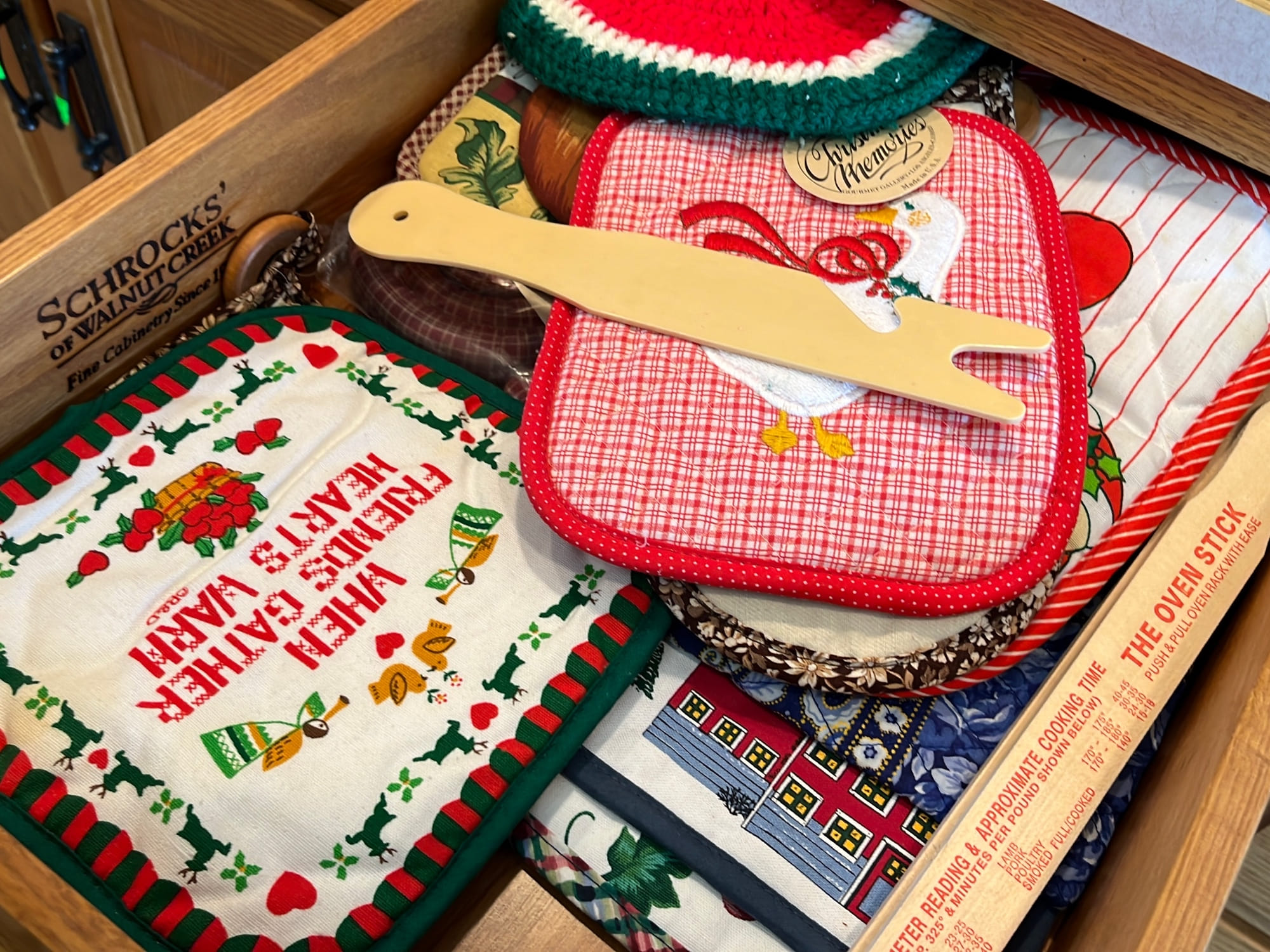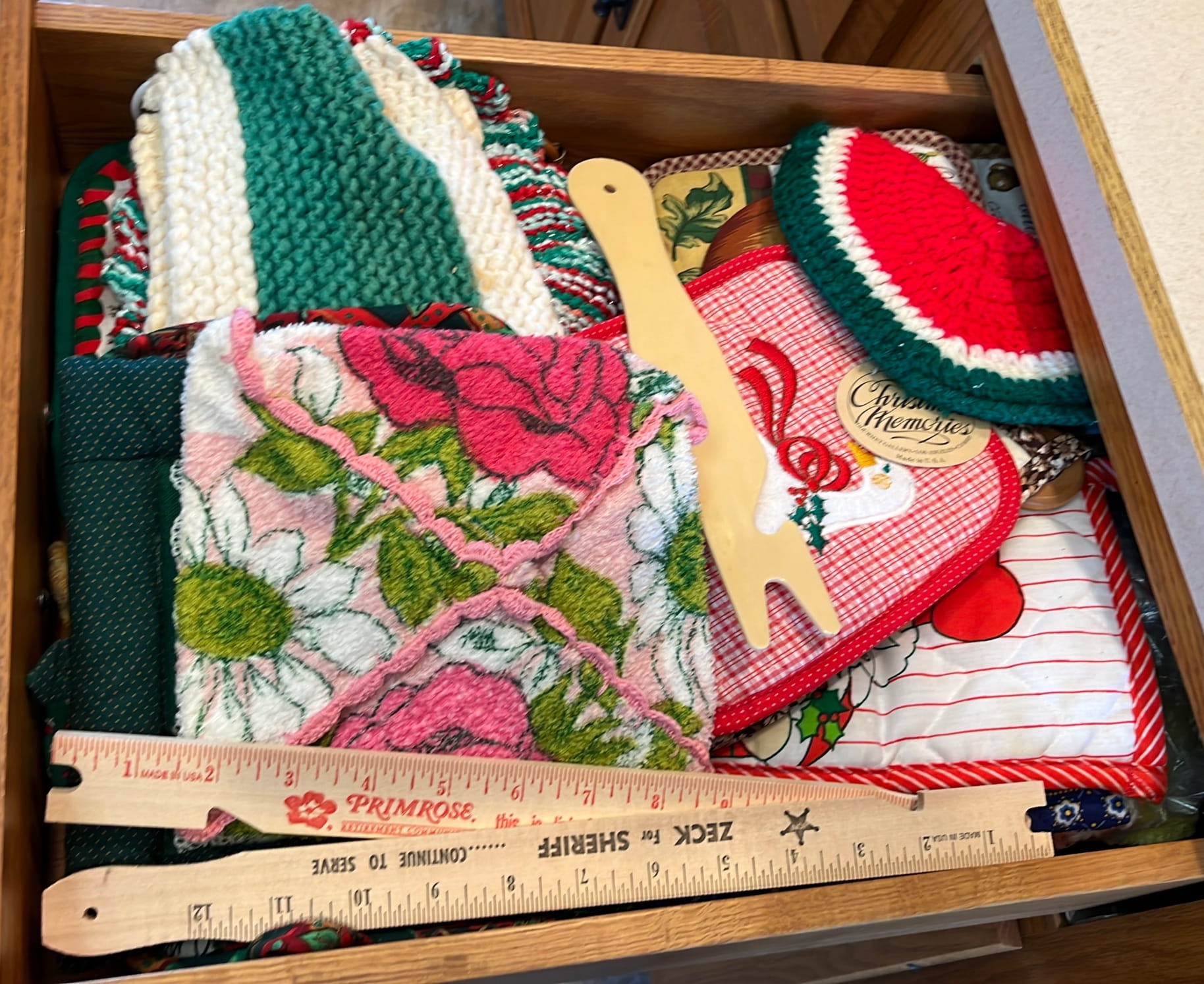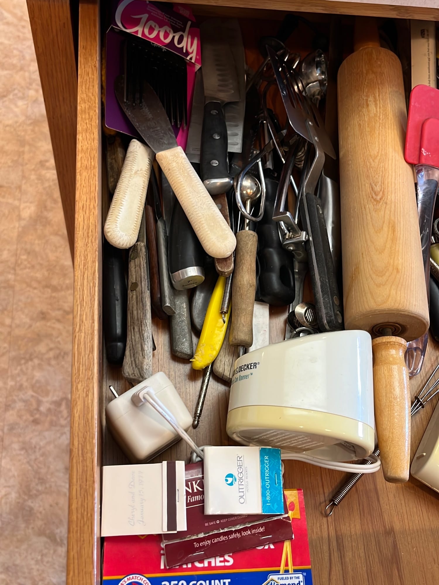 237 Kitchen utensils, can opener, rolling pin contents of drawer as shown in pictures
