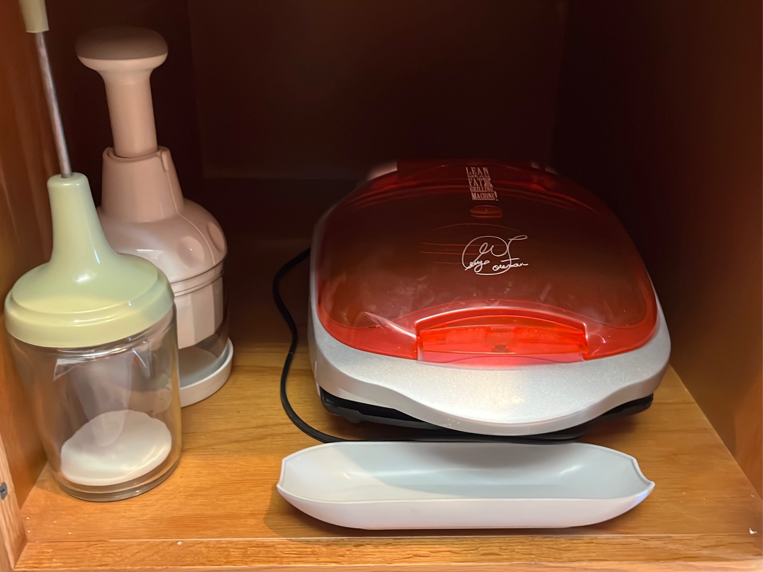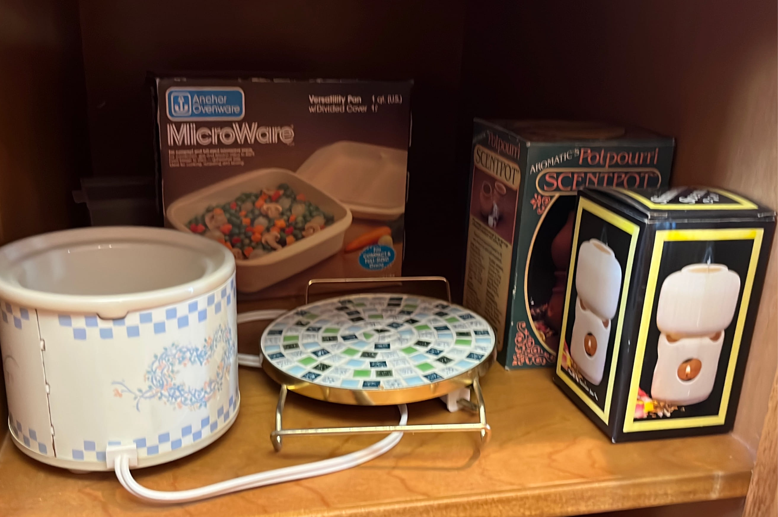 233 George foreman grill, candle warmers, trivet, microwave container set