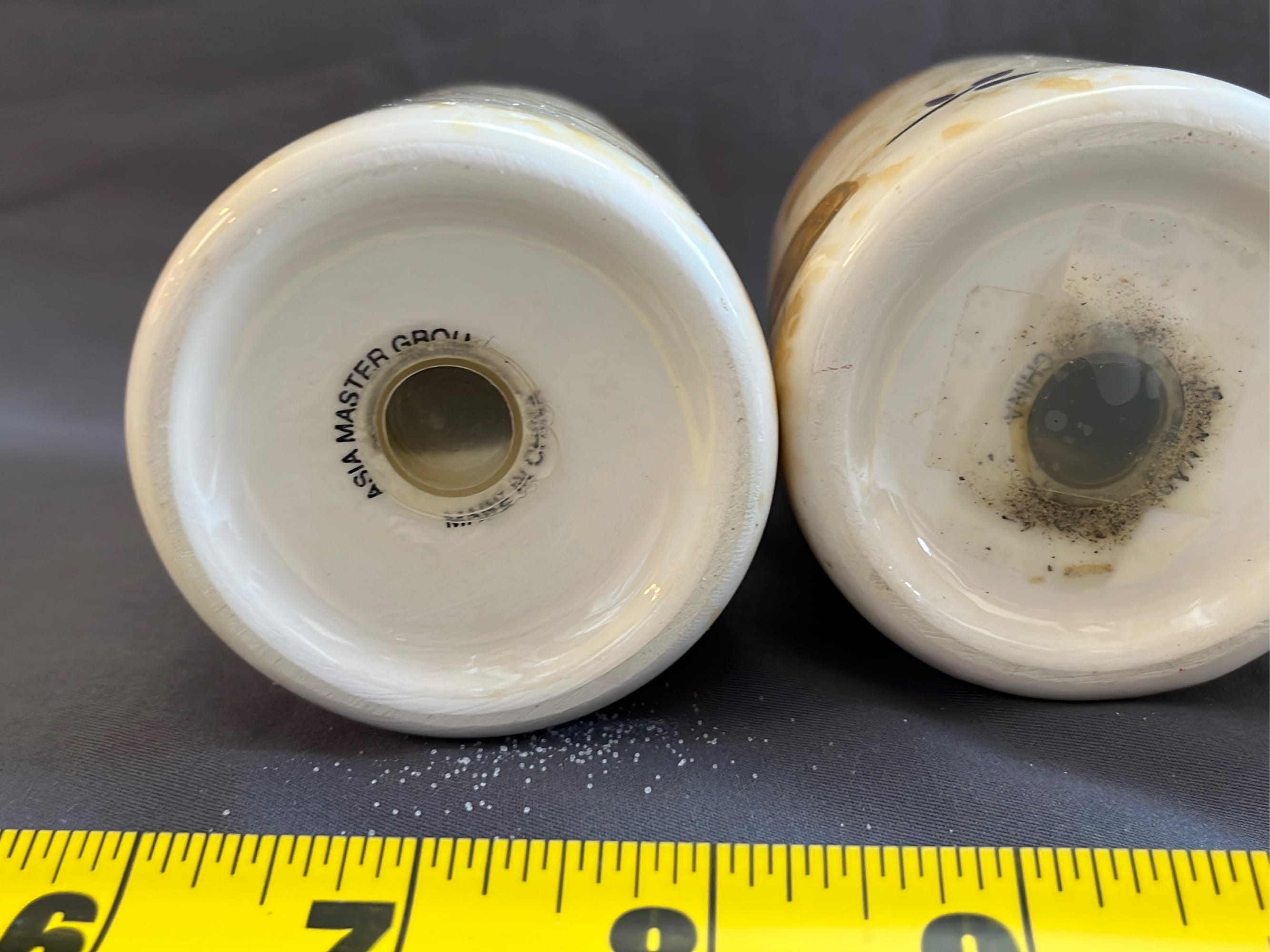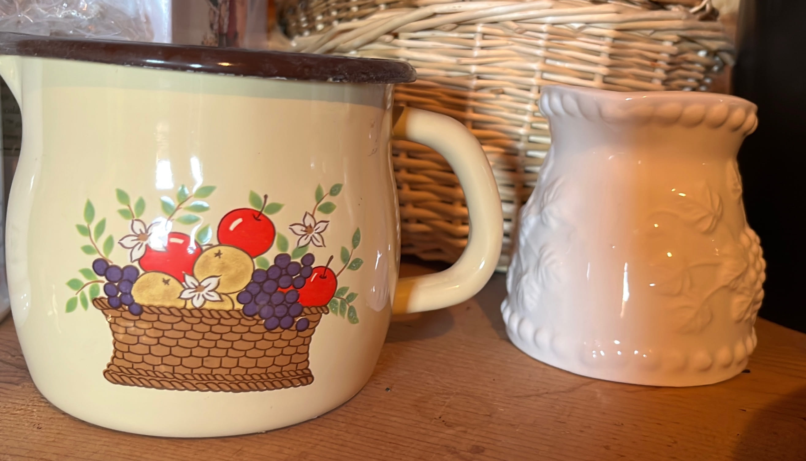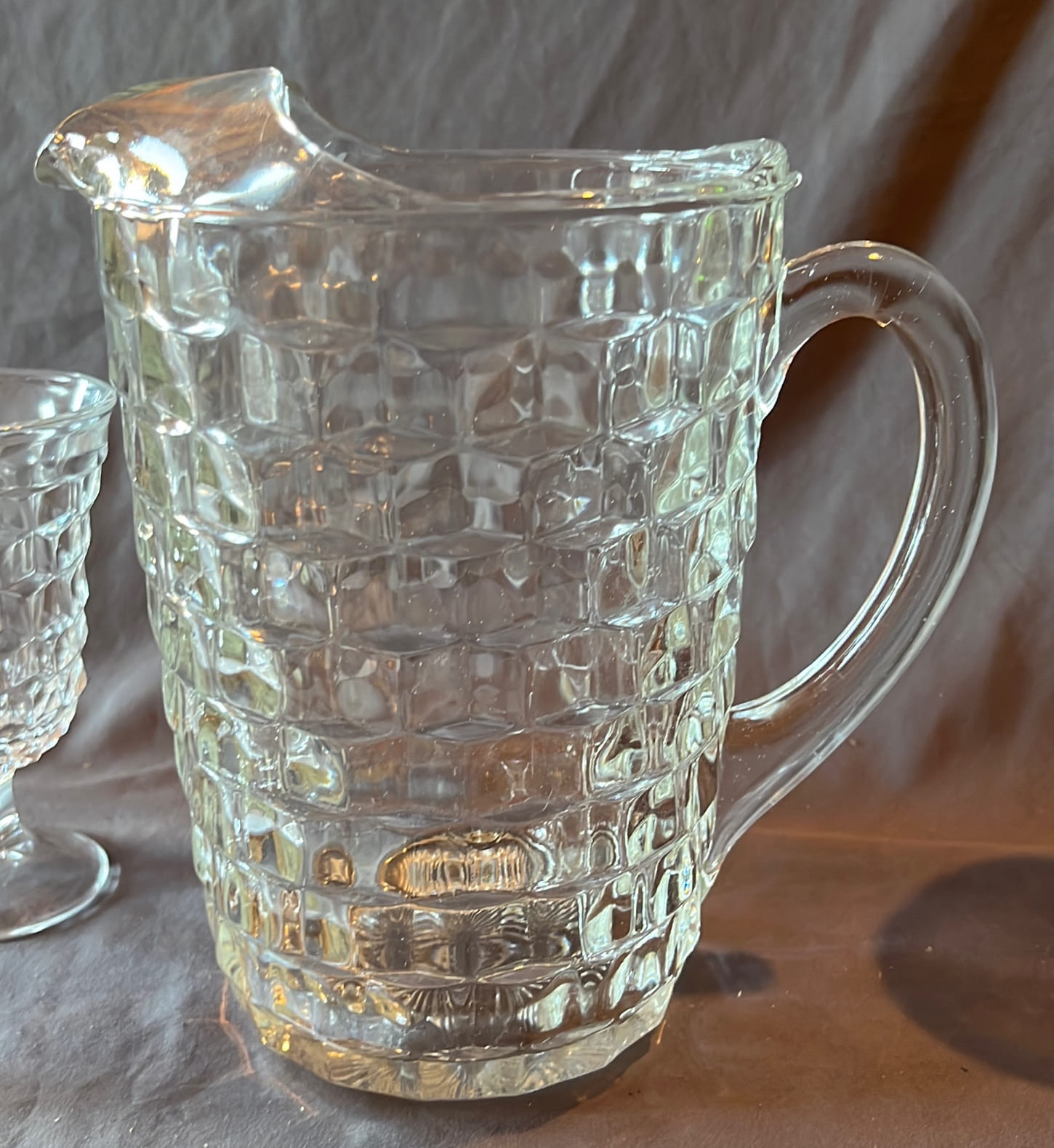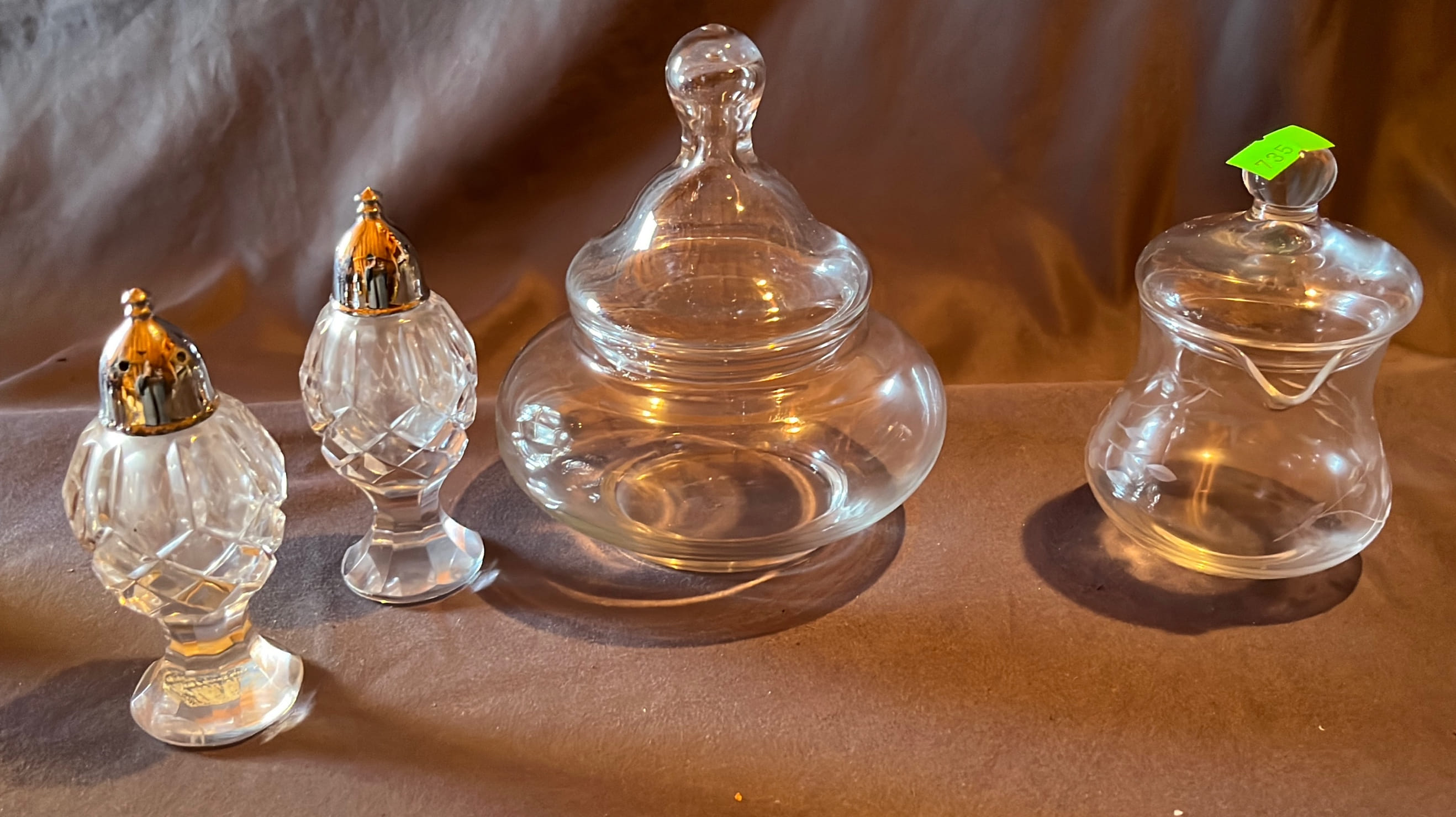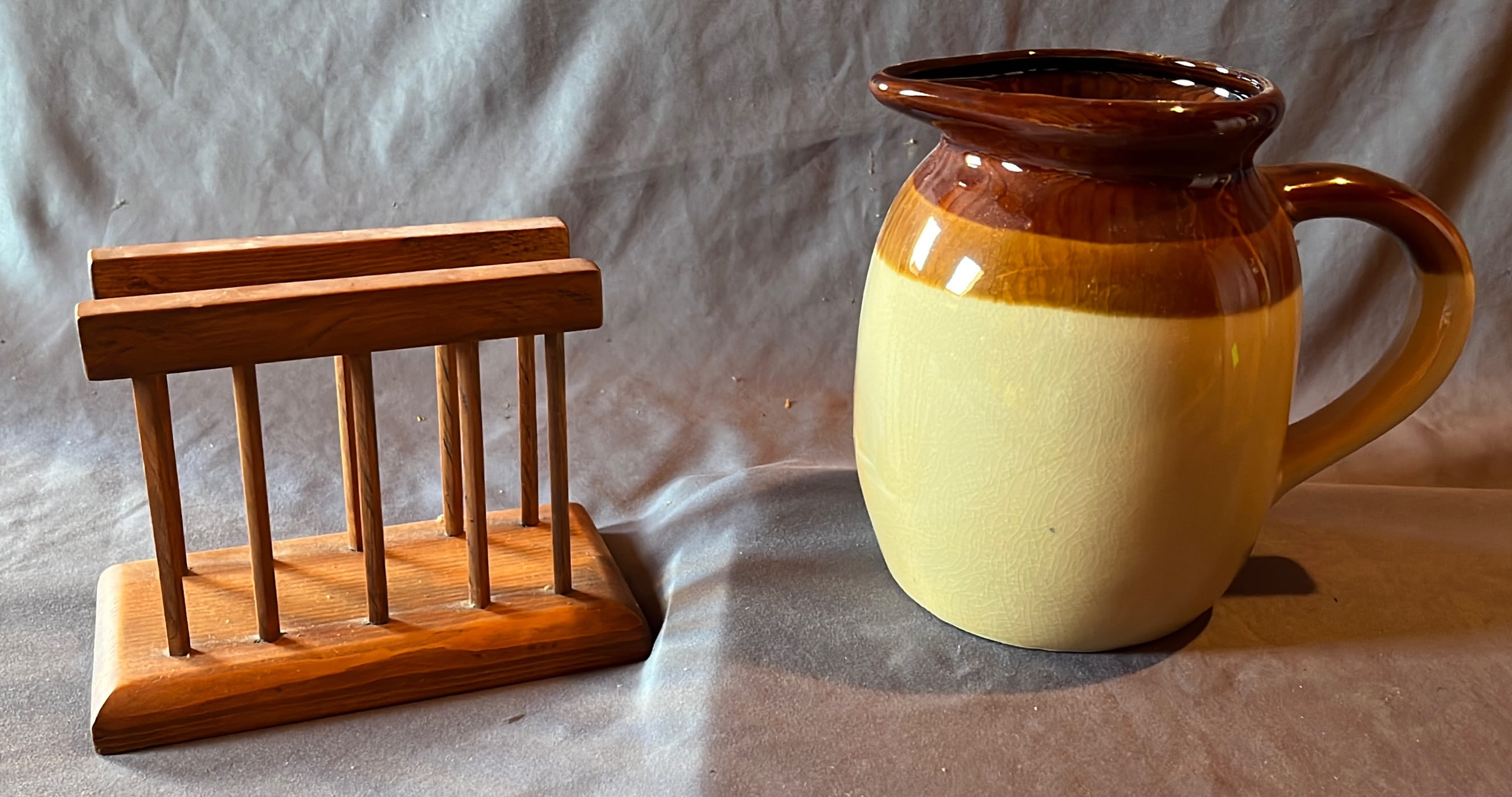 244 Longaberger pitcher 6in, shakers, pie plate 10in