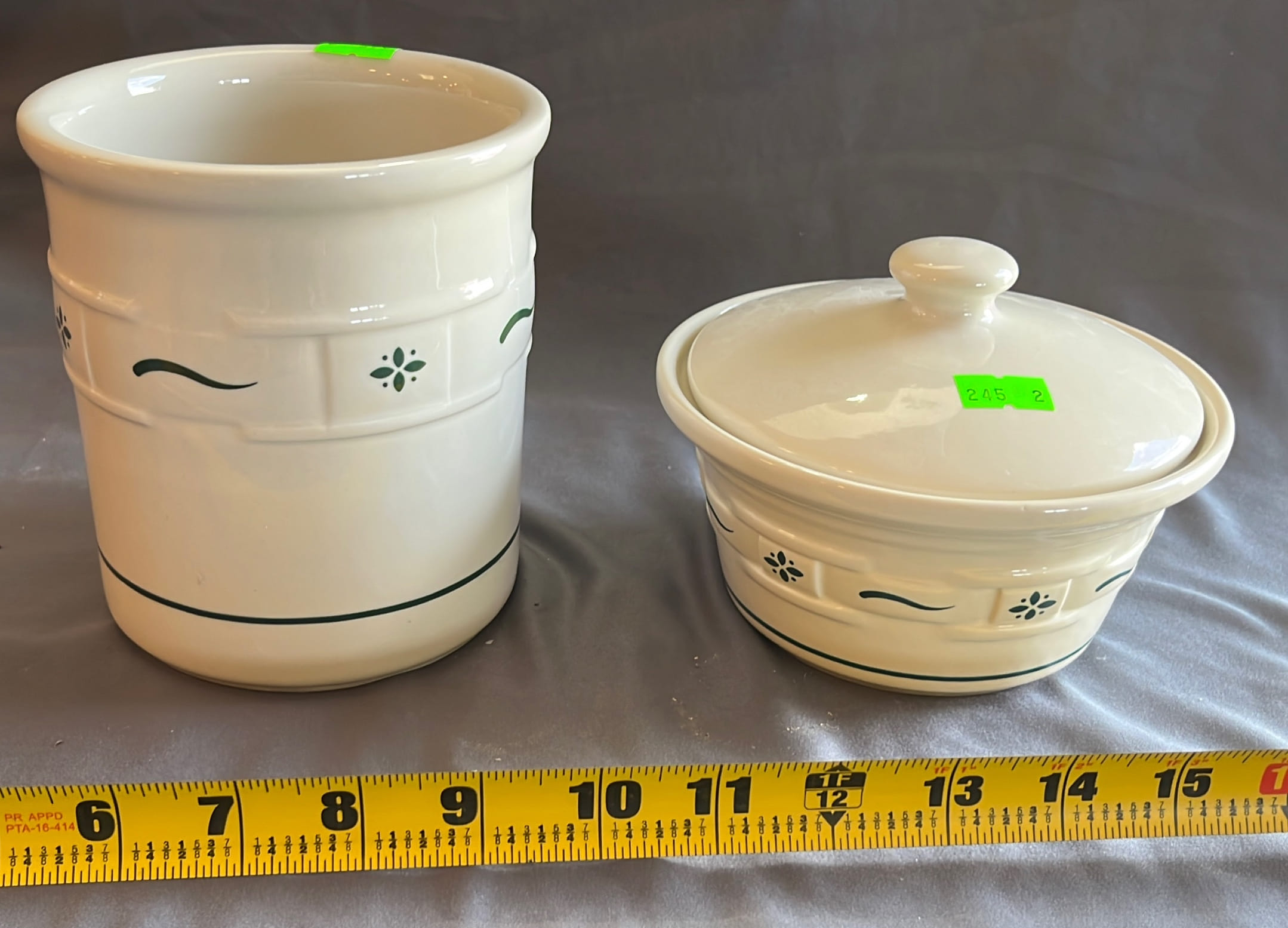 245 Longaberger cover dish 5x4.5in, utensil holder 5x5.5