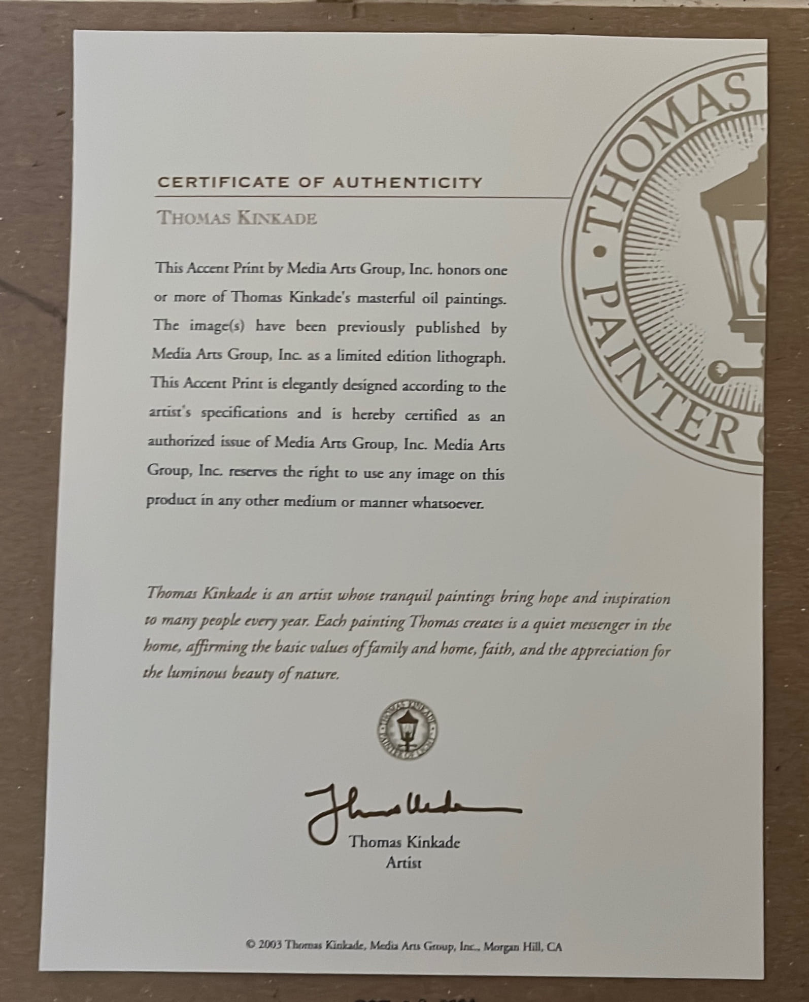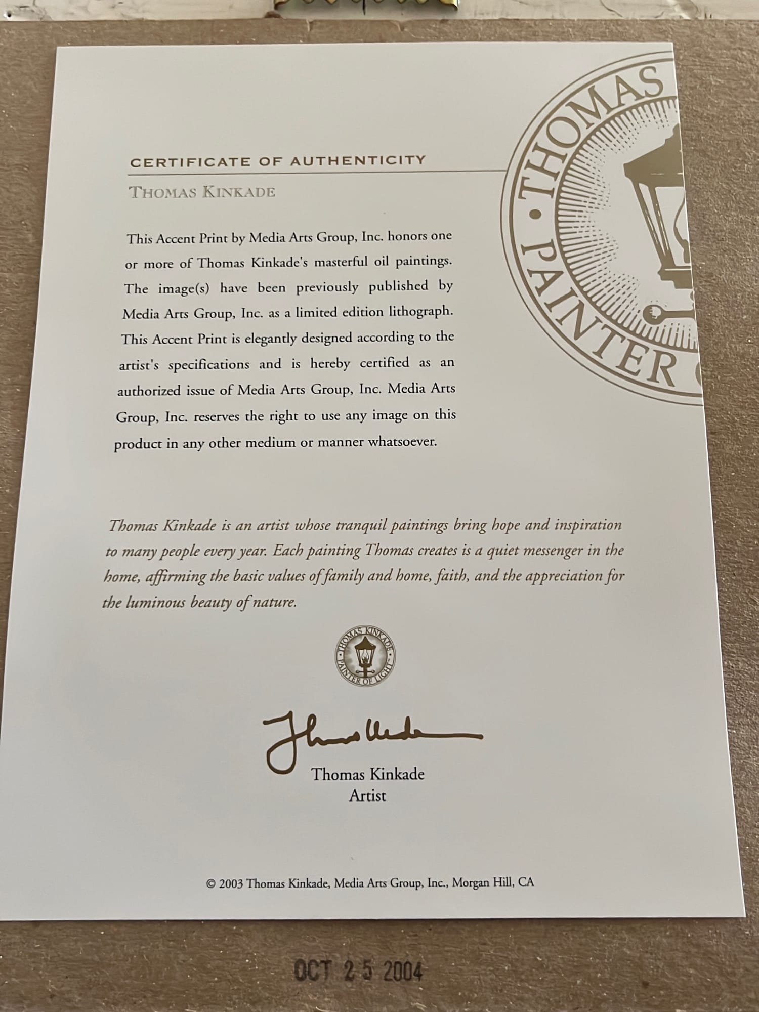 106 Thomas Kinkade "The Forest Chapel" Print 21.5"x22.5"