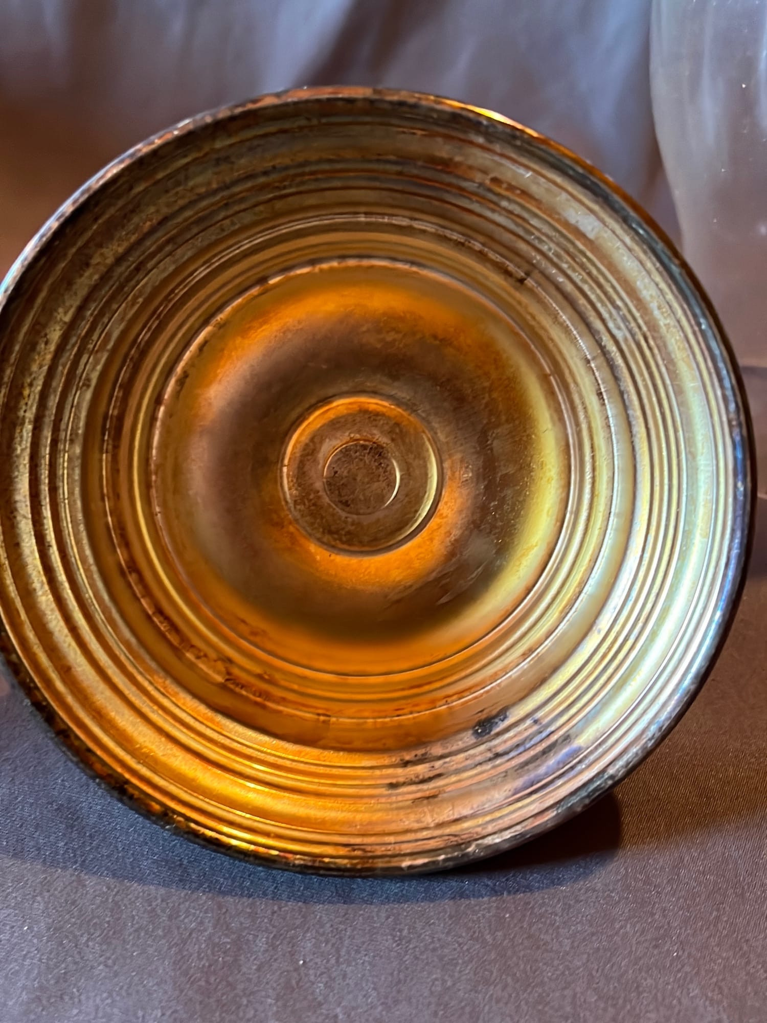 223 Greentown Chocolate Slag glass footed bowl 4.5x2in