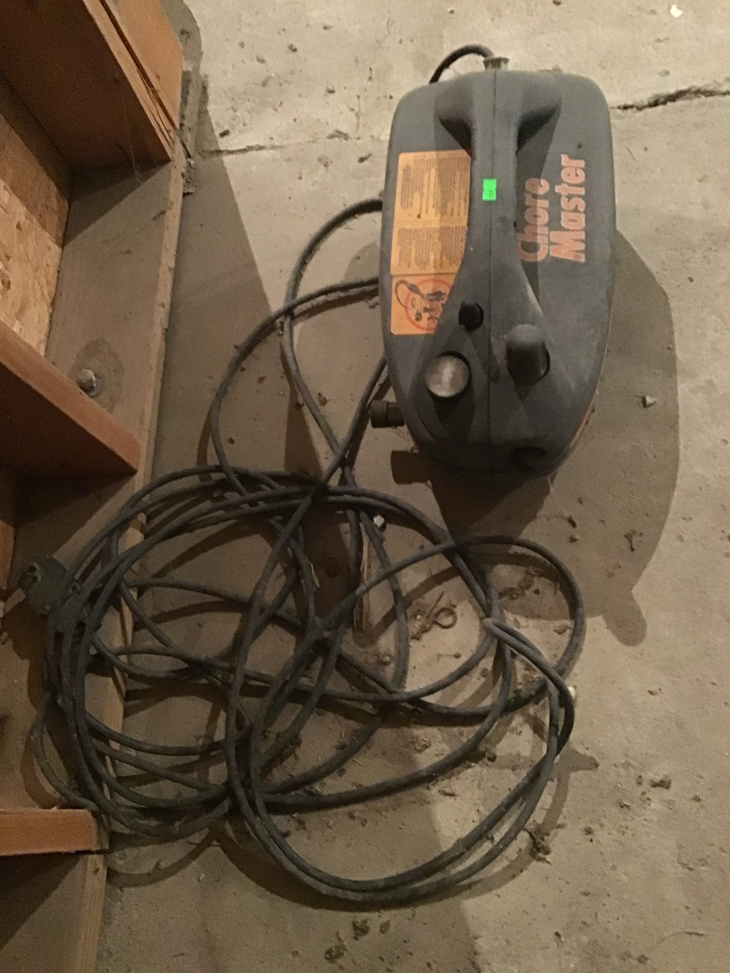 962 Electric Choremaster 1200 psi high pressure washer, no wand, untested