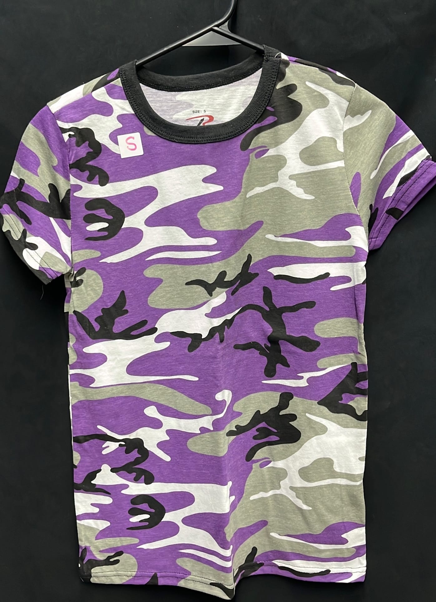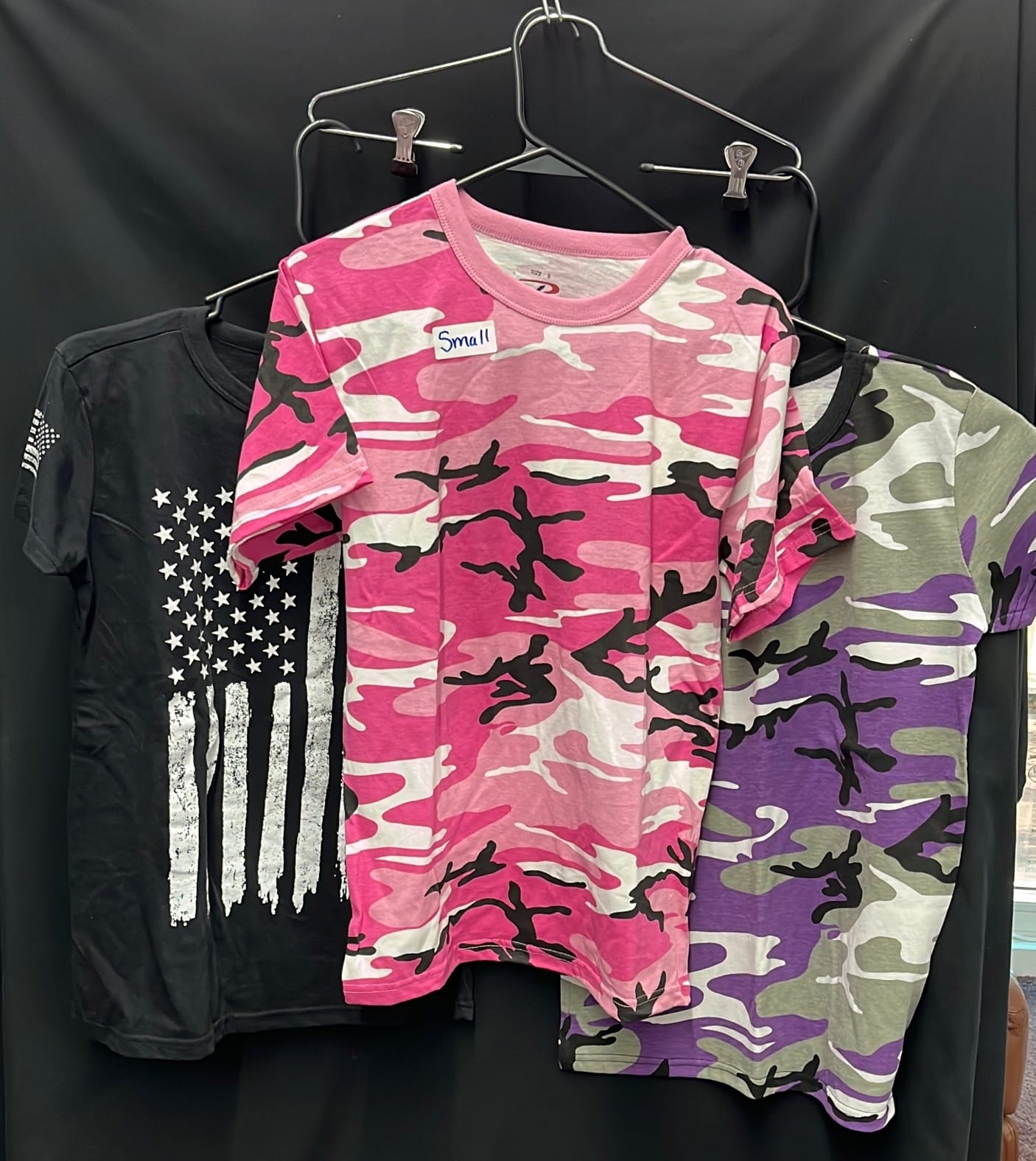 208 3 size small women's Rothco short sleeve t-shirts pink and purple camo, black patriotic