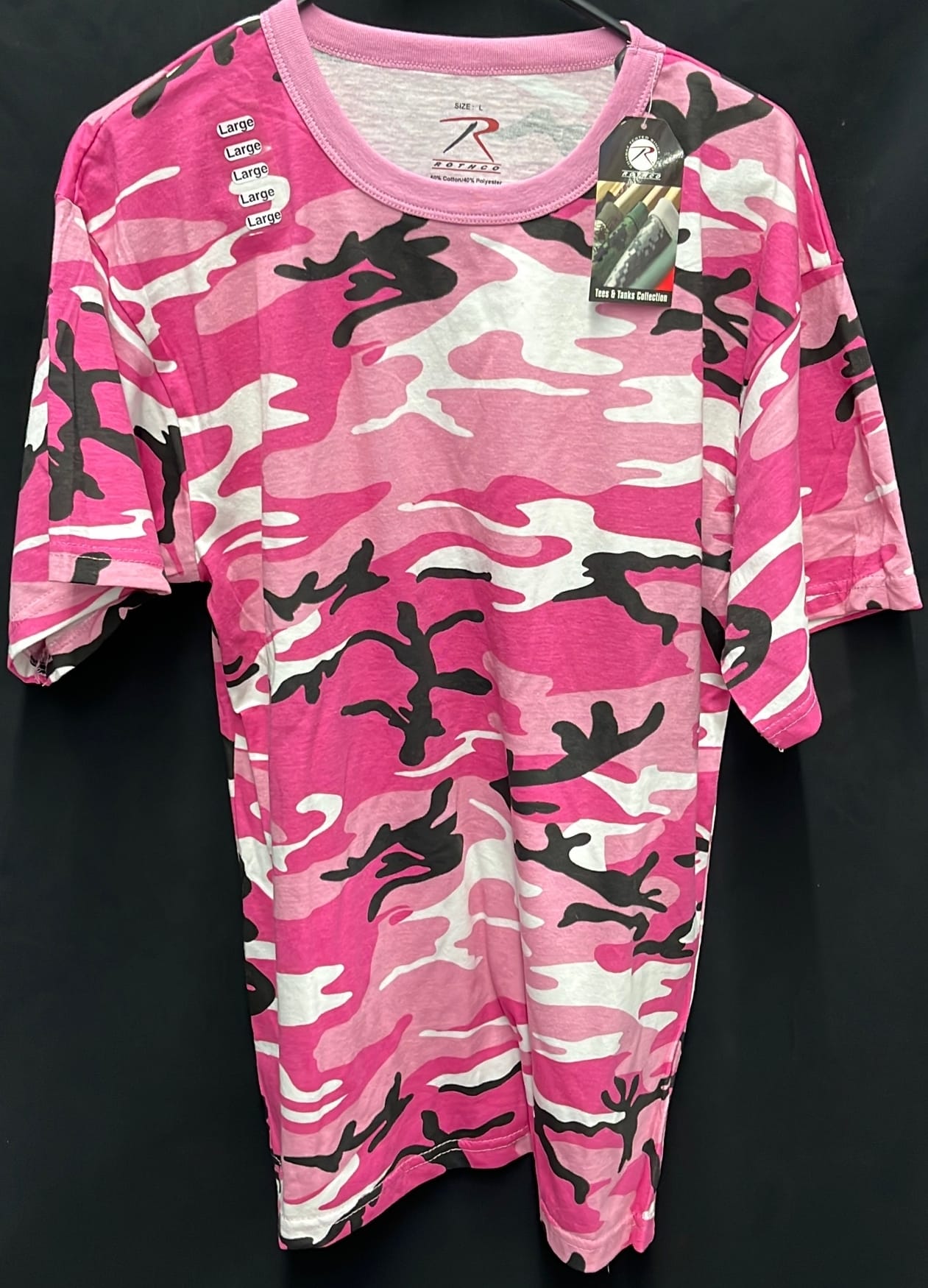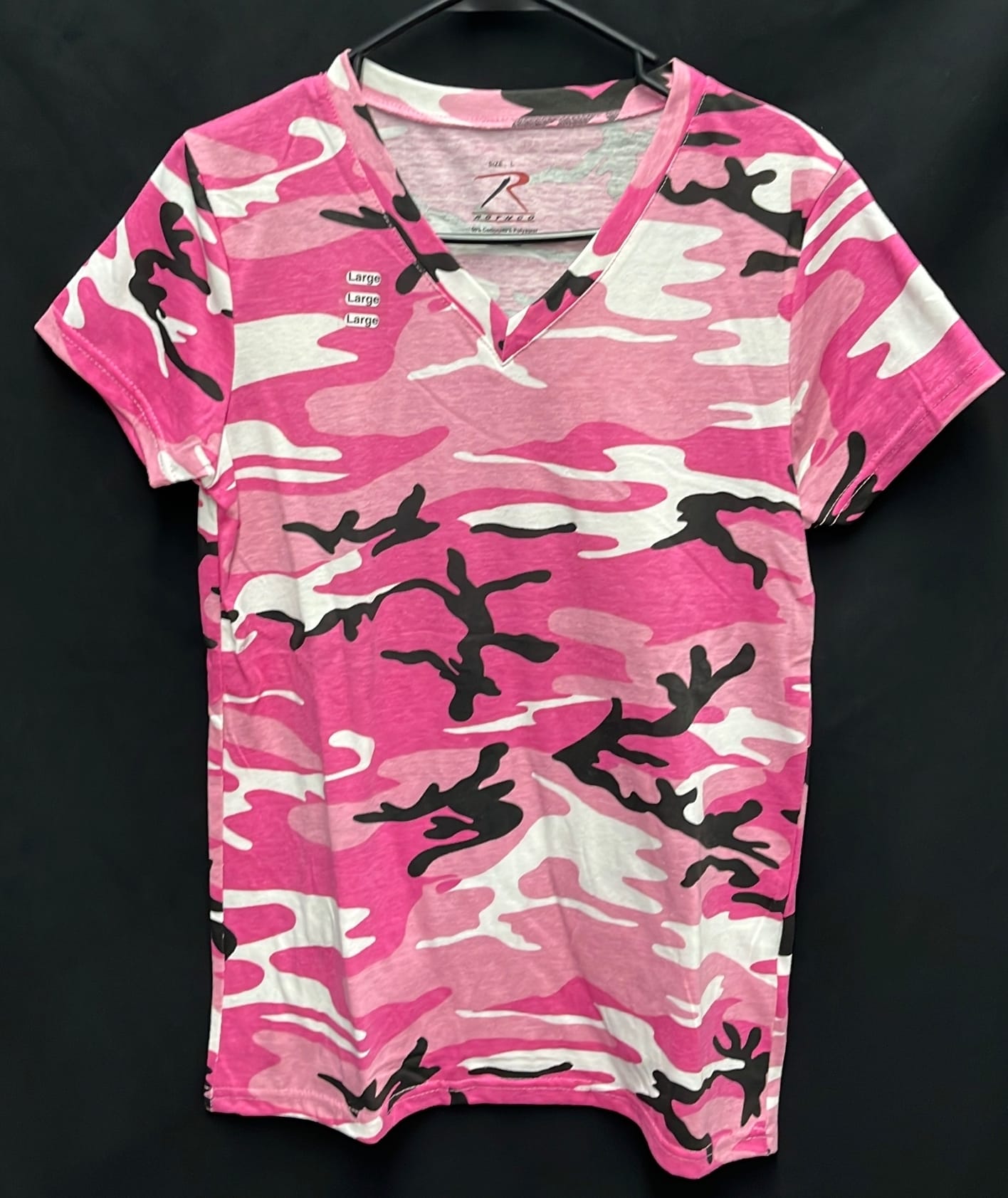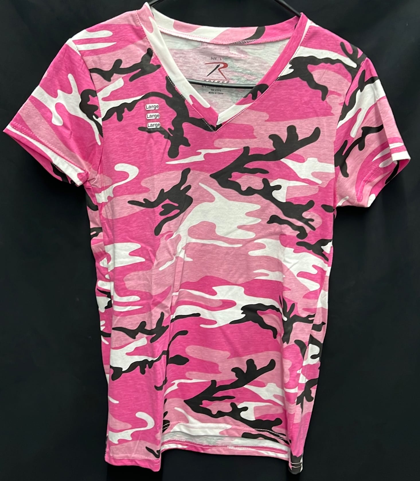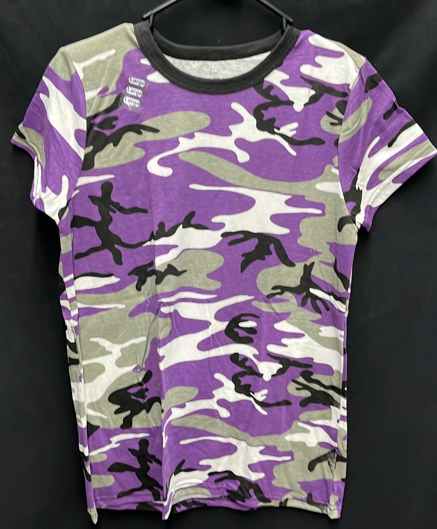 210 3 size large women's Rothco short sleeve t-shirts pink and purple camo, black patriotic