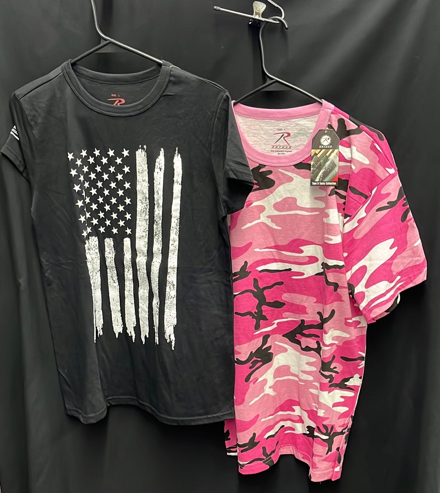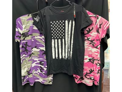 270 Large ladies Camo tank top and XL Black patriotic t-shirt Rothco