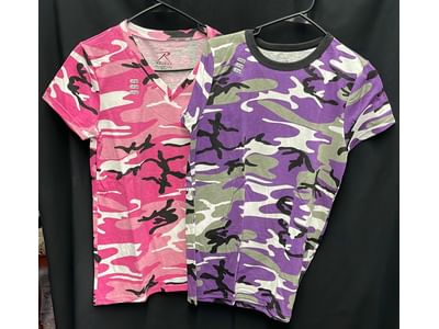 211 2 size large women's Rothco short sleeve t-shirts pink and purple camo