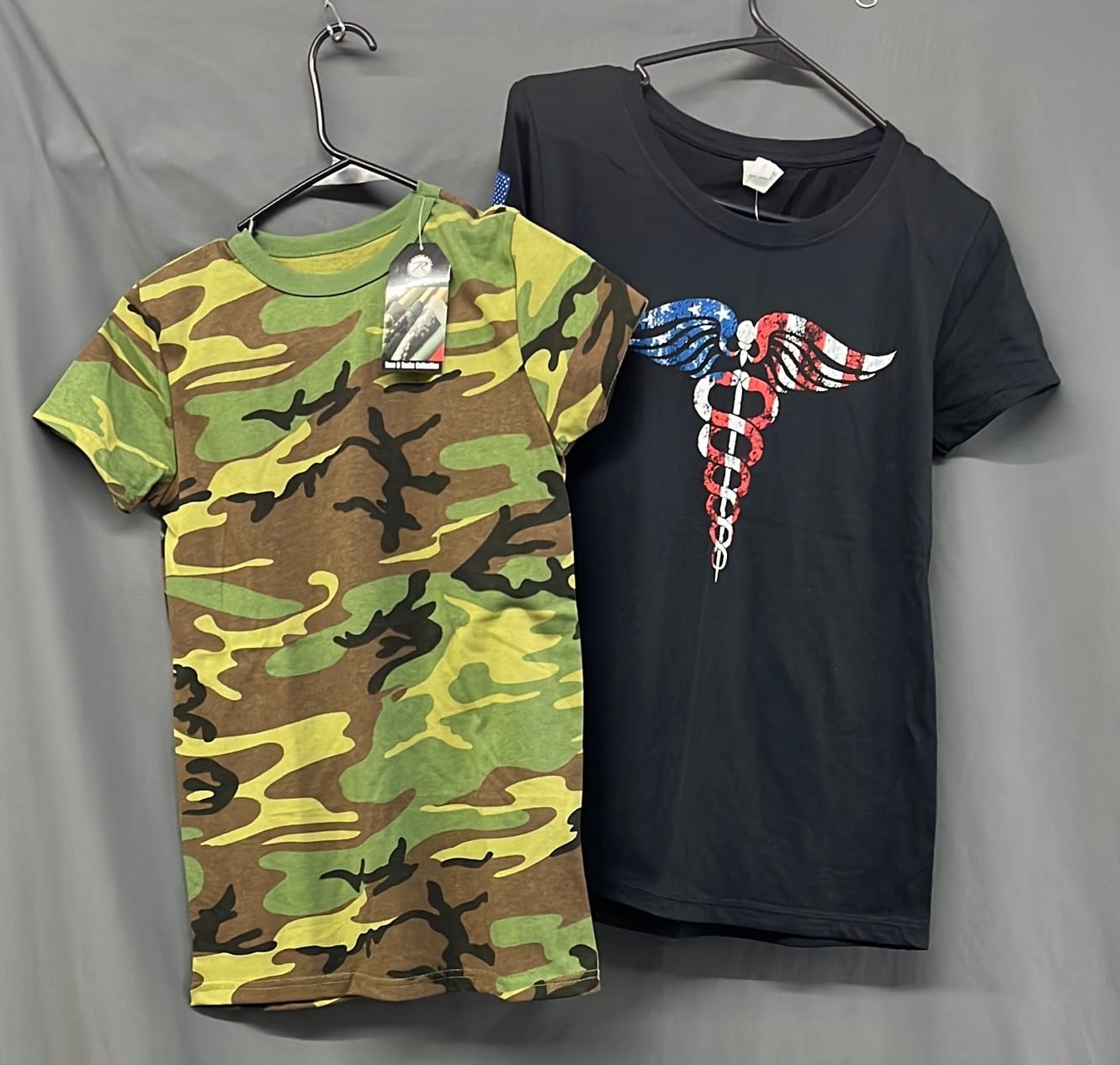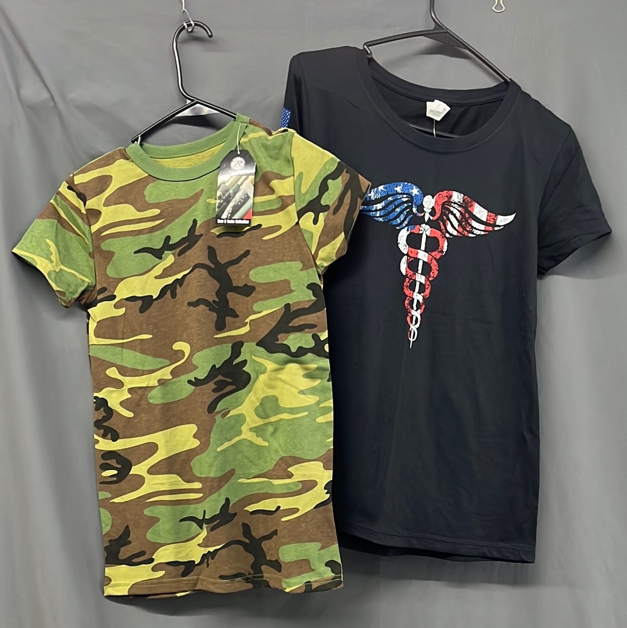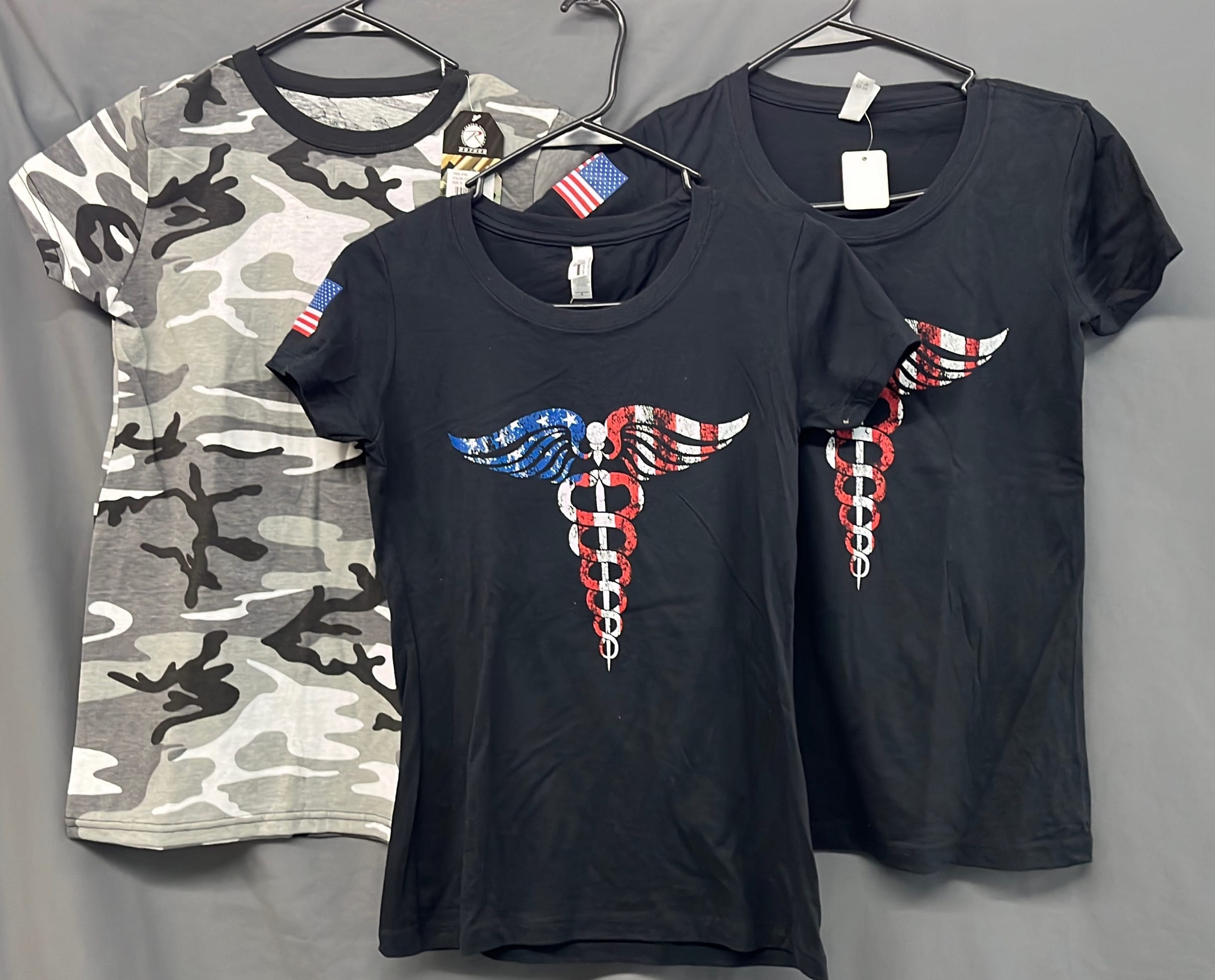 272 Ladies large patriotic medical and Rothco XS camo tshirts