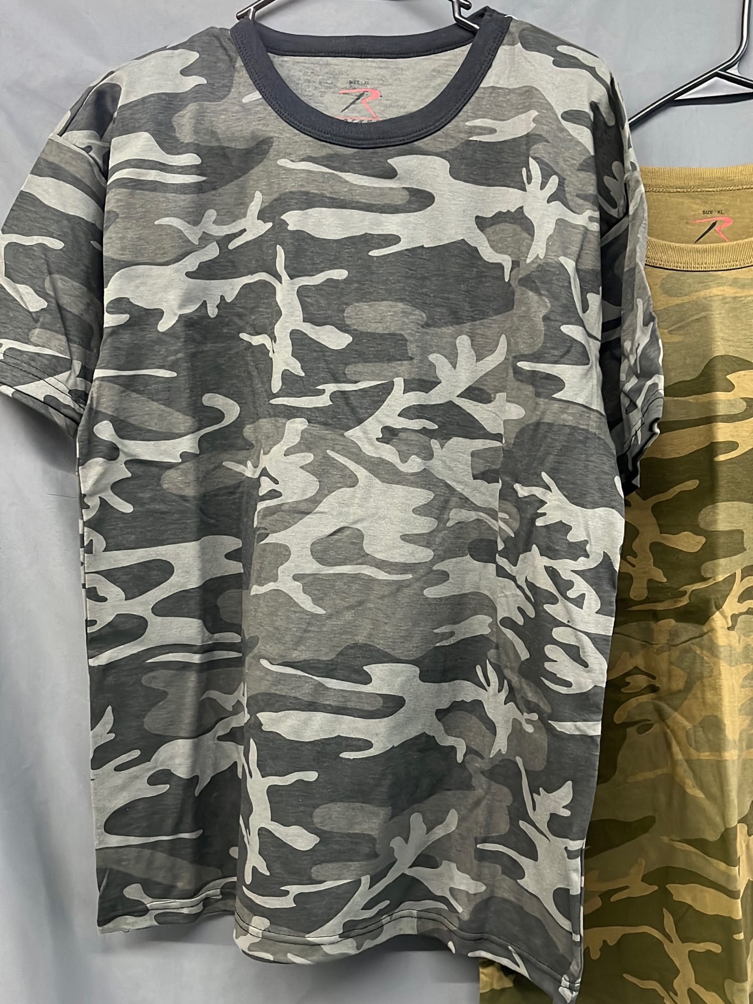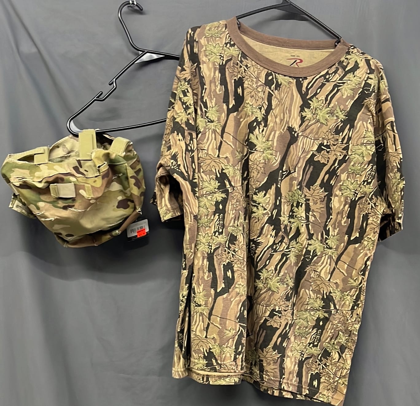 273 2 XL washed and worn camo Rothco t-shirt, L/XL camo Helmet cover