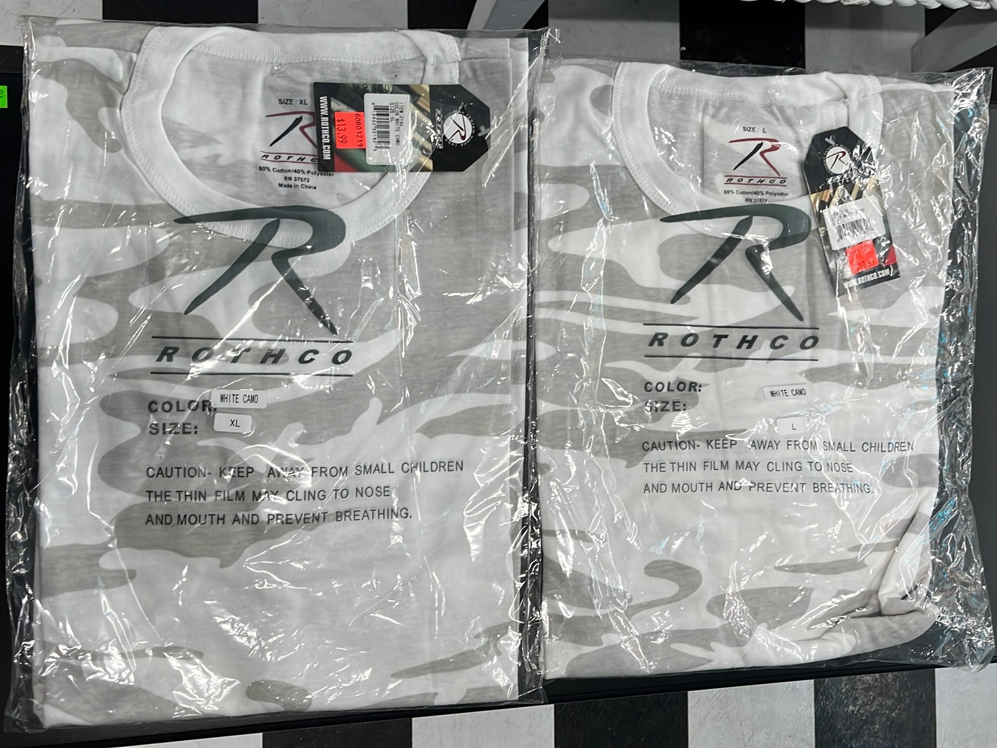262 Two camo tshirts Large and XL in original package