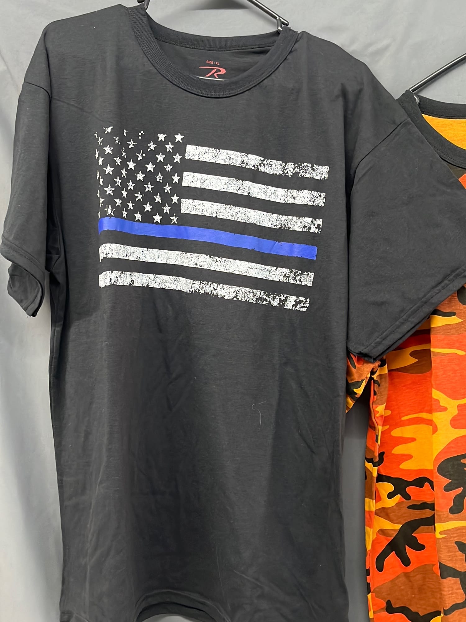 266 XL camo tshirt and XL patriotic tank