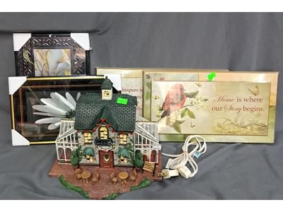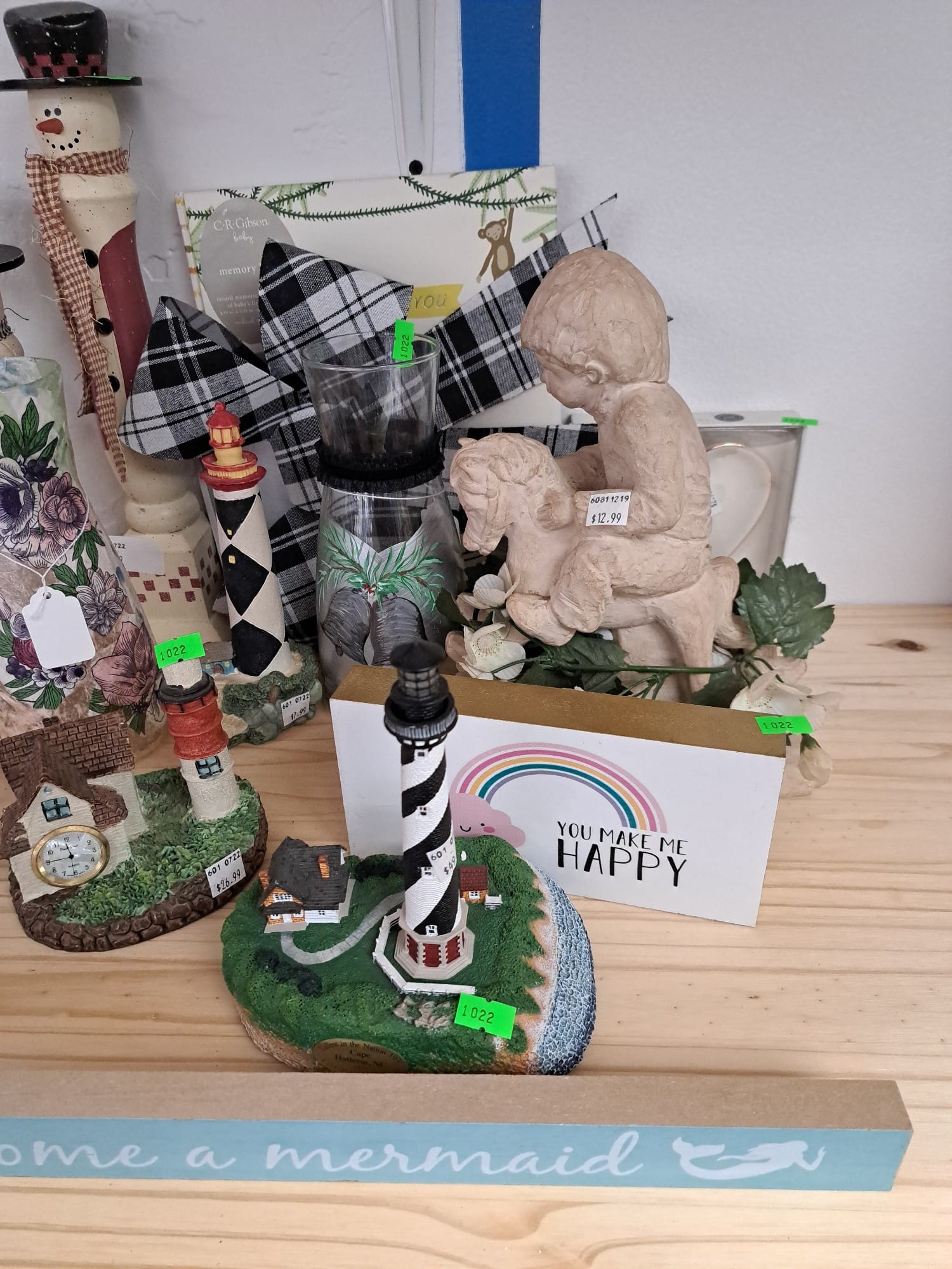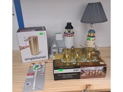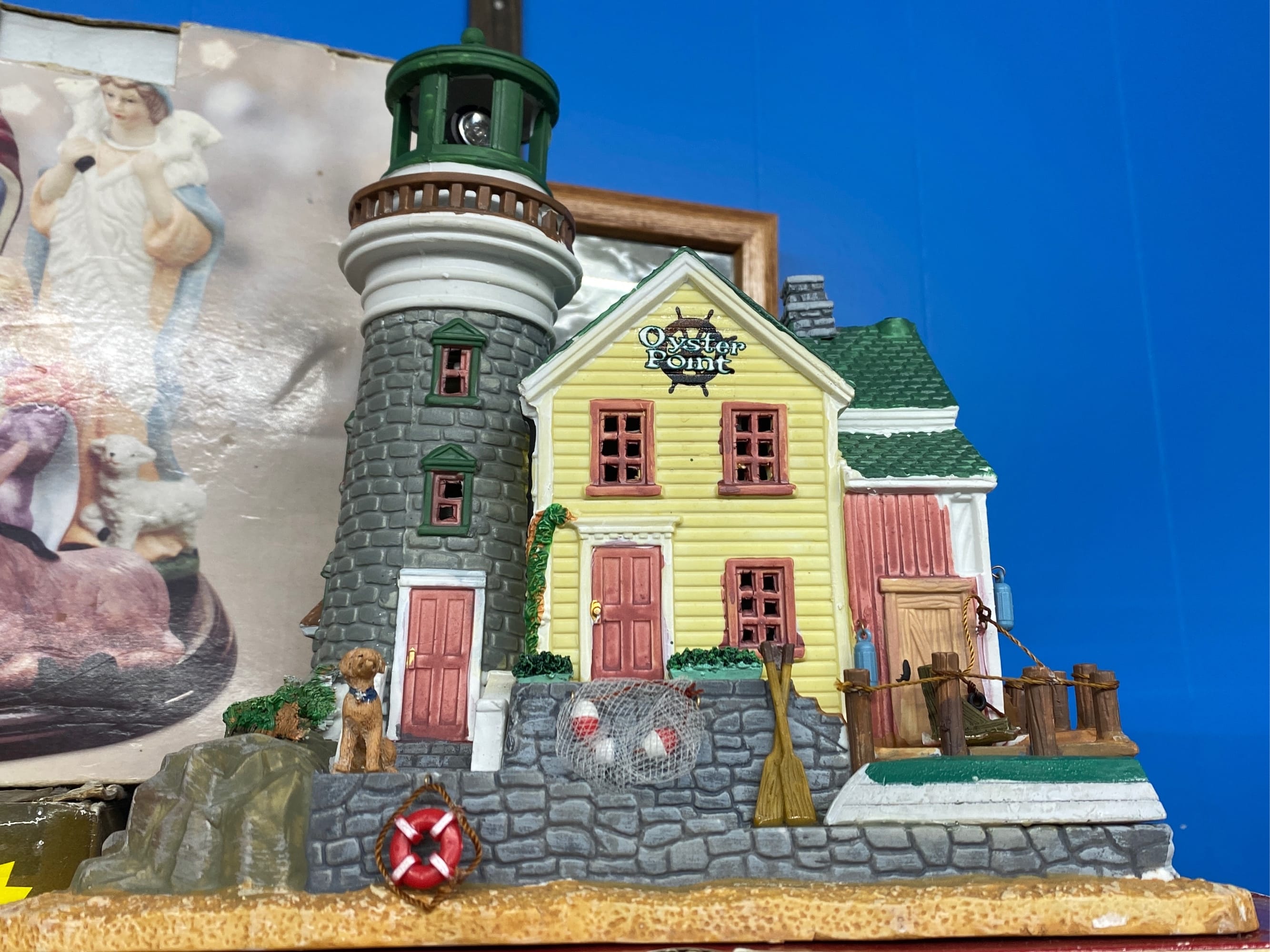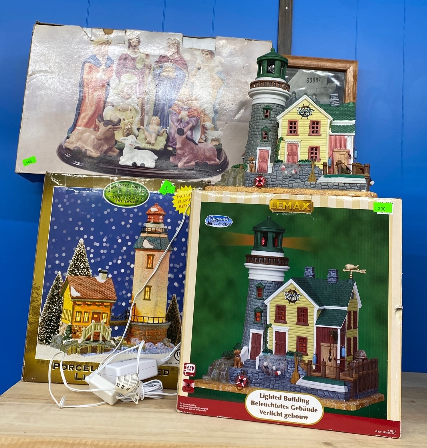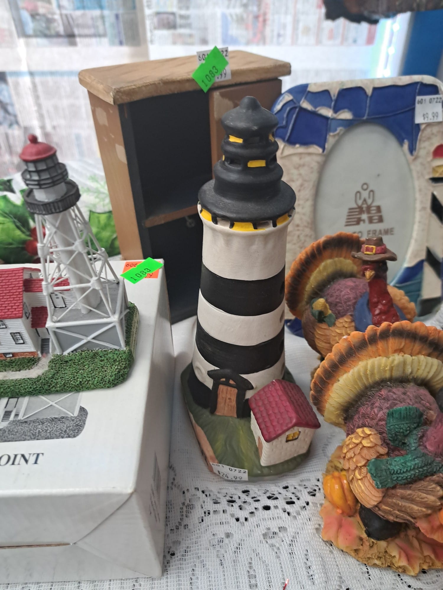 1018 Picture frame, bibs, Precious Moments figurine, bath balls, trays, craft party projects, model lighthouse beacon with transformer