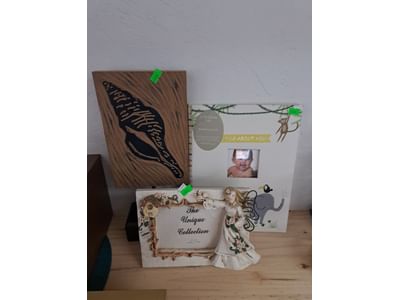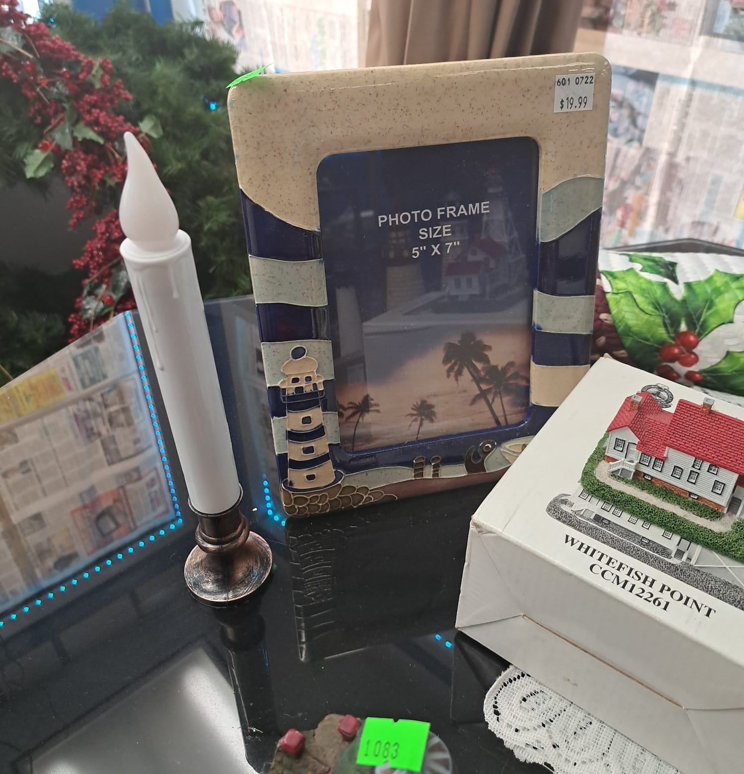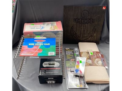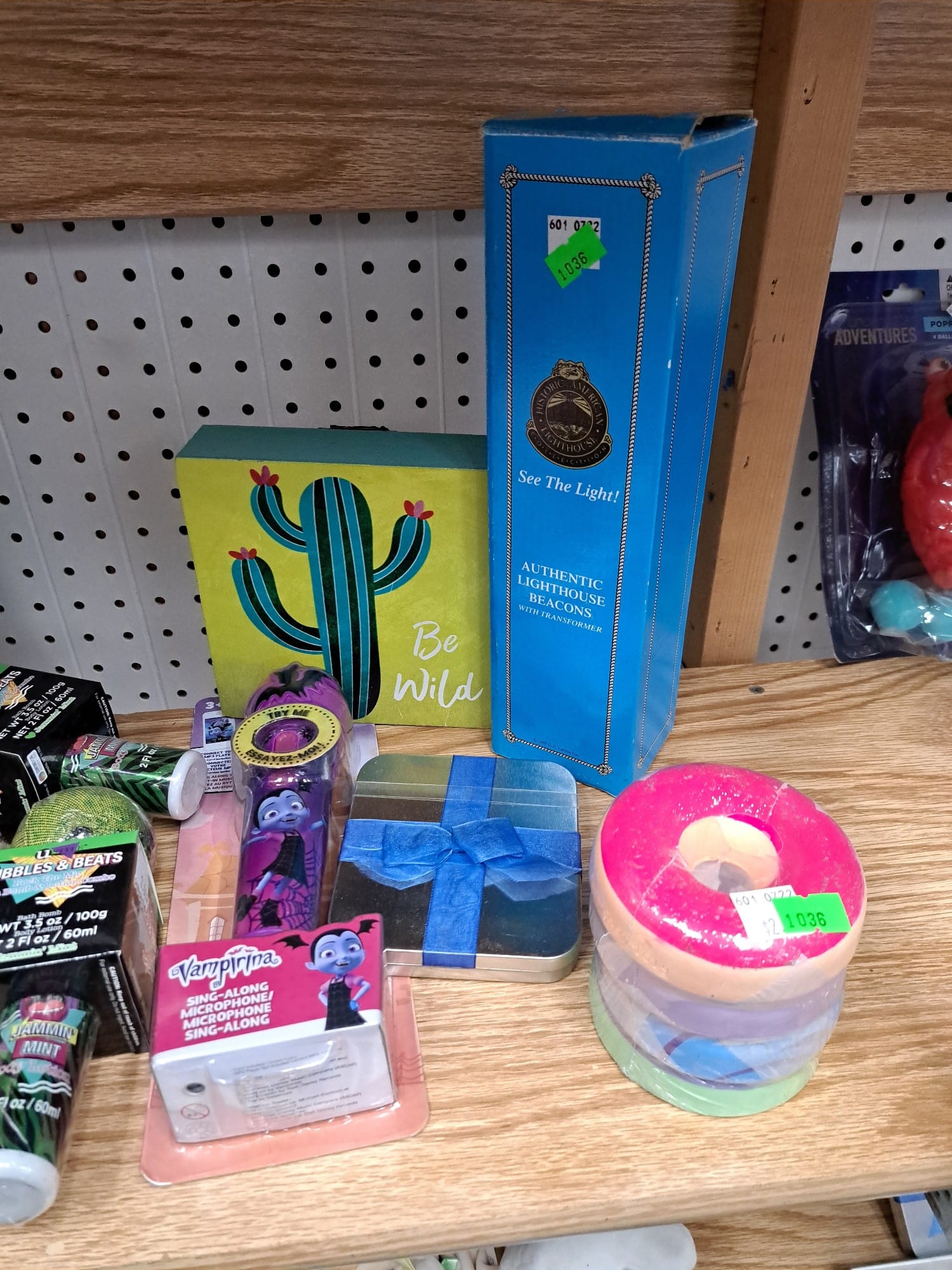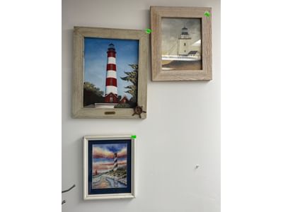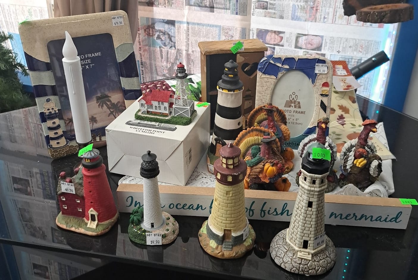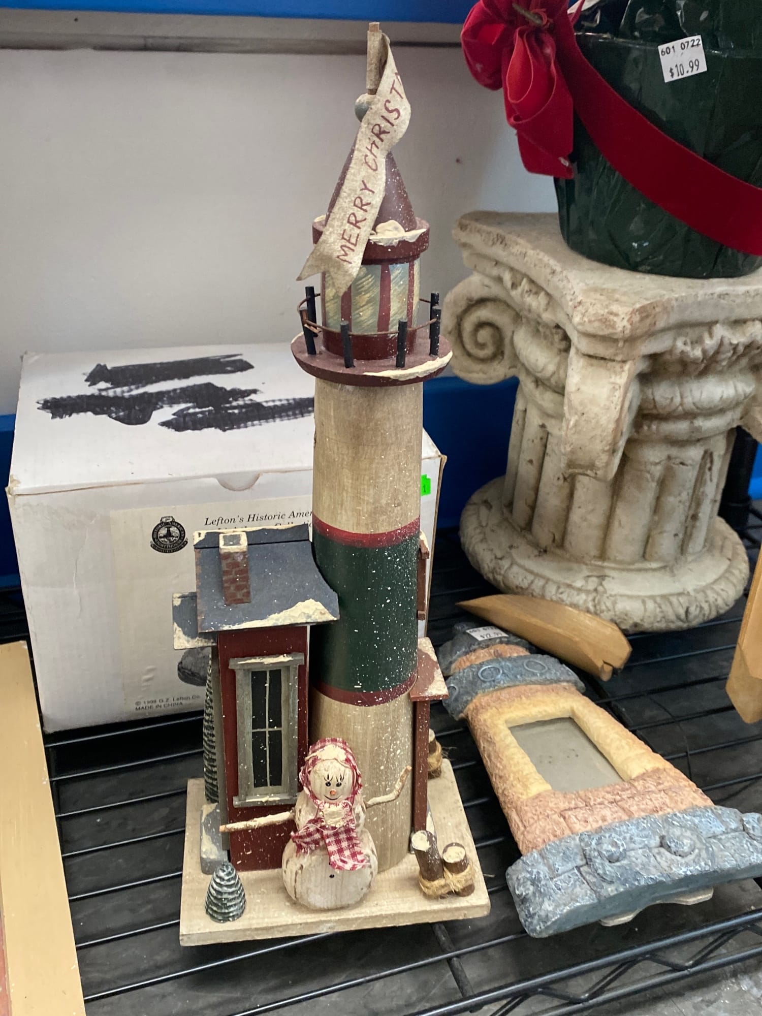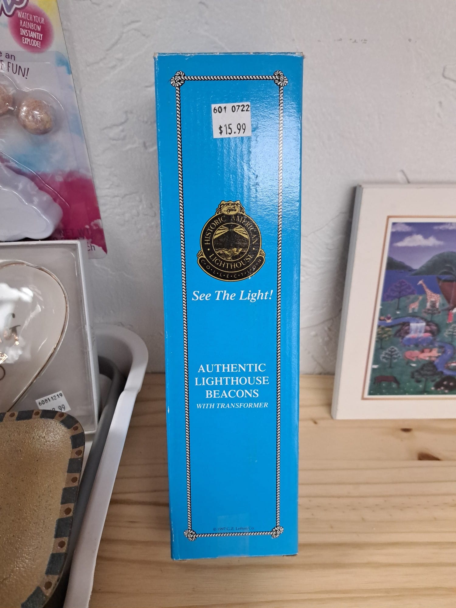 1018 Picture frame, bibs, Precious Moments figurine, bath balls, trays, craft party projects, model lighthouse beacon with transformer