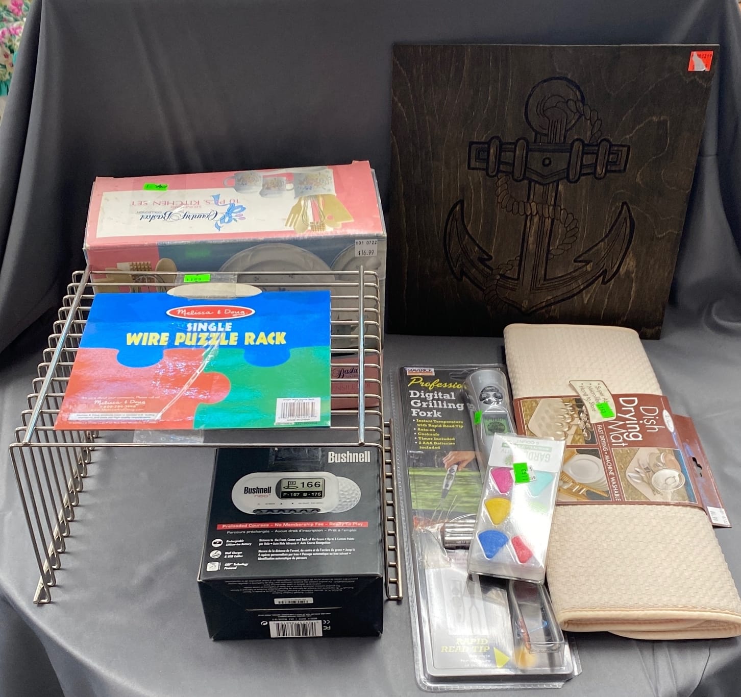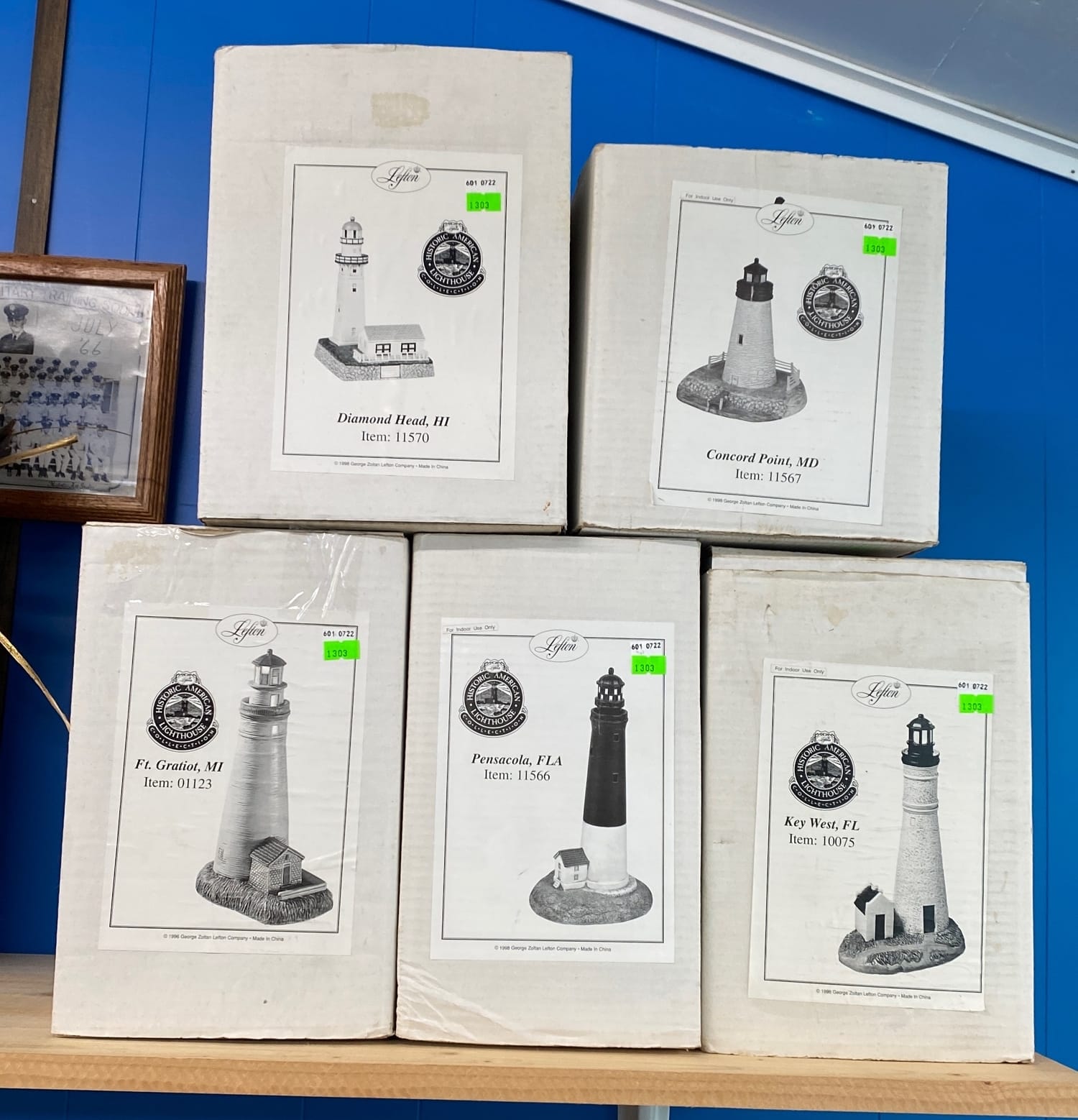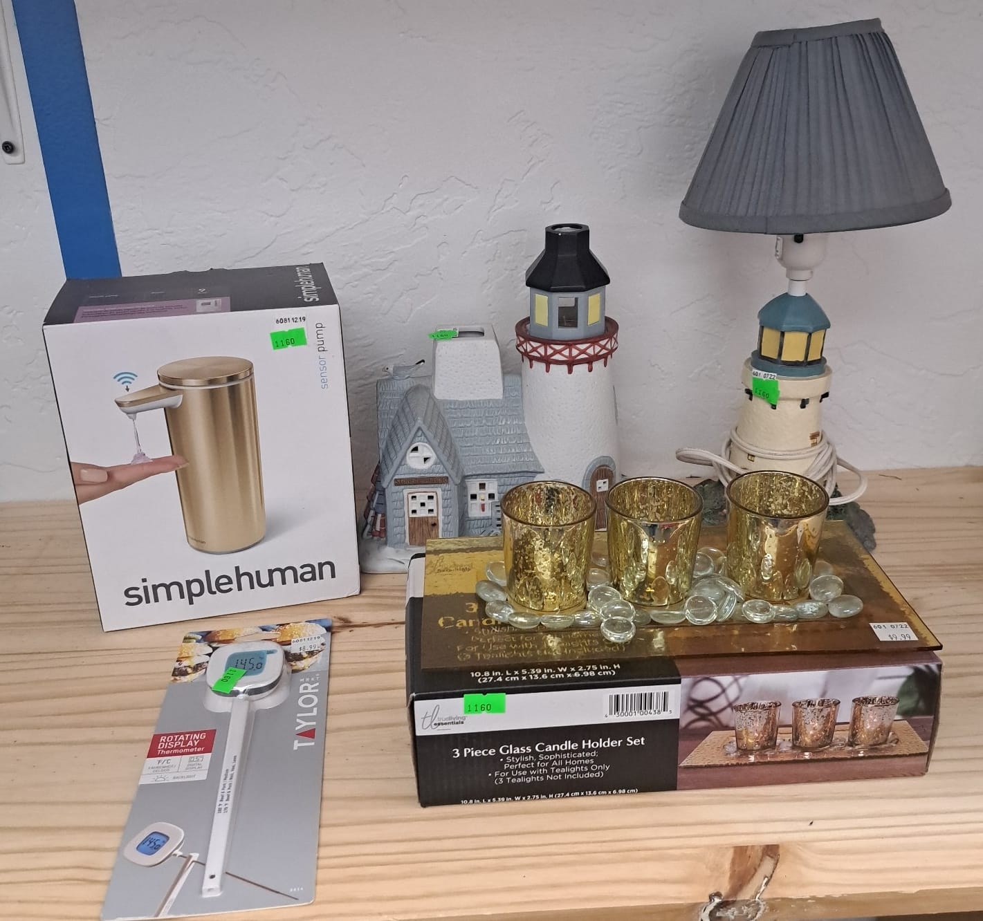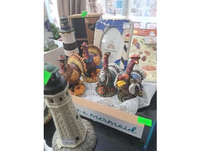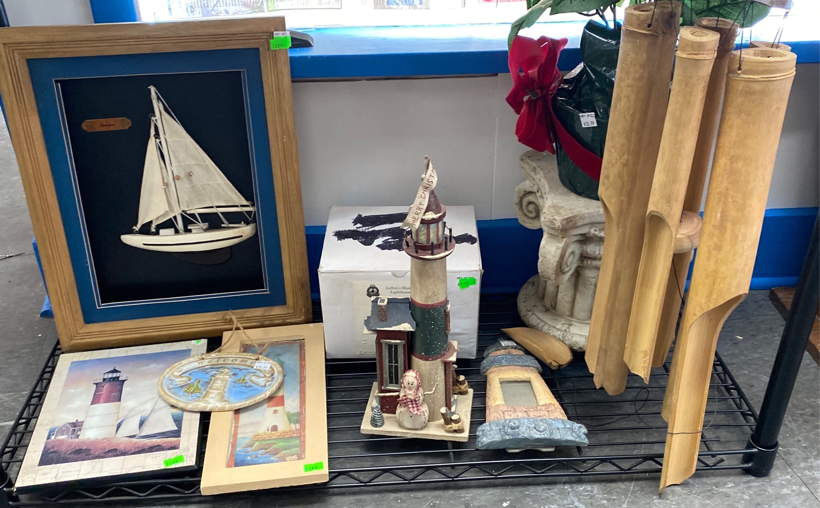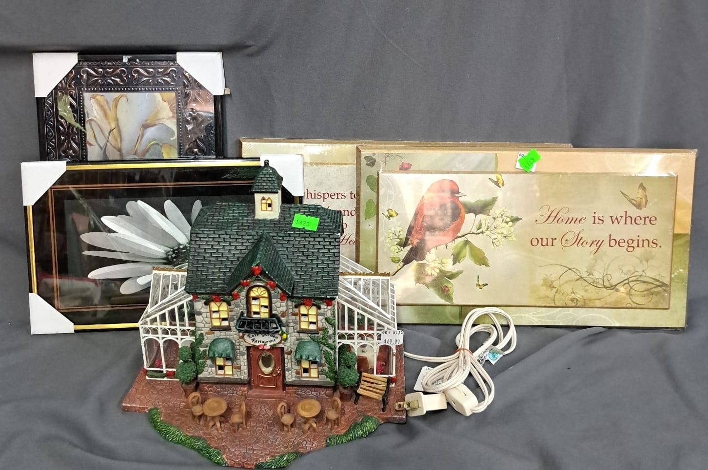 1018 Picture frame, bibs, Precious Moments figurine, bath balls, trays, craft party projects, model lighthouse beacon with transformer