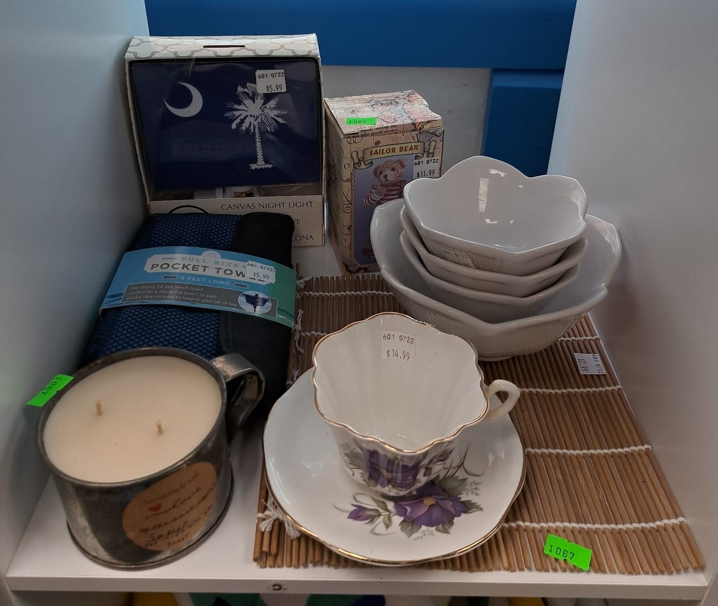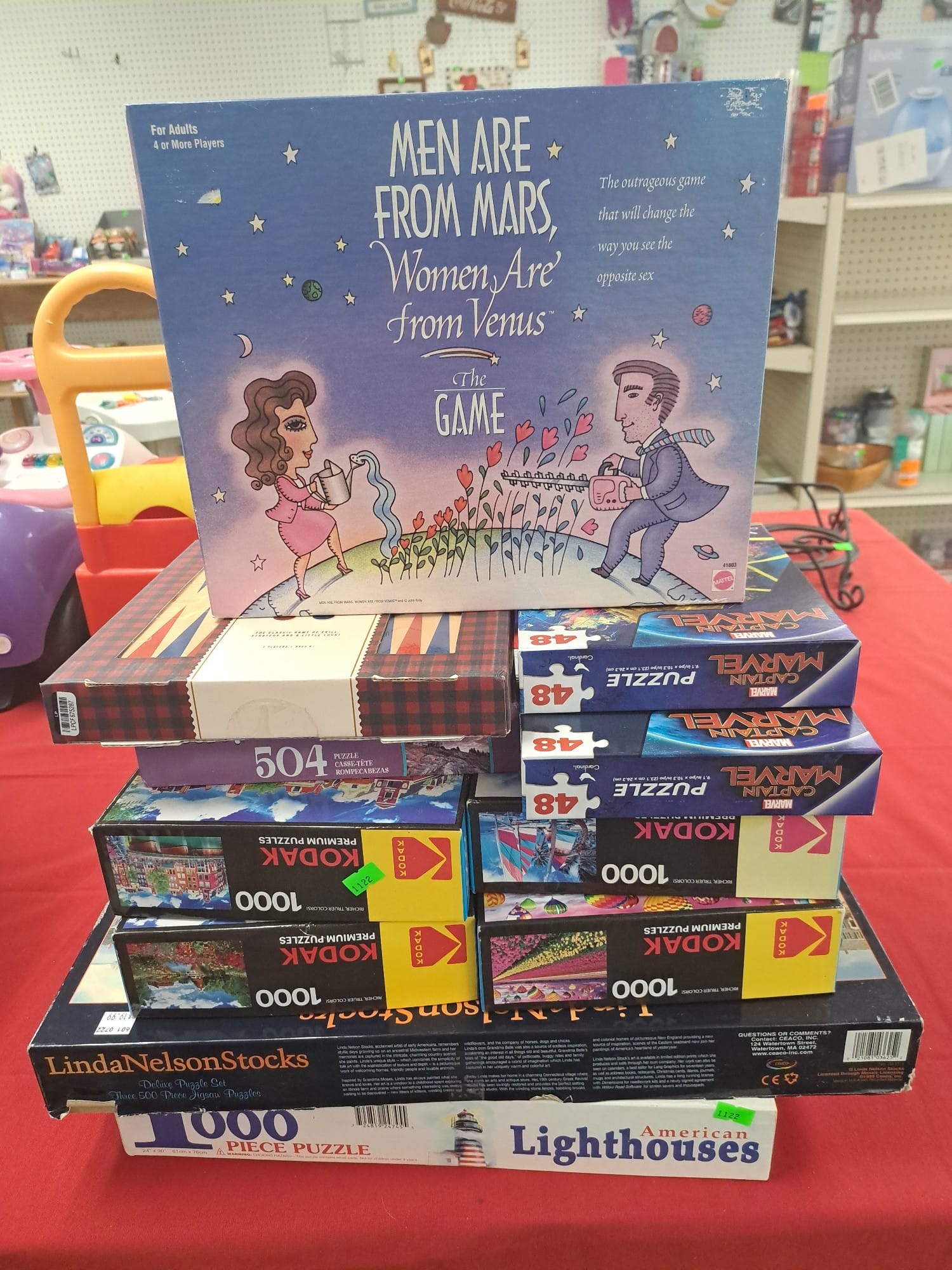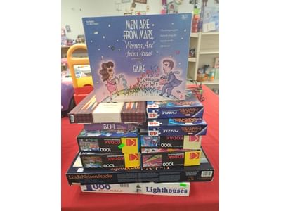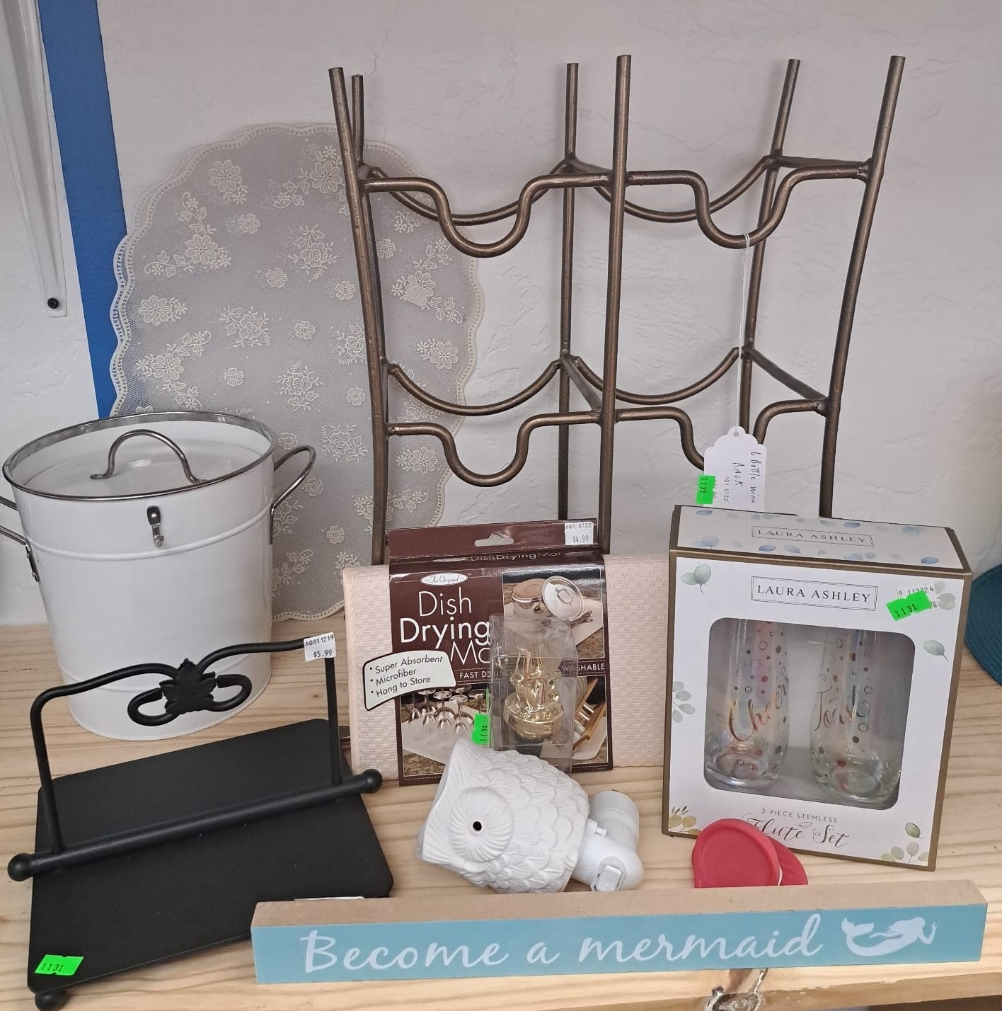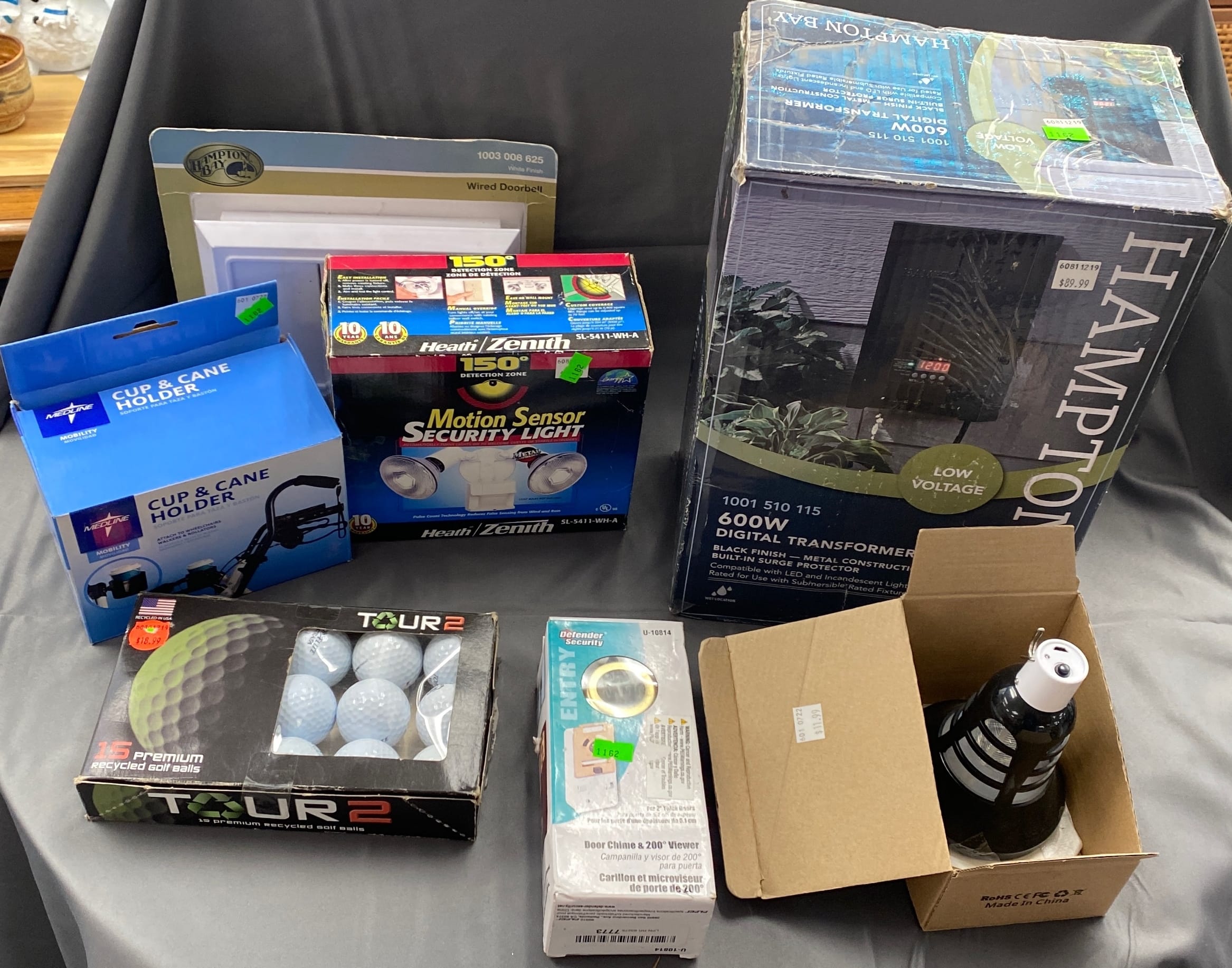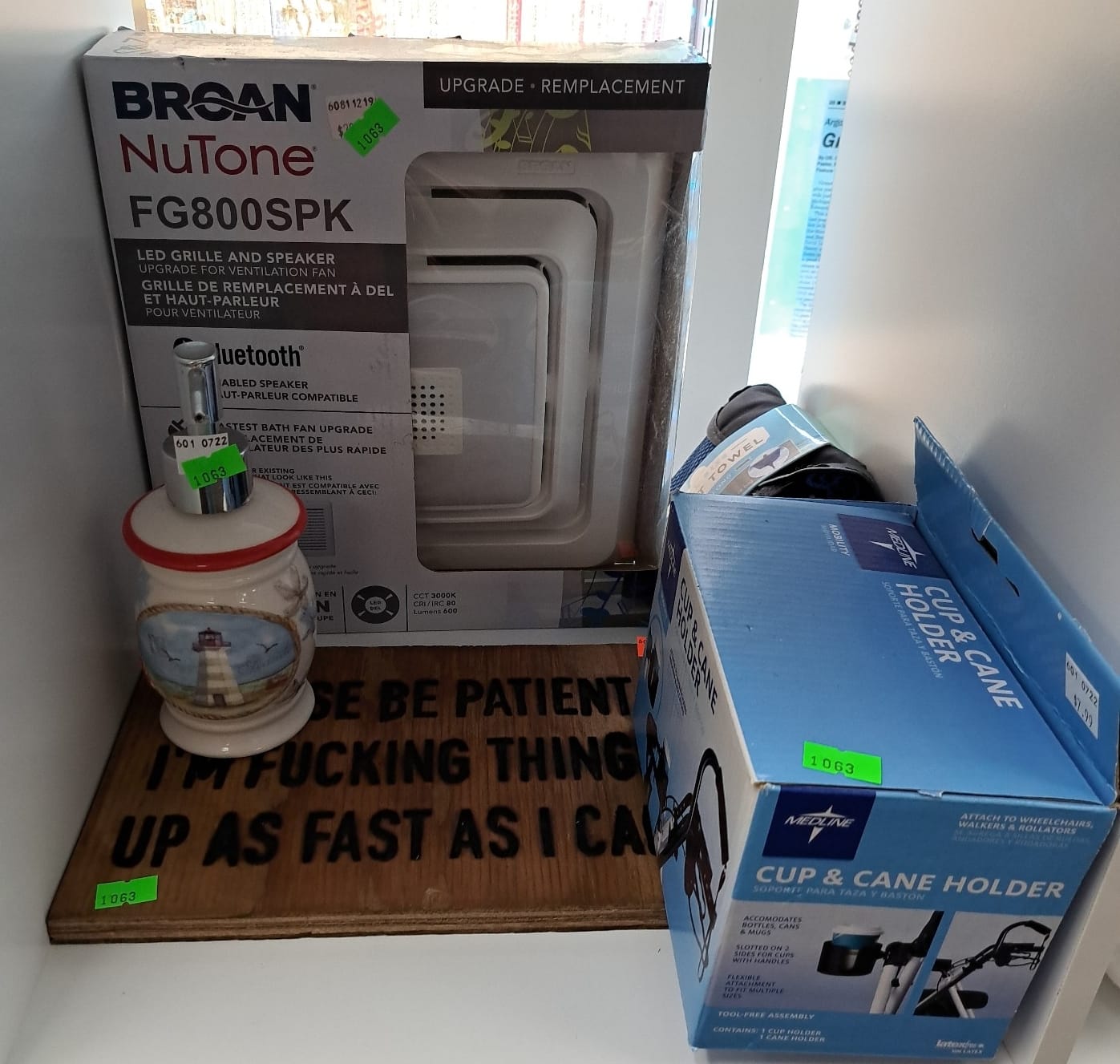 1018 Picture frame, bibs, Precious Moments figurine, bath balls, trays, craft party projects, model lighthouse beacon with transformer