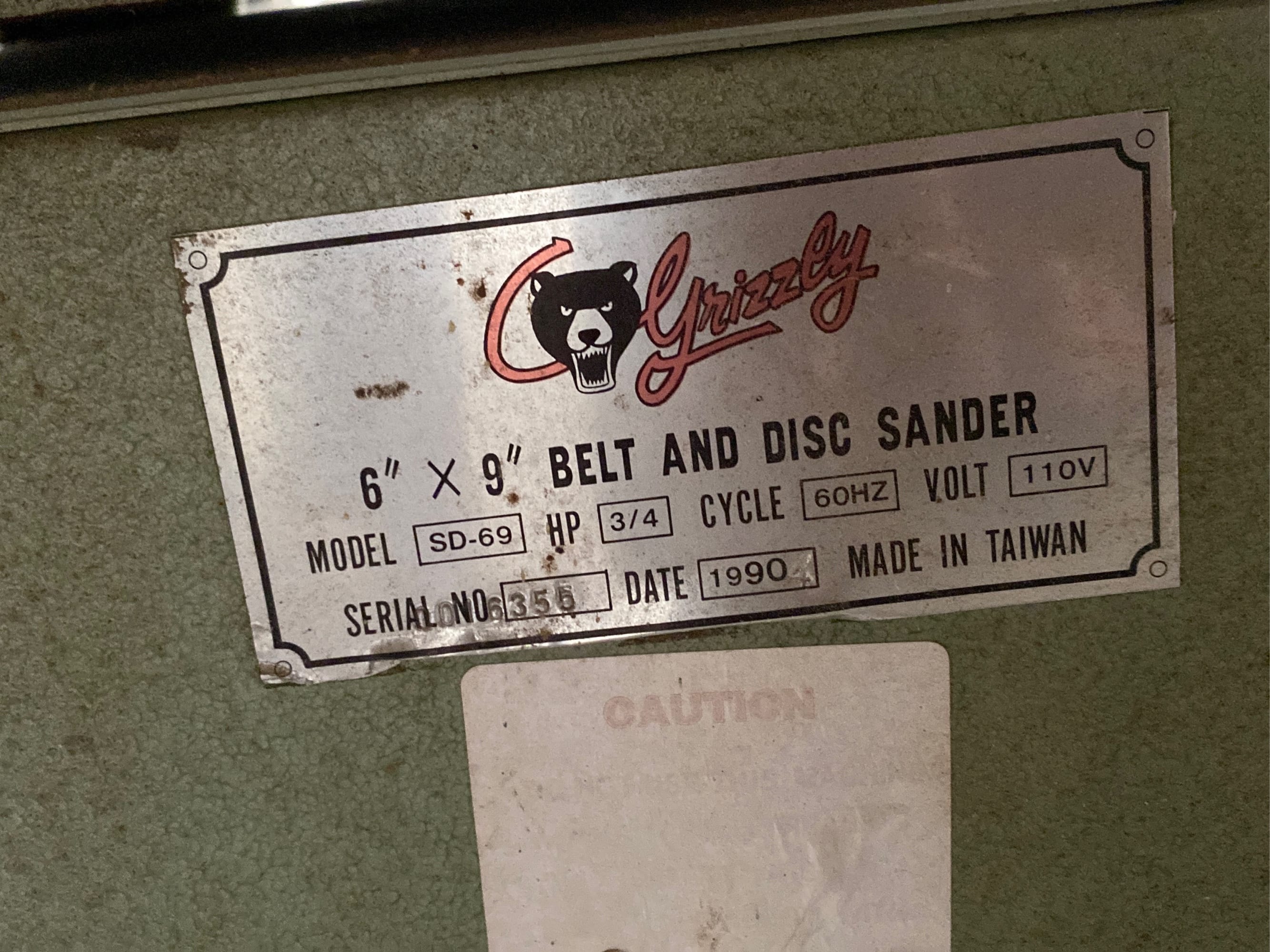 904 Grizzly 6x9 belt and disc sander model sd-69