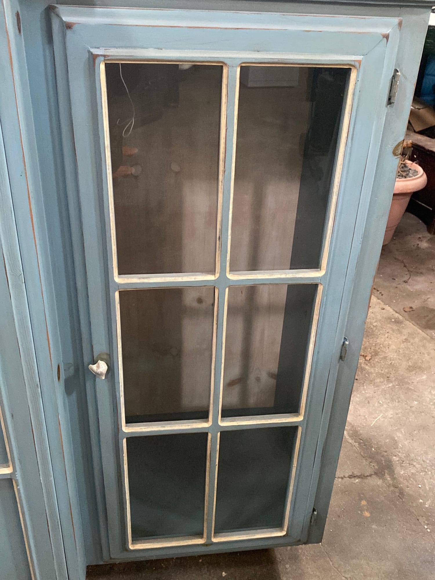 905 Custom Made China/TV cabinet 86x53x28 painted distressed Blue,